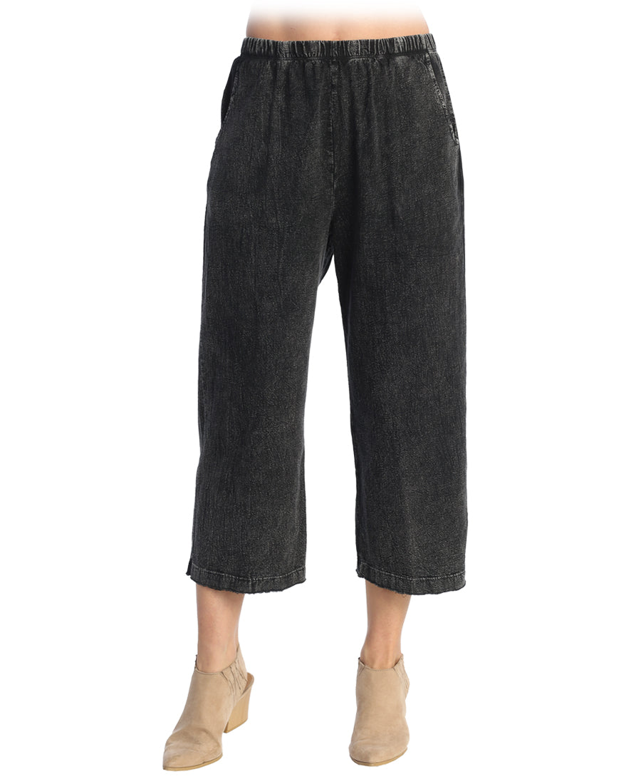 Black Mineral Washed Cotton Gauze Crop Pant With Pockets