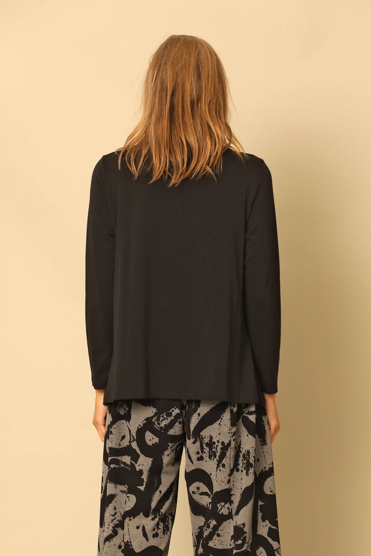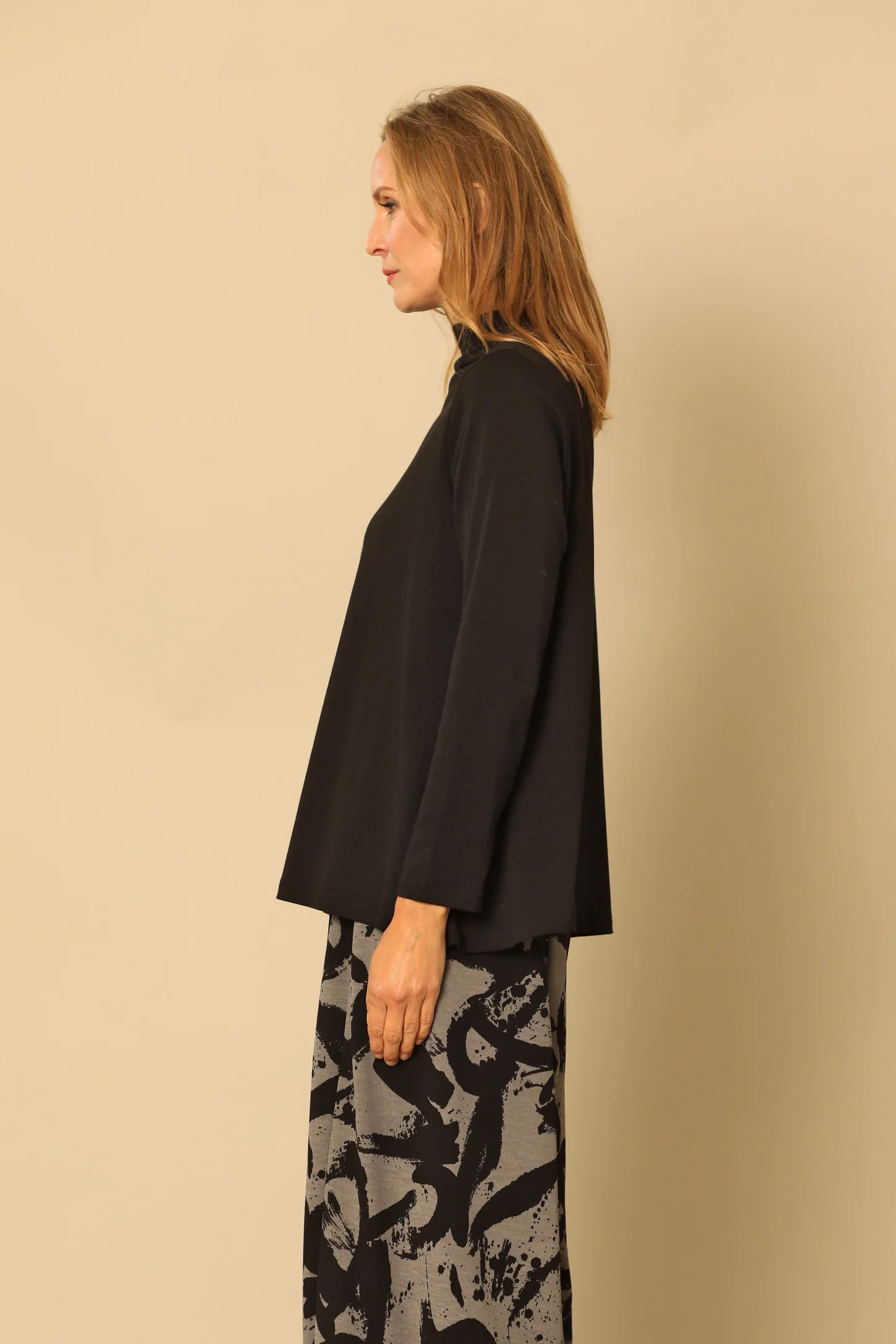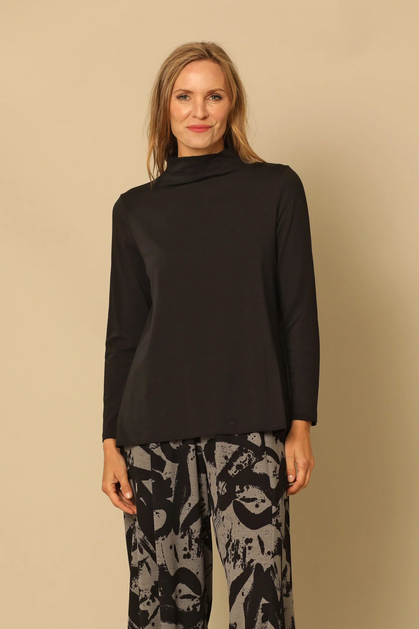 Stay comfortable in this amazing Black Modal Long Sleeve Mock Neck Top, crafted with wonderful modal cotton for a soft and luxurious feel. The breathable fabric is perfect for any season. A must-have for your wardrobe!
