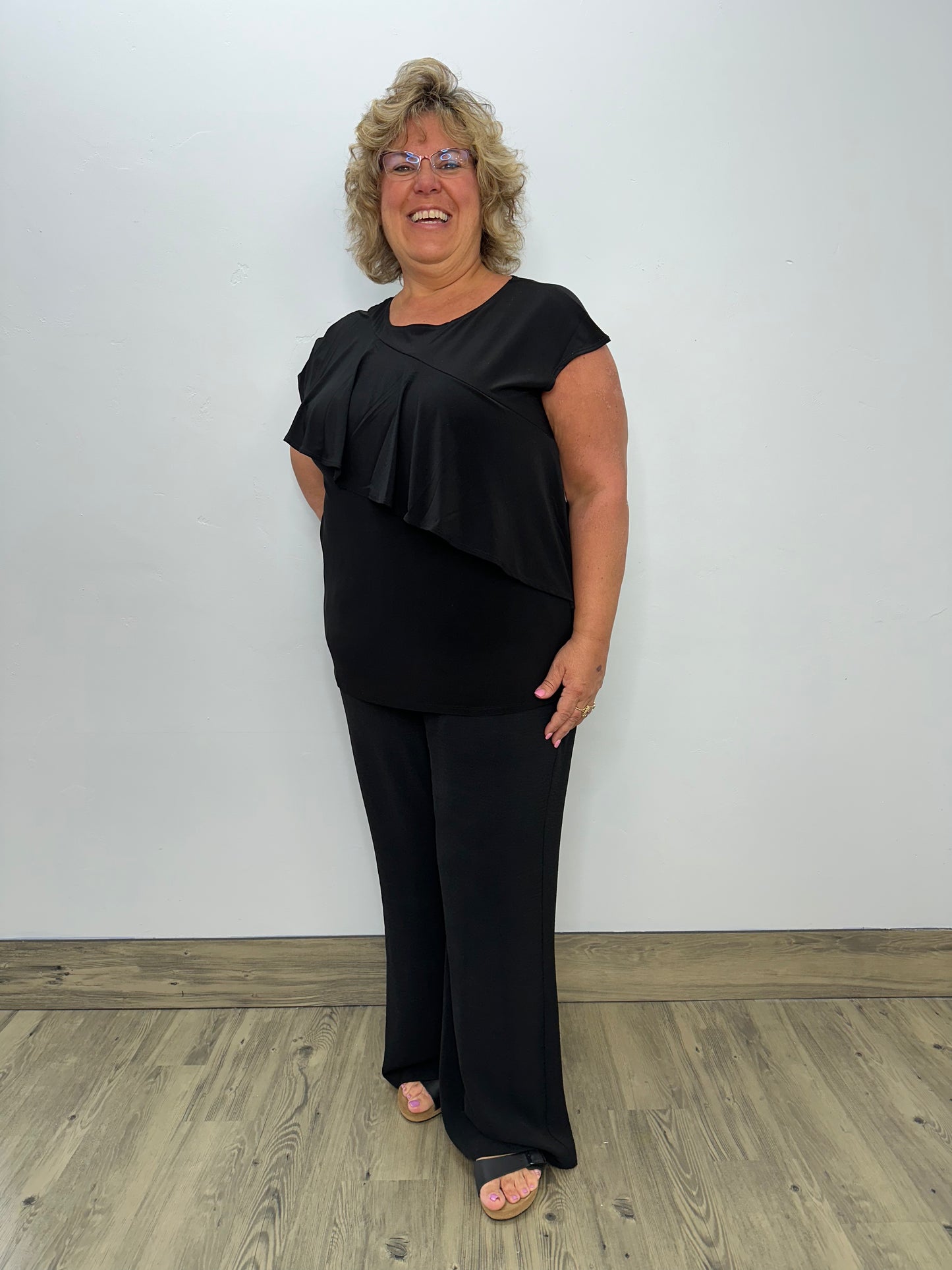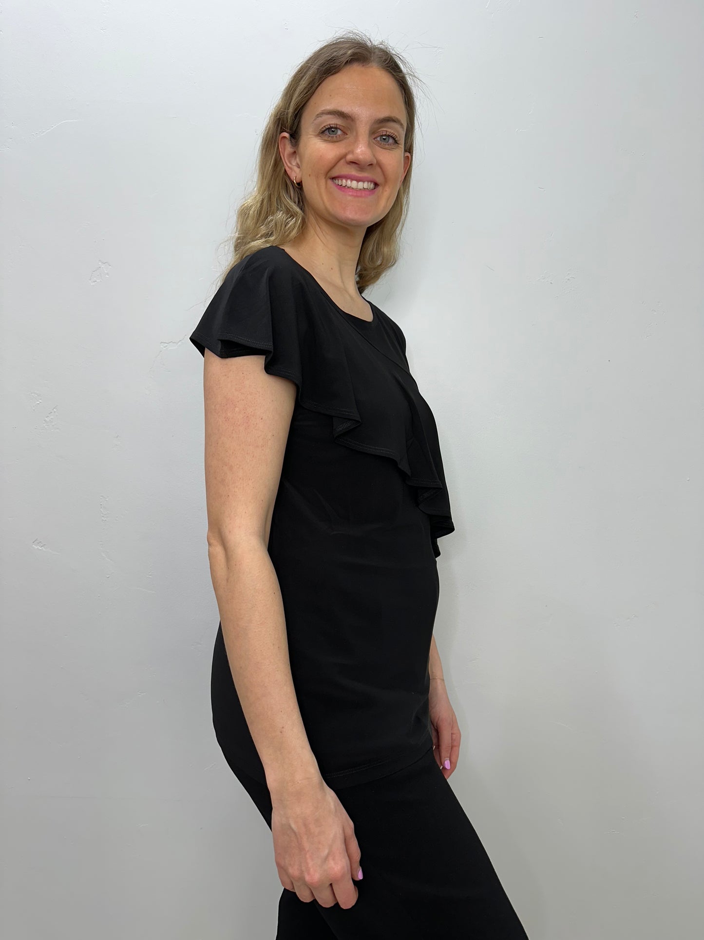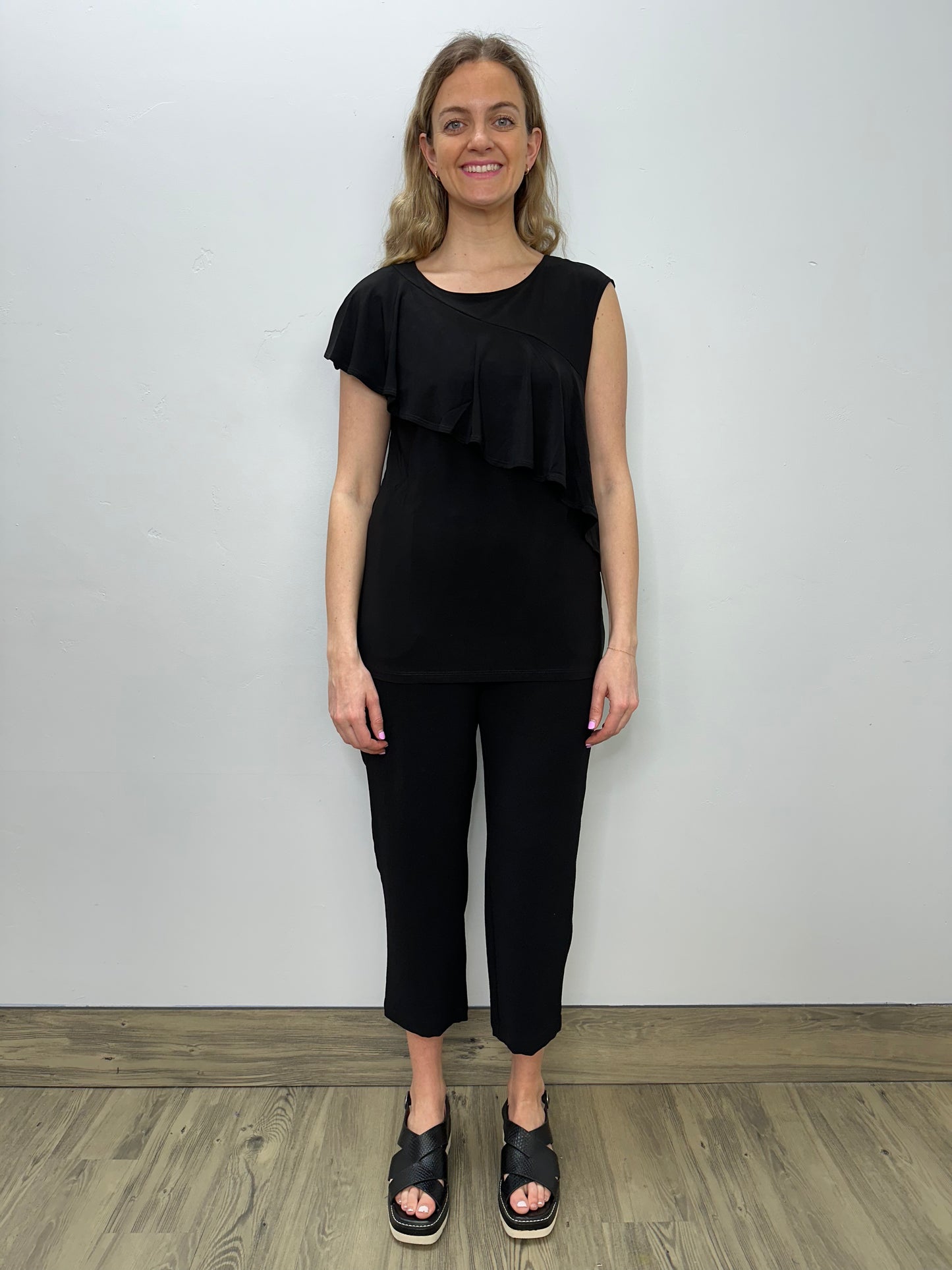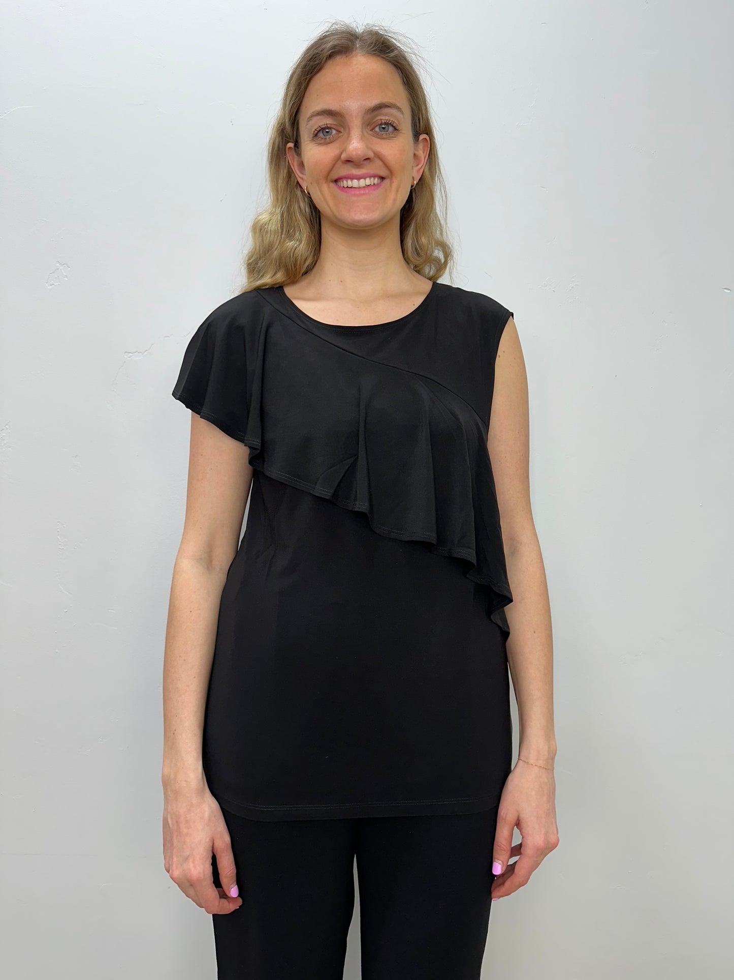 Black Asymmetrical Ruffle Tank