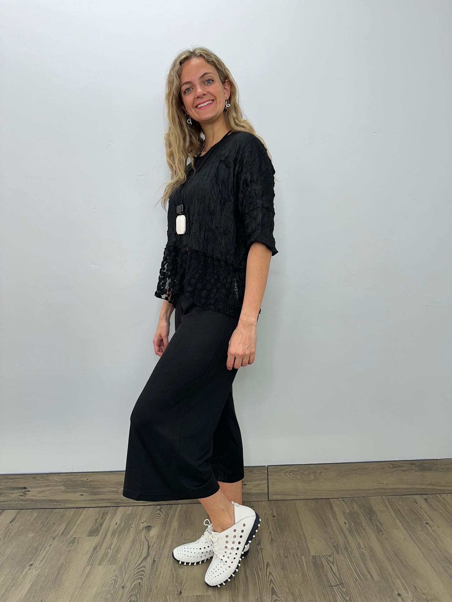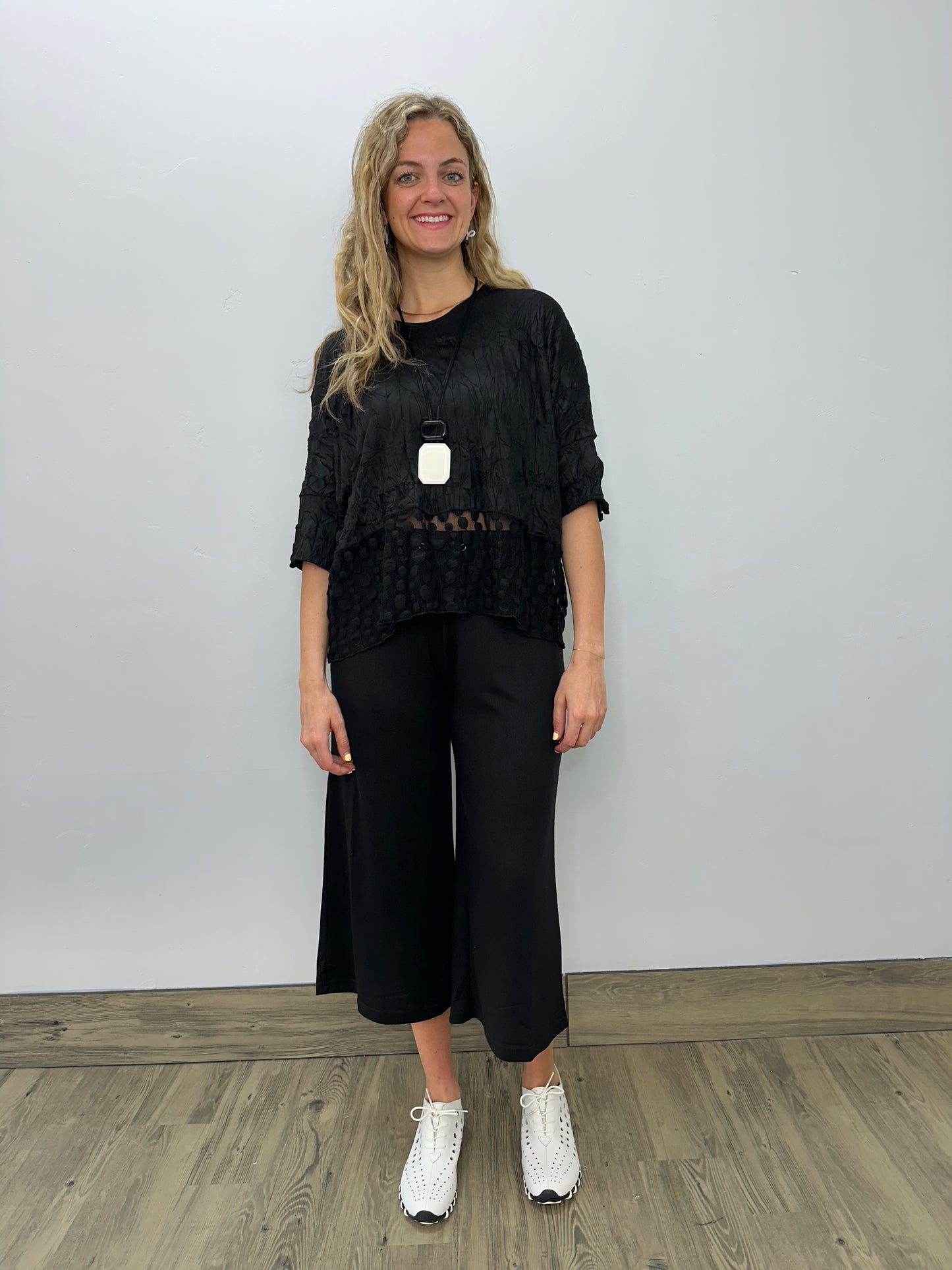 Black Mesh Dots 3/4 Sleeve Tee