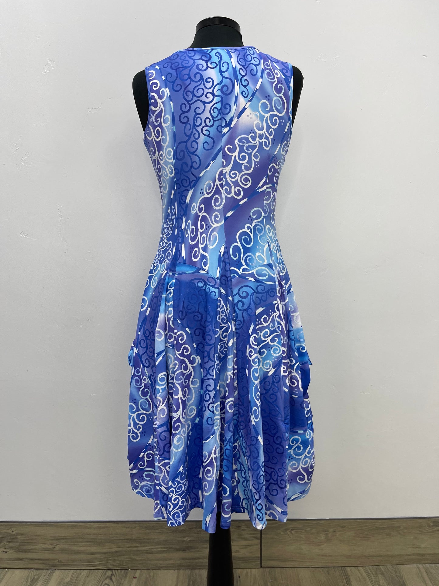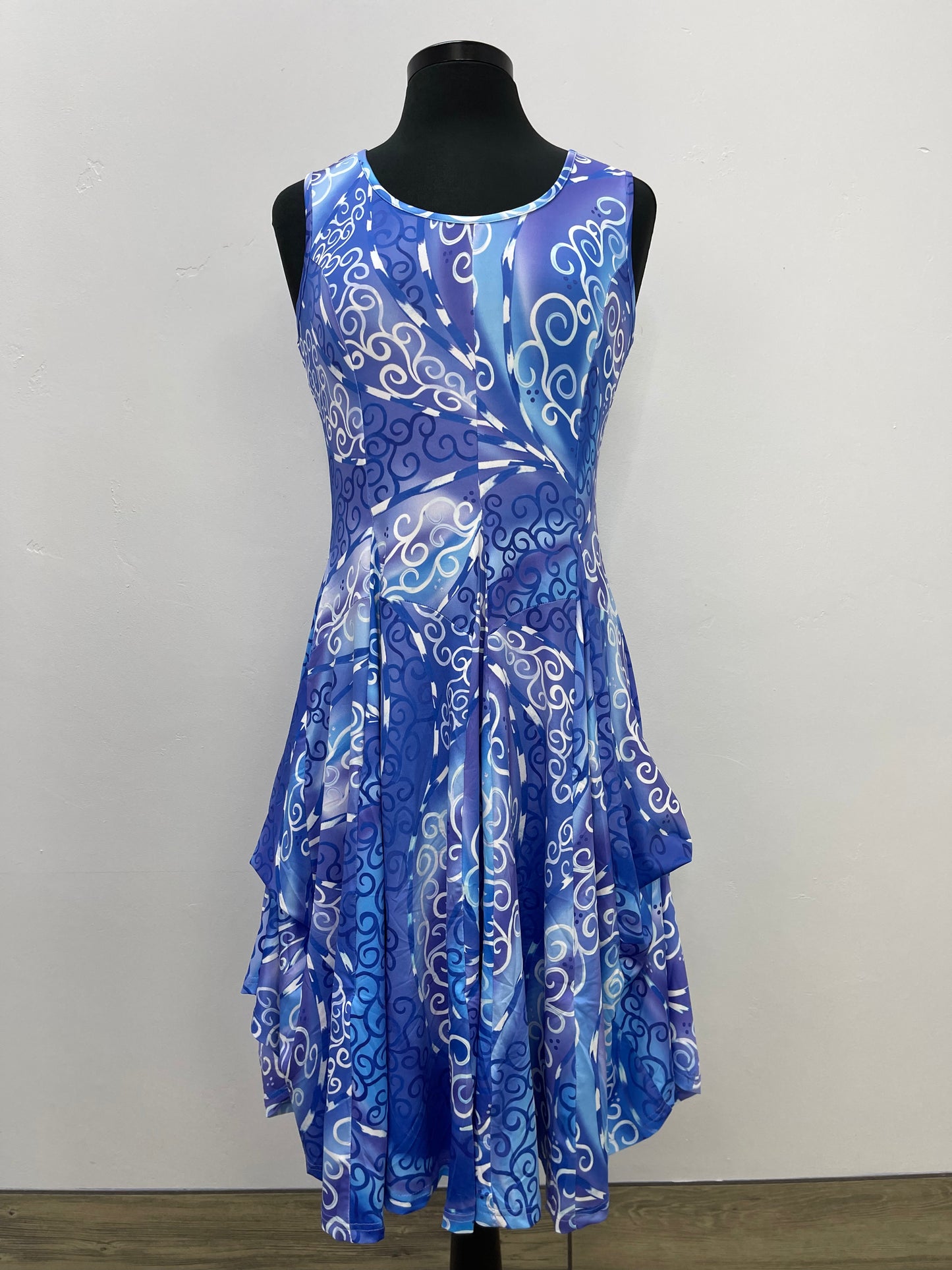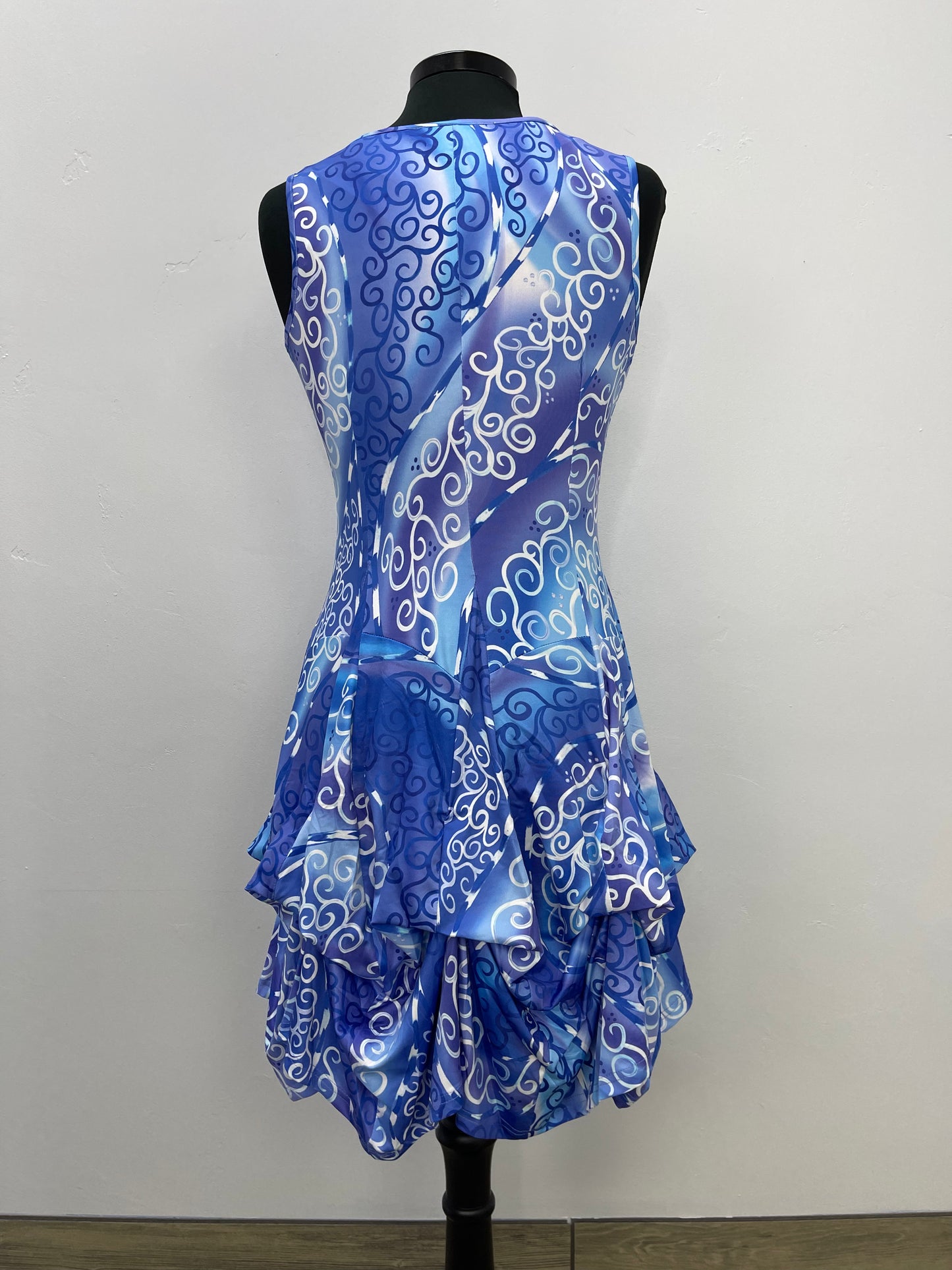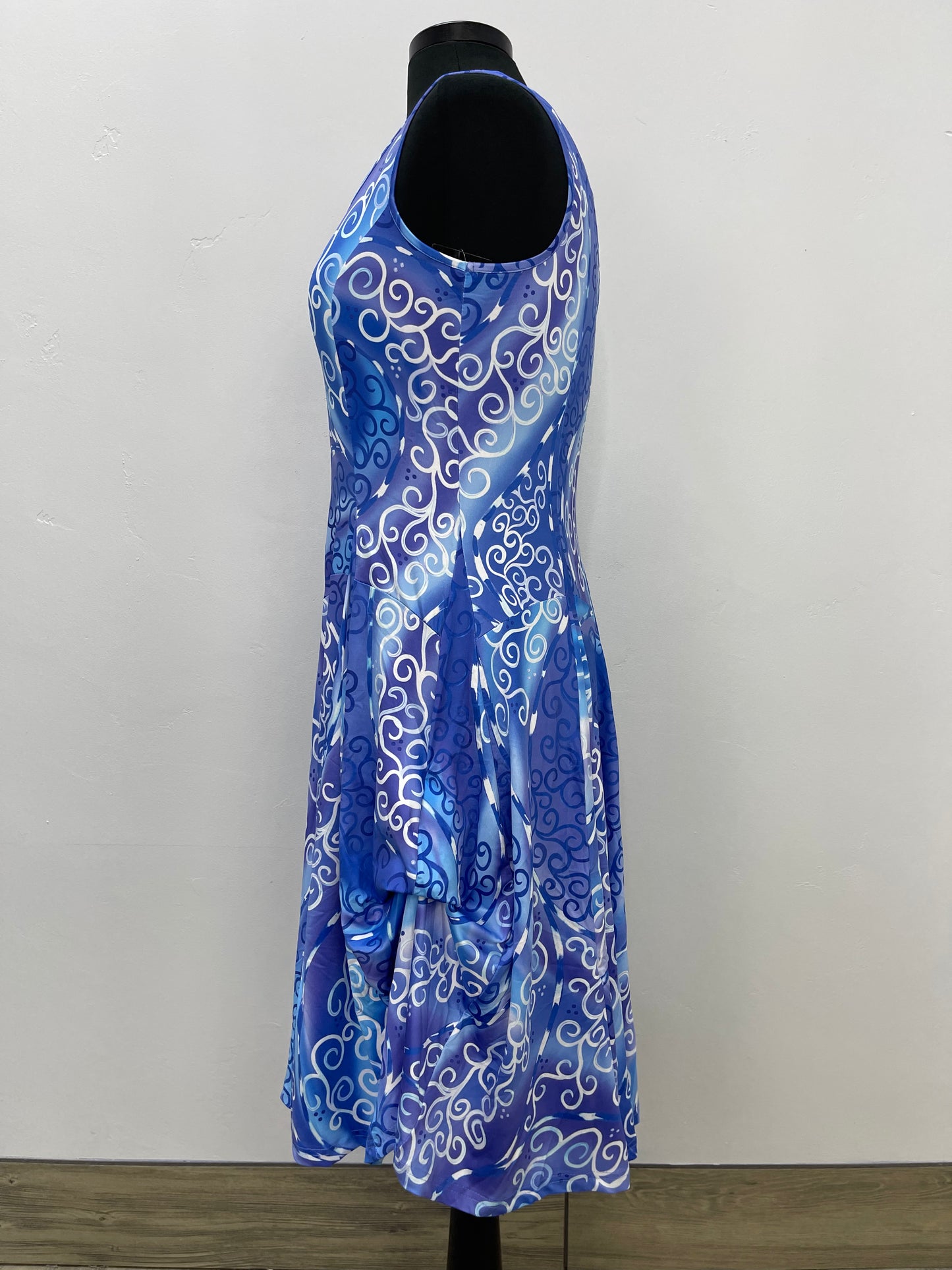 Blue Swirl Sleeveless Scoop Neck Bubble Dress