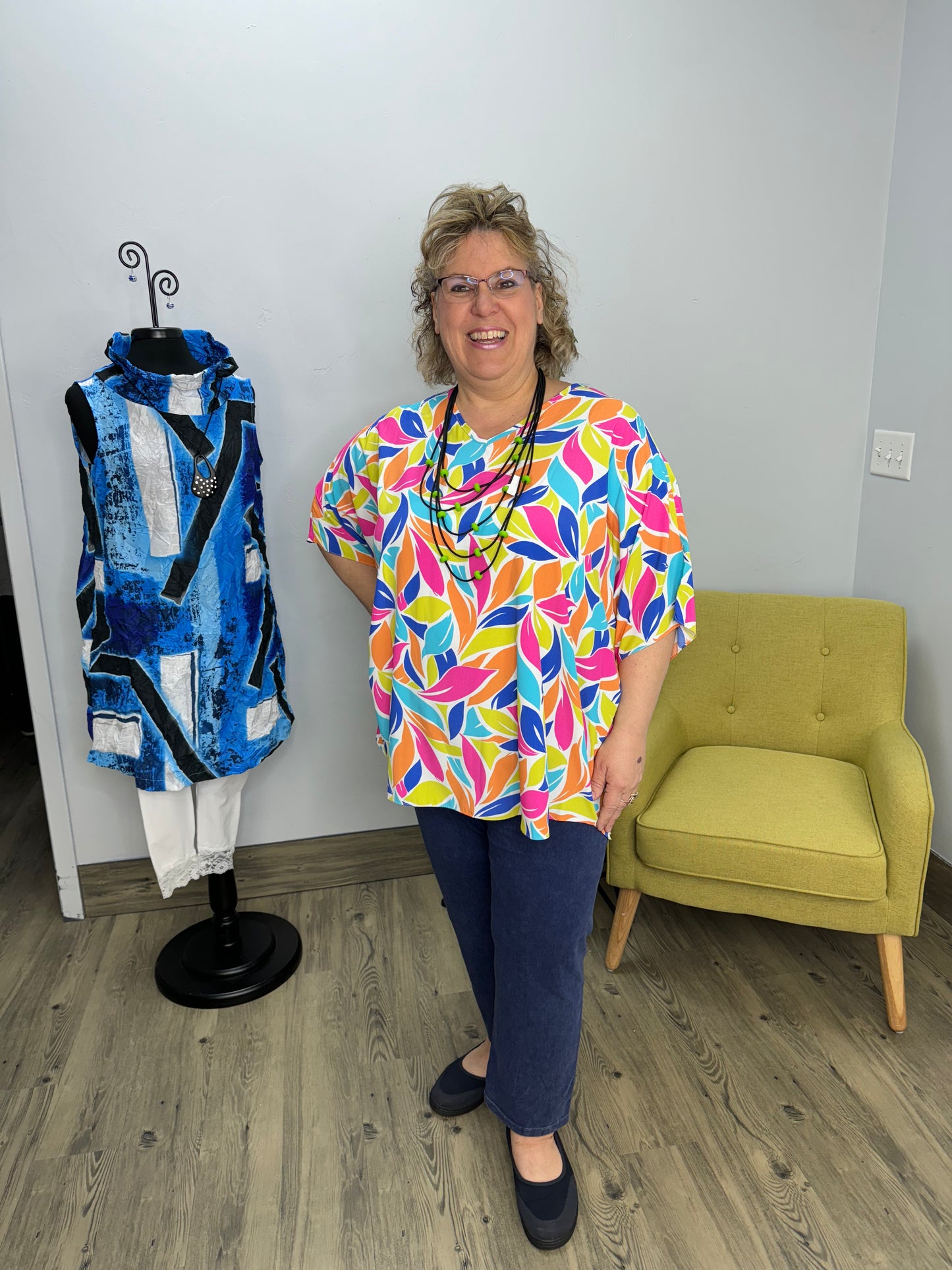 Regular price $55.20Unleash your wild side with our Bright Leaves V-Neck Oversized Top! Perfect for any occasion, this top boasts an elbow-sleeve length and a fun print that will make you stand out in the best way possible. Stay stylish and comfortable with this must-have addition to your wardrobe!