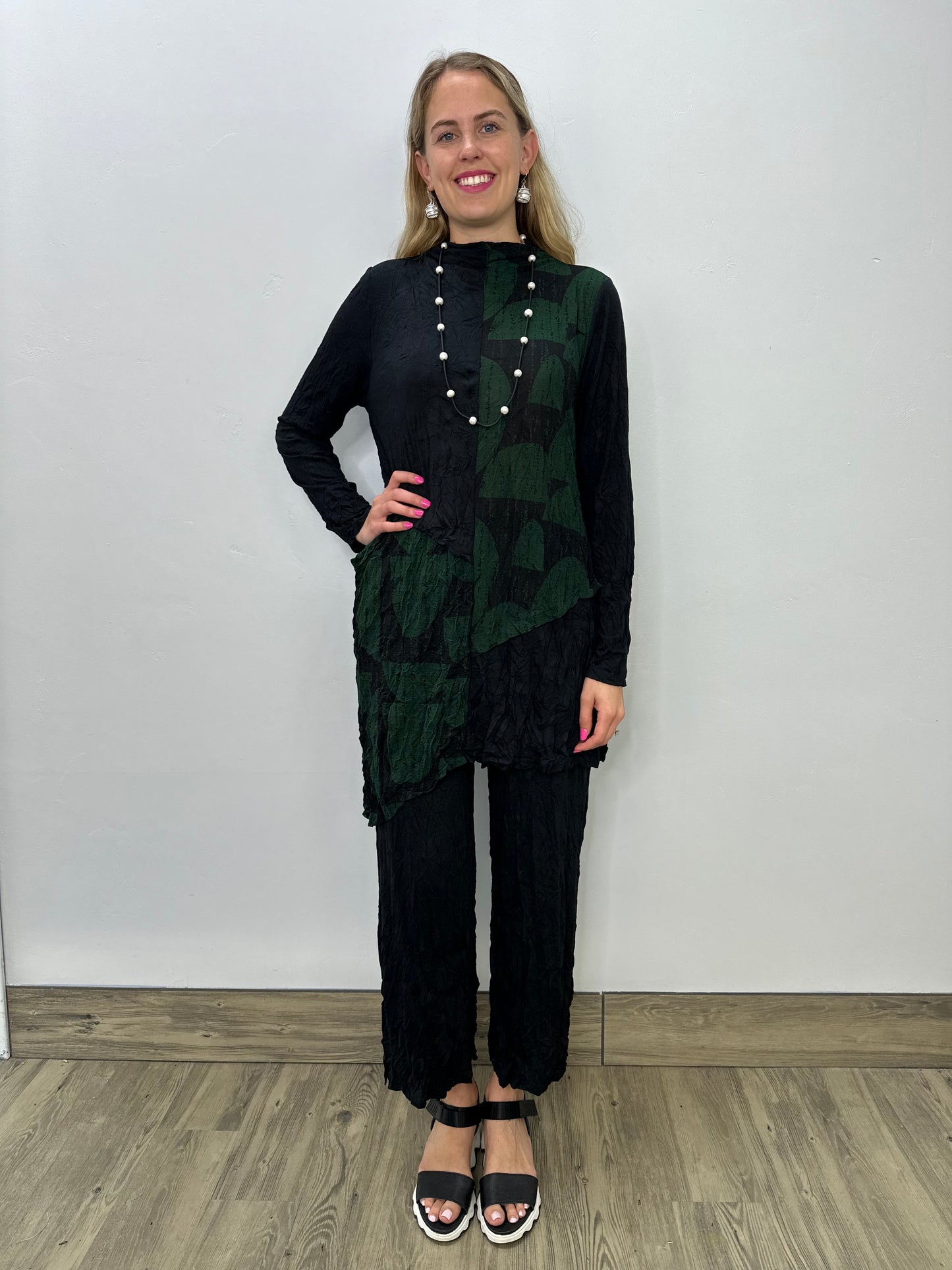 Regular price $111.30Adored for its one-of-a-kind look, the long sleeve Octavia Tunic will leave you breathless. Designed with a mock neck to accentuate the contrasting print and black crinkle jersey blocking, with pleats and a front inseam pocket. Its slanted hemline creates a beautiful silhouette