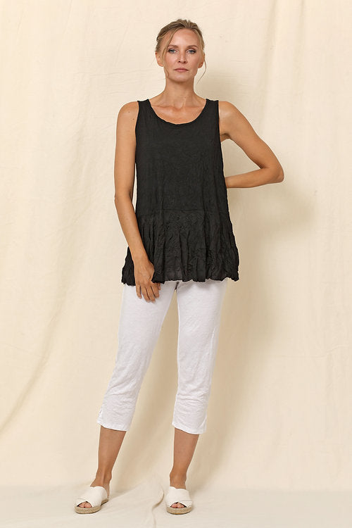 The Chalet crinkle mesh layering tunic features wide straps for bra coverage, generous scoop neckline and ruffles starting at the waist. This piece works great on its own or used as a fashionable layering piece.