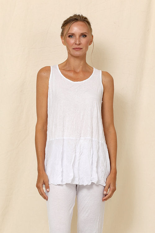 The Chalet crinkle mesh layering tunic features wide straps for bra coverage, generous scoop neckline and ruffles starting at the waist. This piece works great on its own or used as a fashionable layering piece.