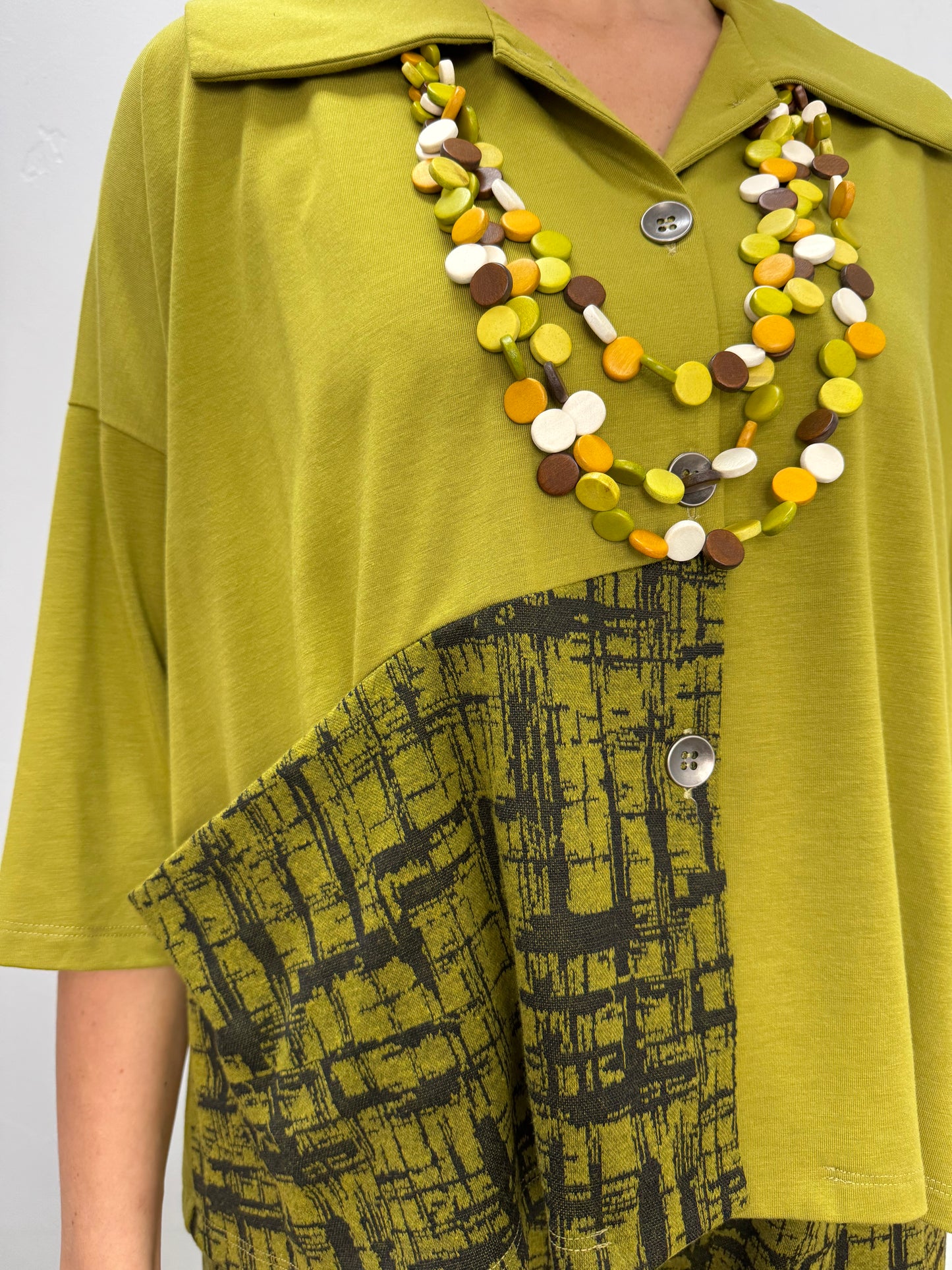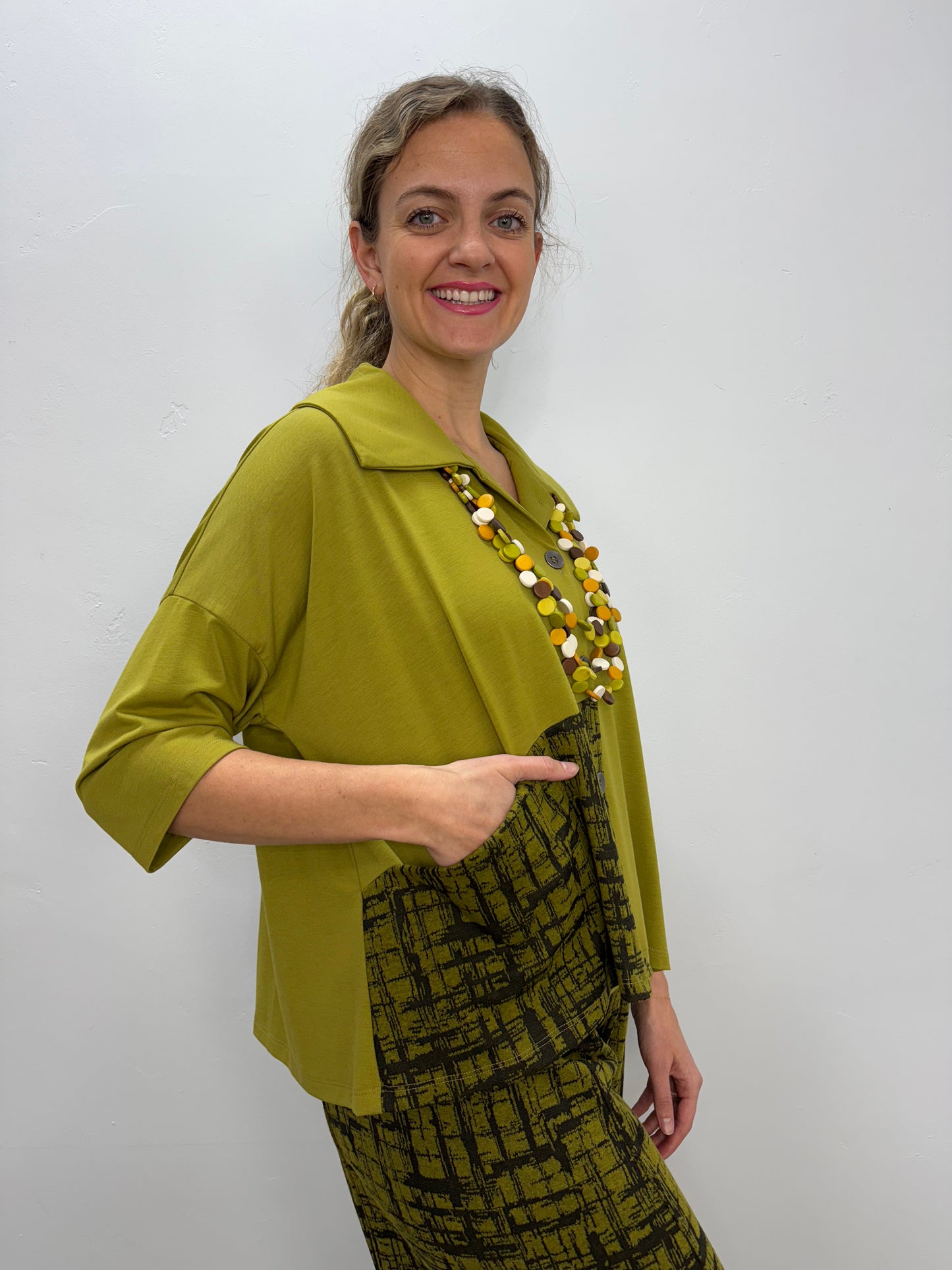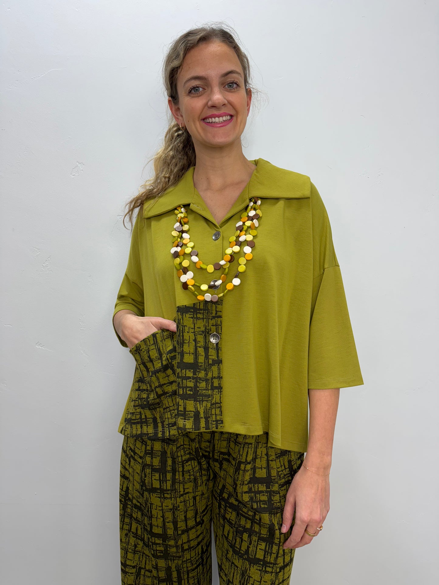 Chive Green Hashtag Lottie Button Up Collared Jacket
