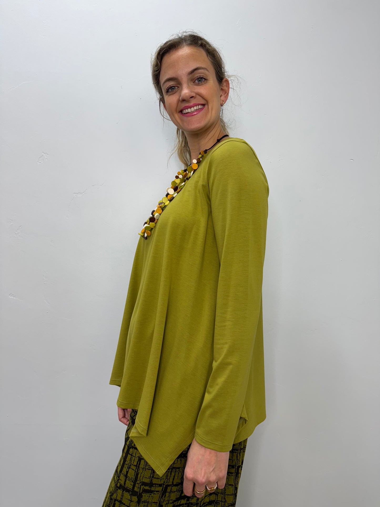 Chive Green Scoop Neck Long Sleeve Gretta Top