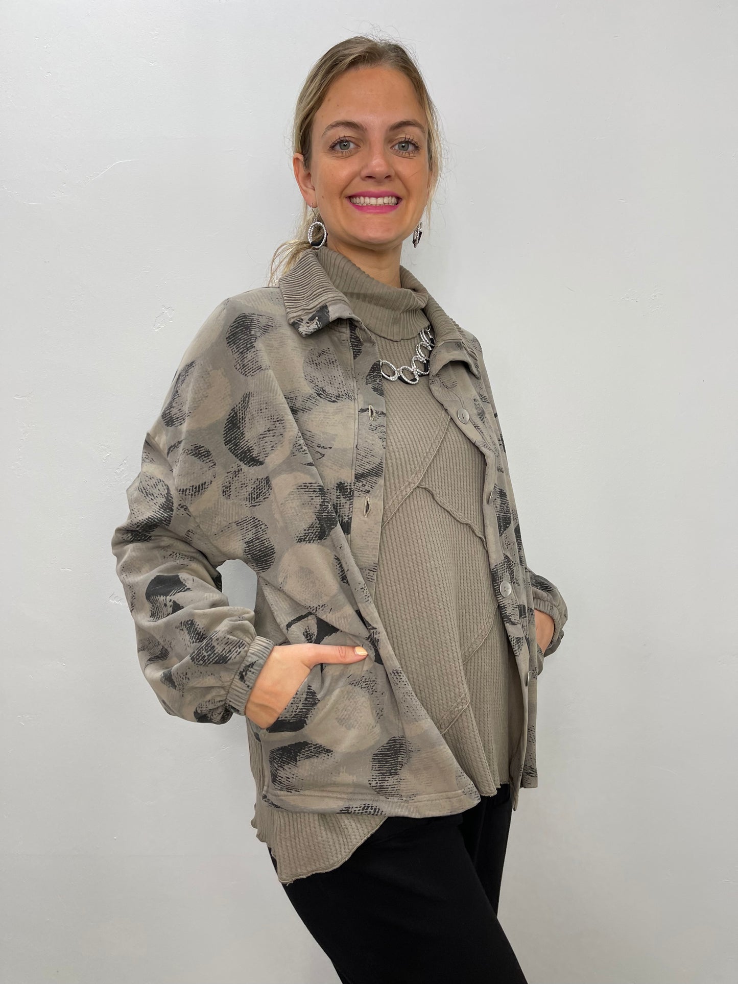 Cocoa Print Crop Button Up Jacket