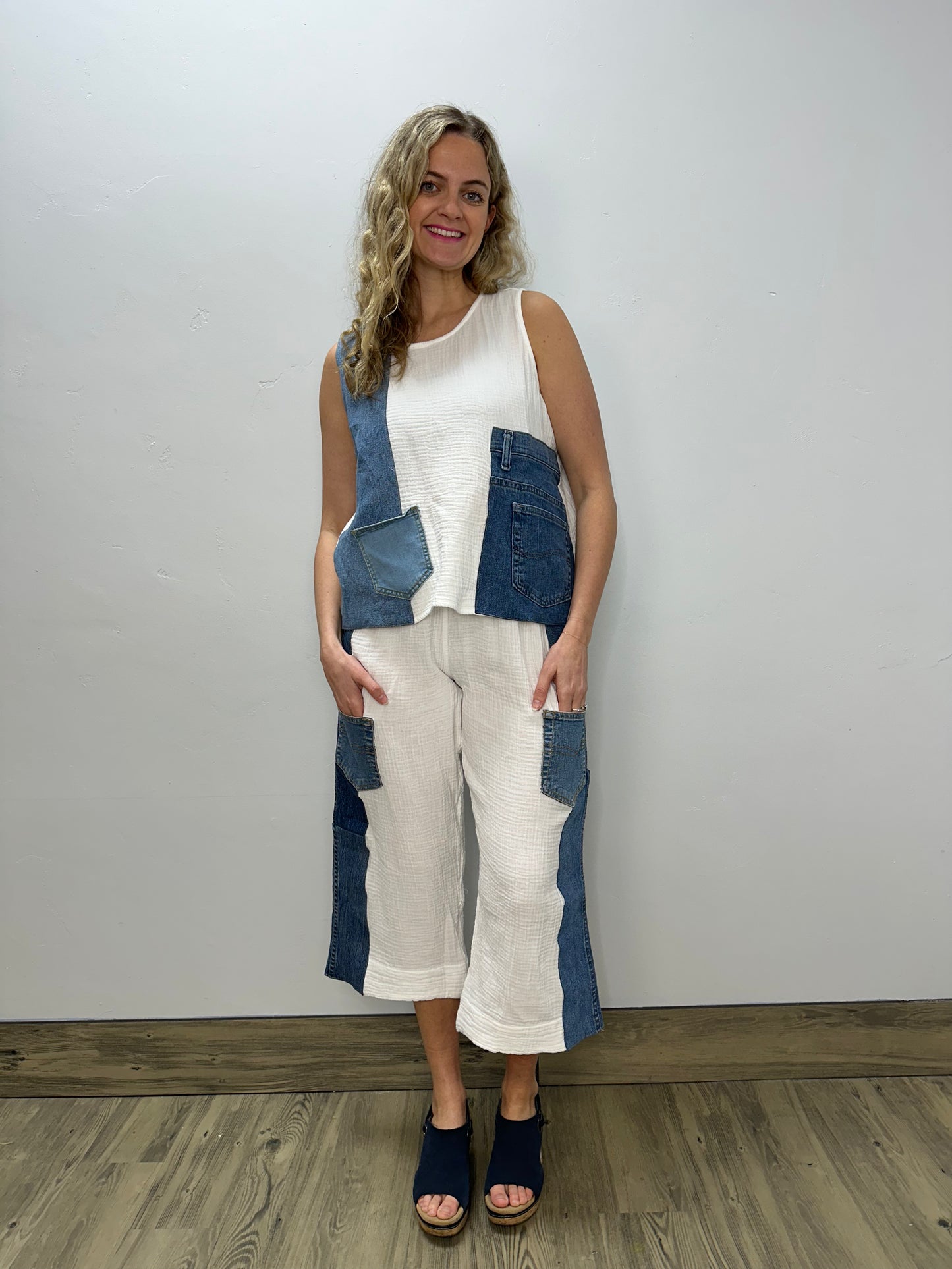 Regular price $62.30Elevate your summer wardrobe with our White Sleeveless Cotton Gauze Tiered Tank! Effortlessly adorable and perfect for warm weather, this tank features a tiered style that adds a touch of charm to any outfit. Pair it with our white stripe pants for a stylish and comfortable look.