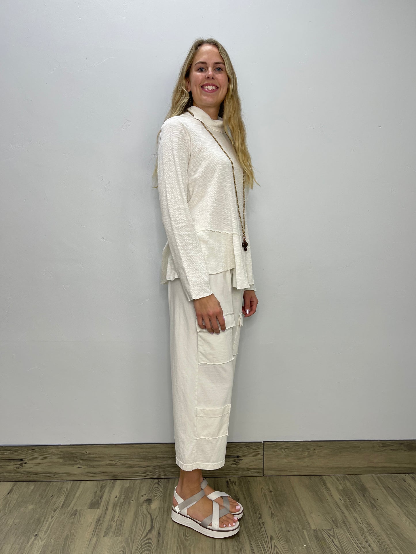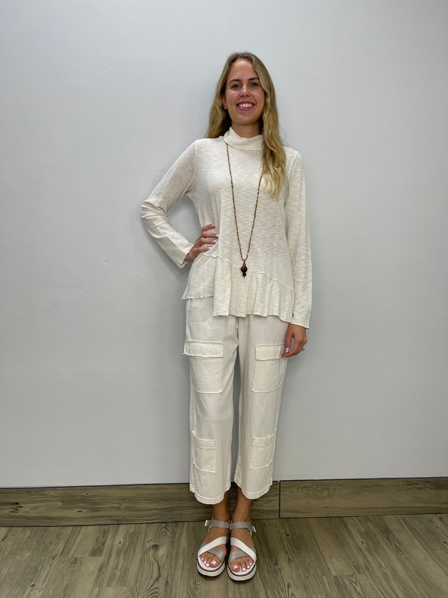 Introducing our Cream Textured Long Sleeve Pleat Top - a must-have addition to your wardrobe. This top features a flattering asymmetric hemline and seaming, making you look effortlessly stylish. The lightweight material is perfect for fall or cooler summer nights. Elevate your style with this versatile and chic top!