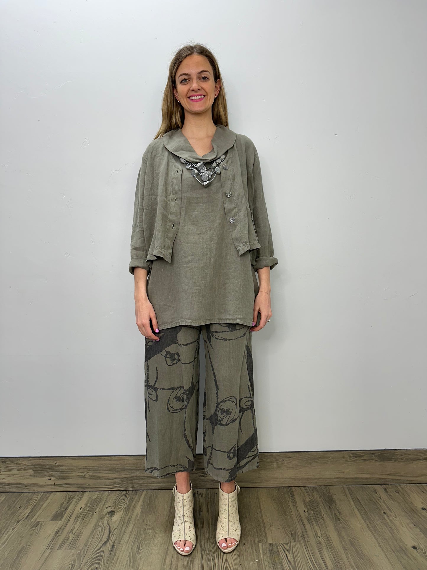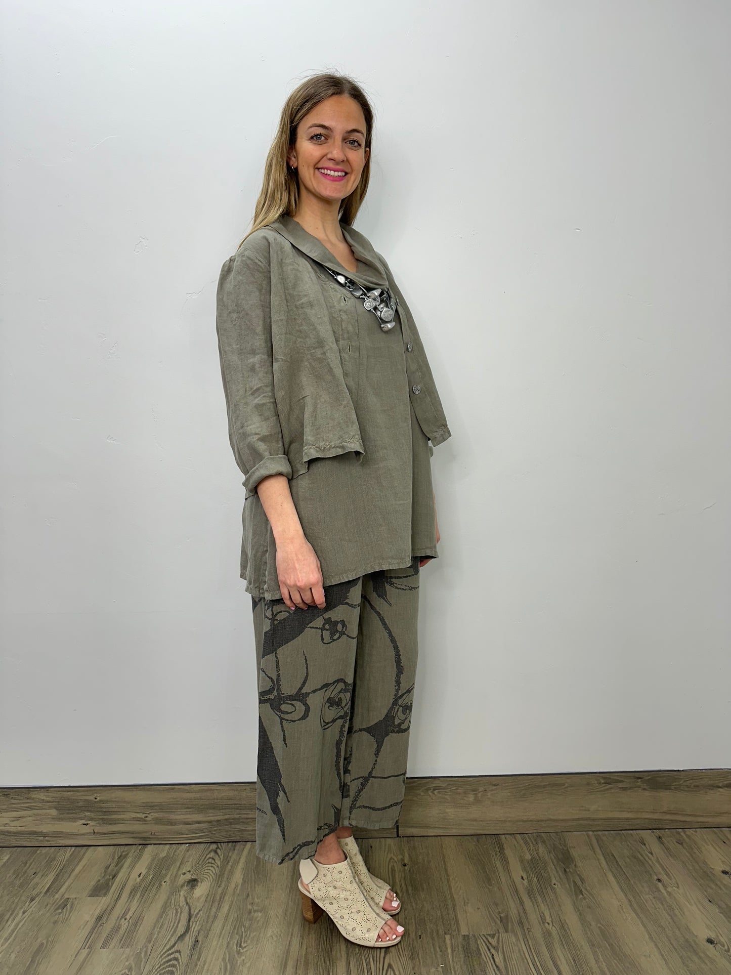 Regular price $104.30Elevate your style with our Crop Button Up Jacket in gorgeous Olive. Made with 100% linen, this jacket is both adorable and functional with its 4 buttons. Dress it up or down for any occasion and experience the luxurious comfort and versatility our jacket has to offer!