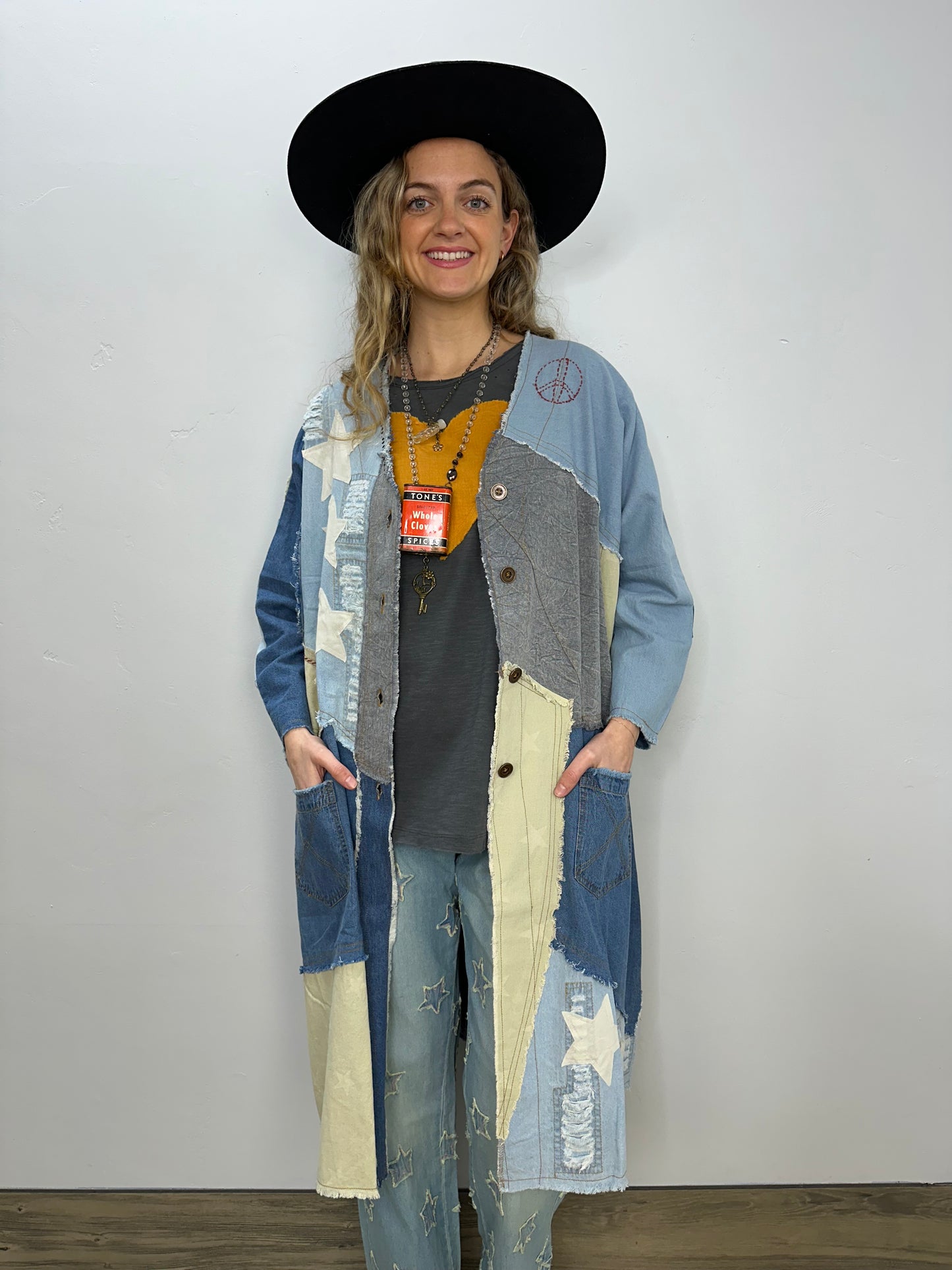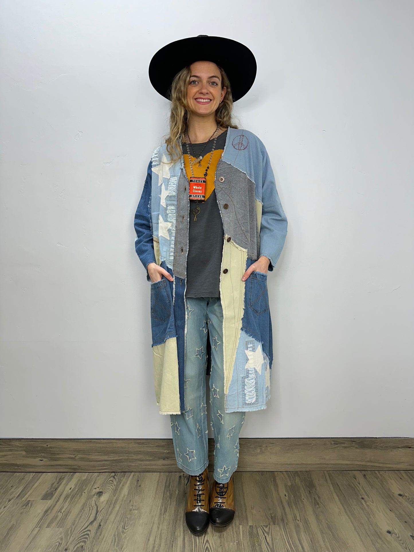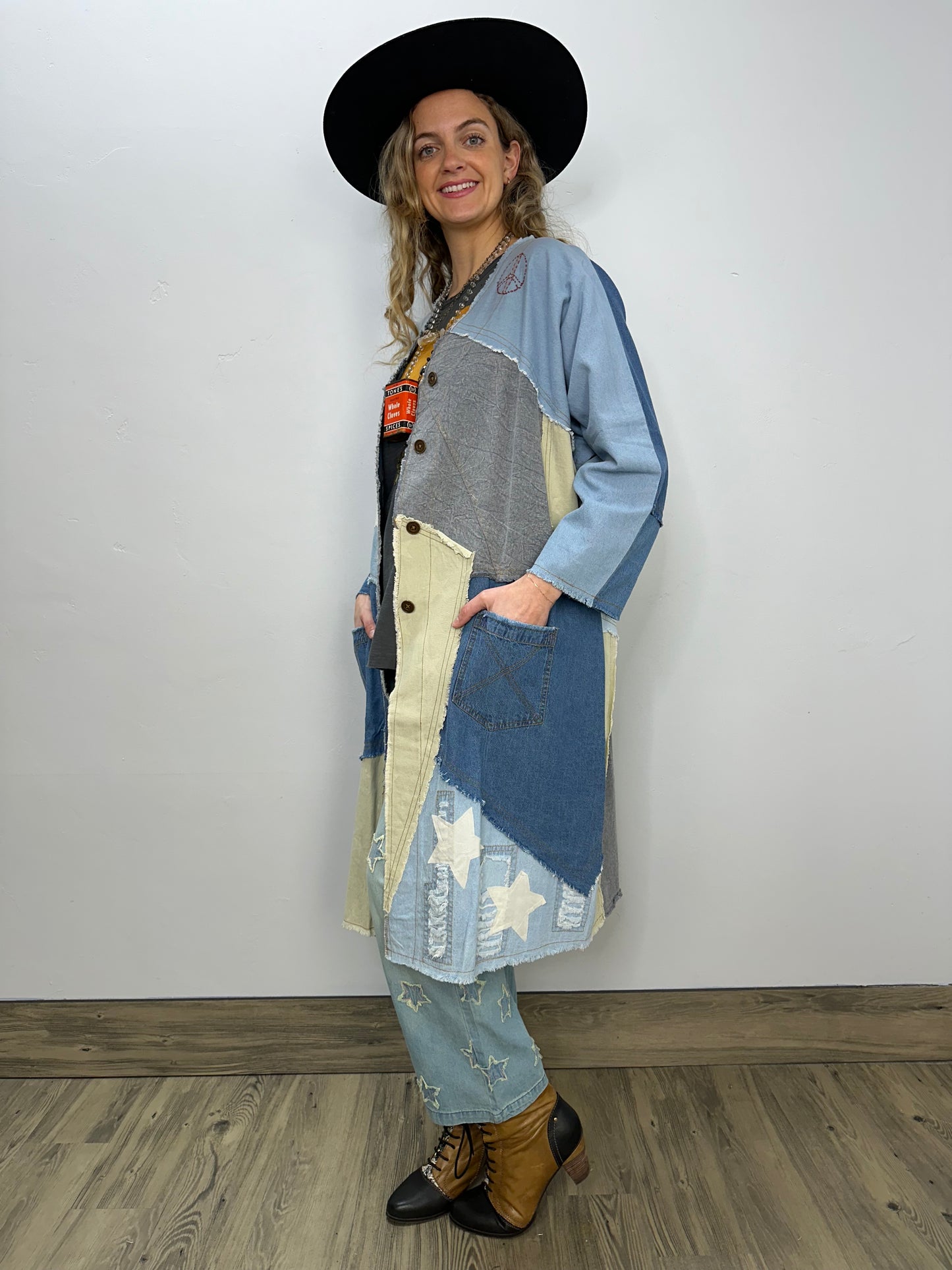 Elevate your street style with our Patchwork Distressed Denim Jacket, complete with adorable patchwork and star details. The buttons for closure add a little bit of convenience while the distressed design adds a touch of edginess. Plus, with functional pockets, this jacket is both stylish and practical. Add some fun to your wardrobe today!