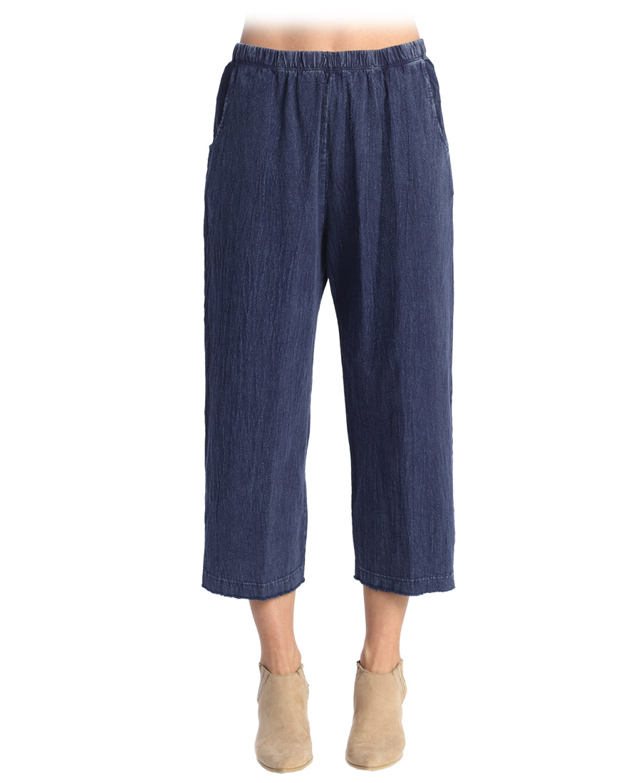 Denim Mineral Washed Cotton Gauze Crop Pant With Pockets