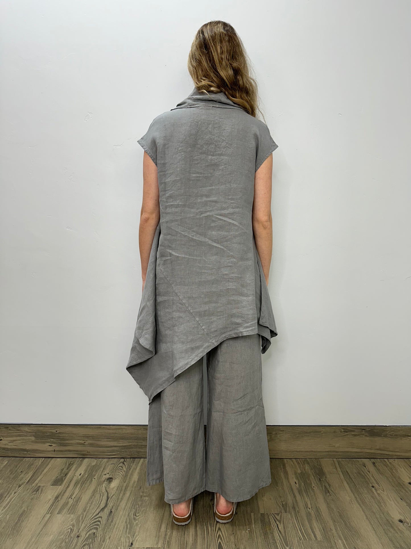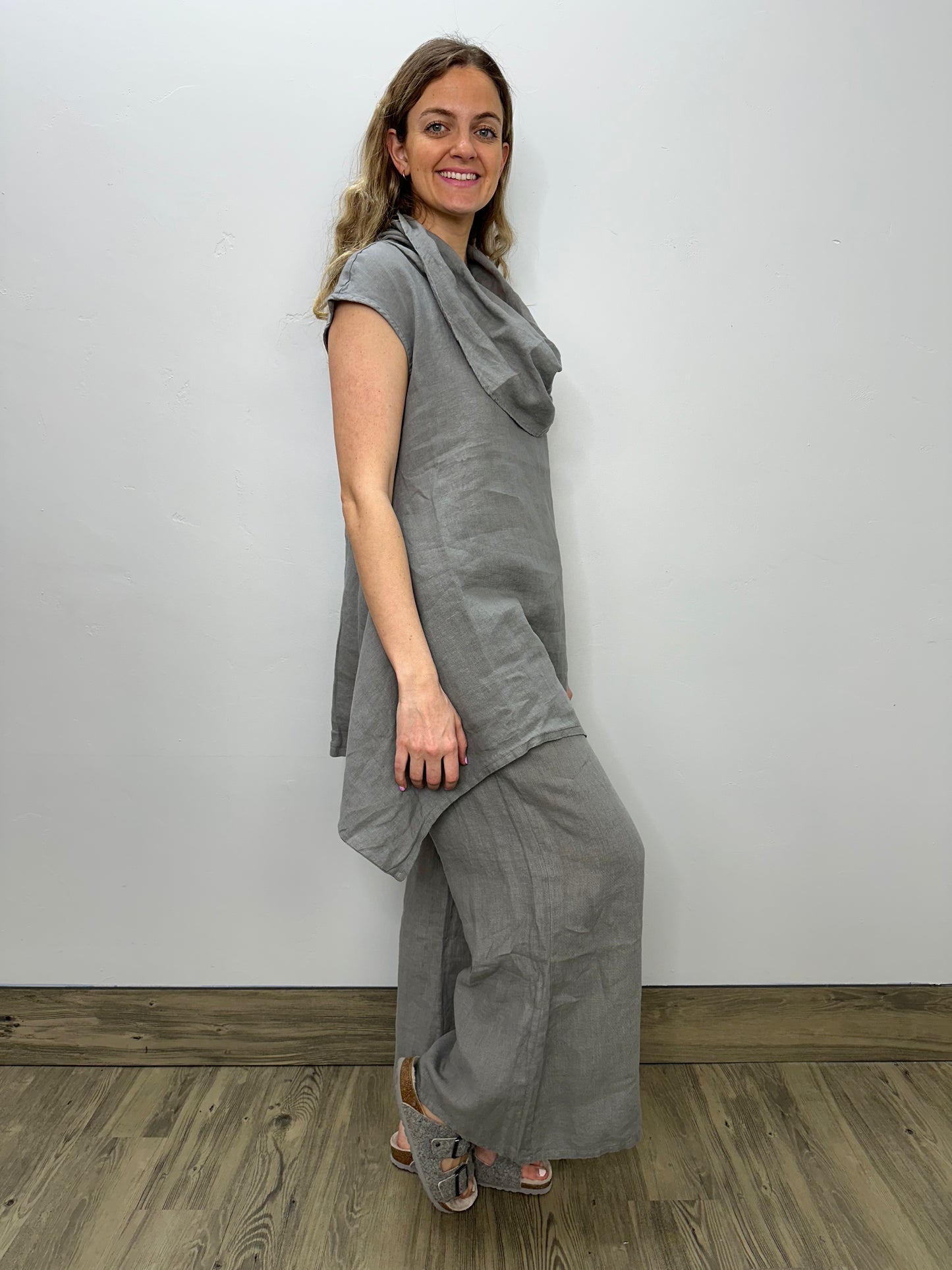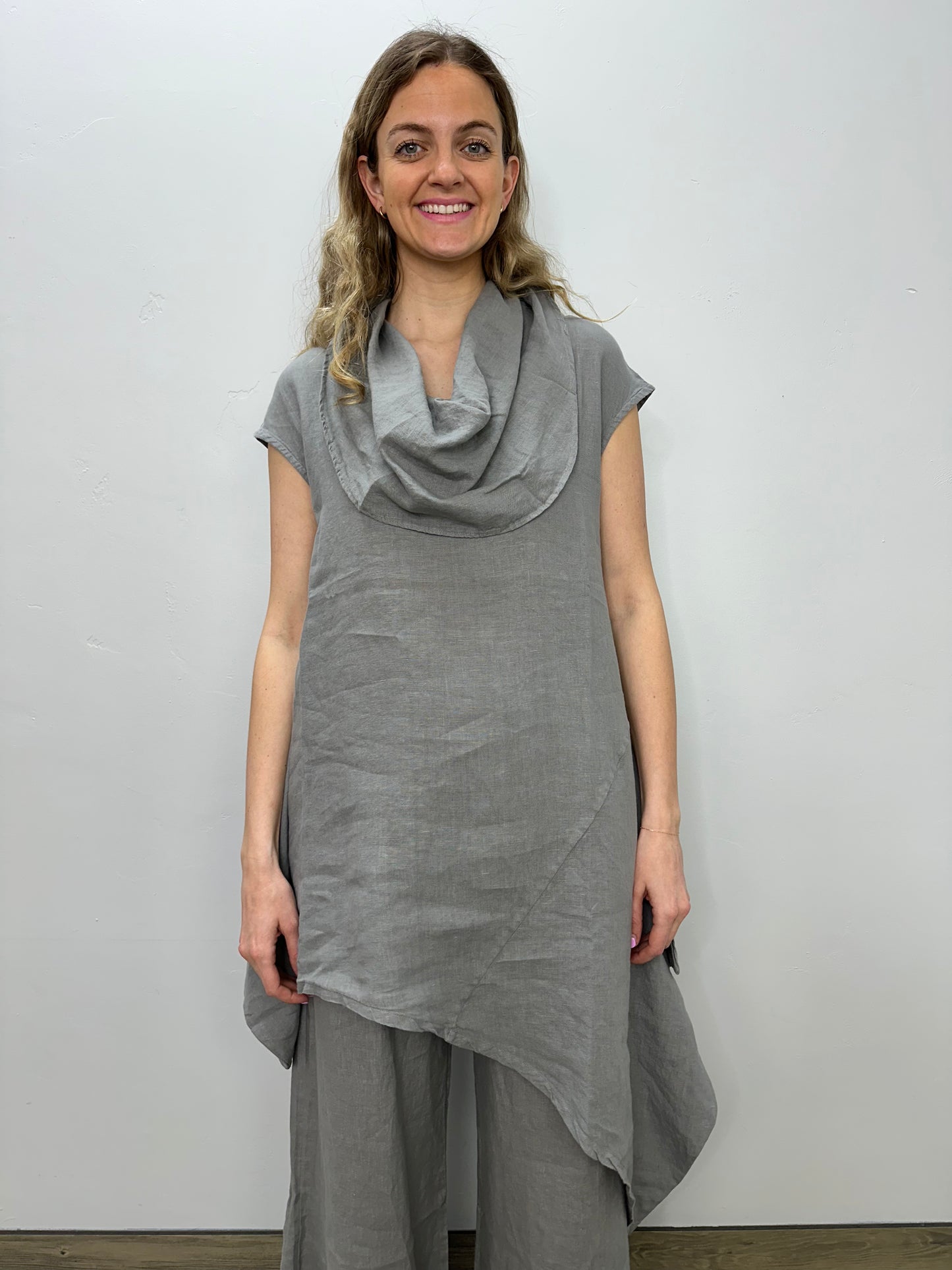 Gray Short Sleeve Cowl Neck Linen Tunic