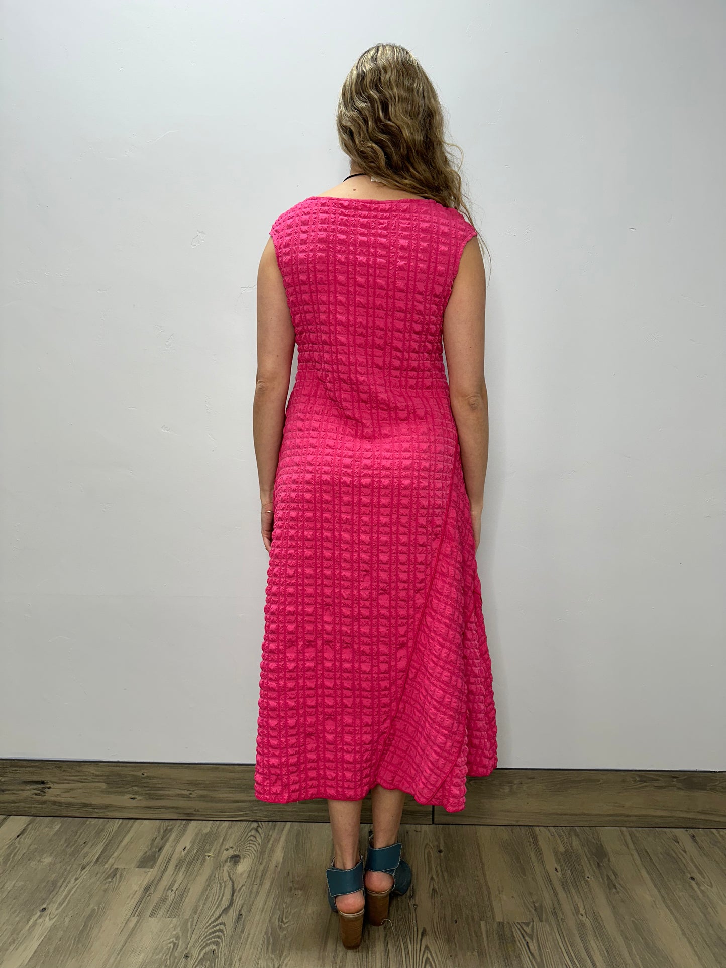 Fuchsia Pucker Sleeveless Dress with Pocket