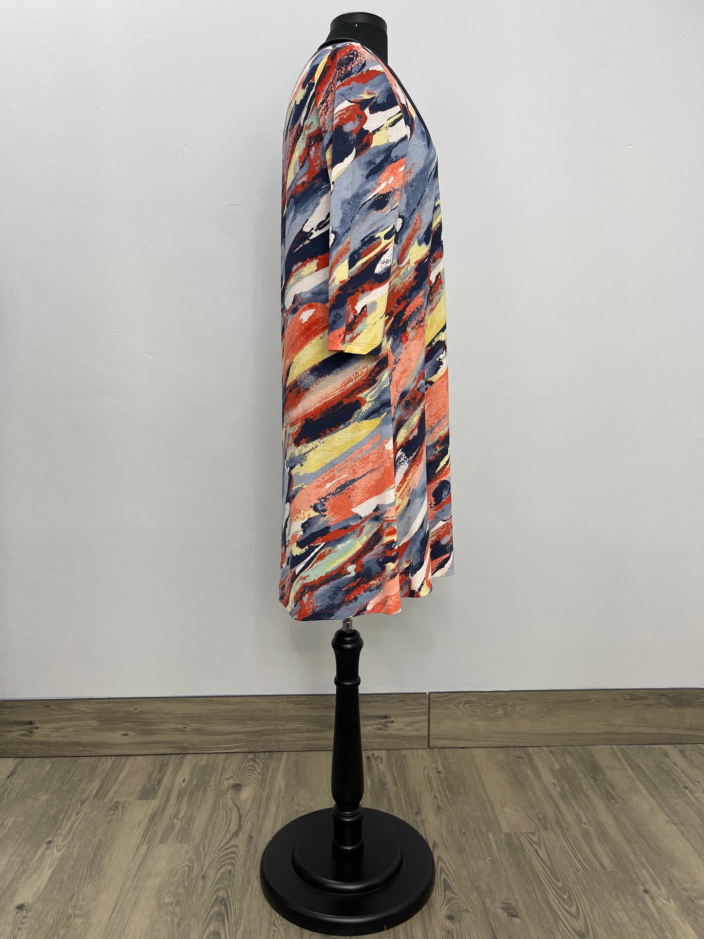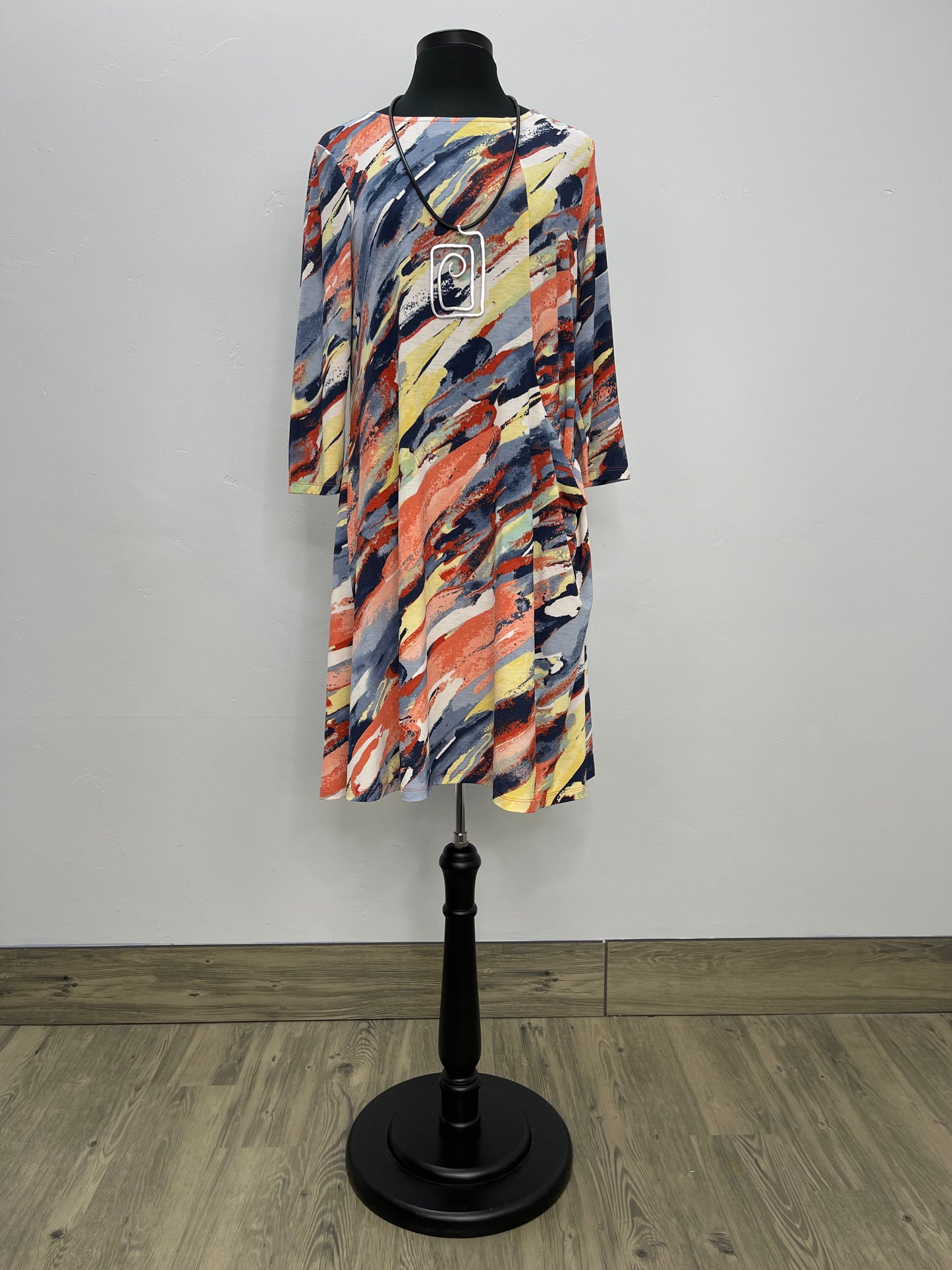 Regular price $86.80Feel the warmth of summer in this breezy Hensley Sunset Pattern 3/4 Sleeve Dress. Breeze through your day in comfort with an asymmetric one pocket, scoop neck, and knee length for effortless style. Embrace the beautiful sunset pattern and make an impression that lasts.