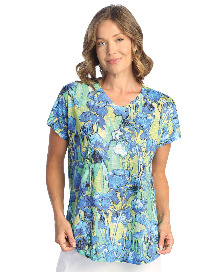 Irises V-Neck Dolman Cap-Sleeve Top