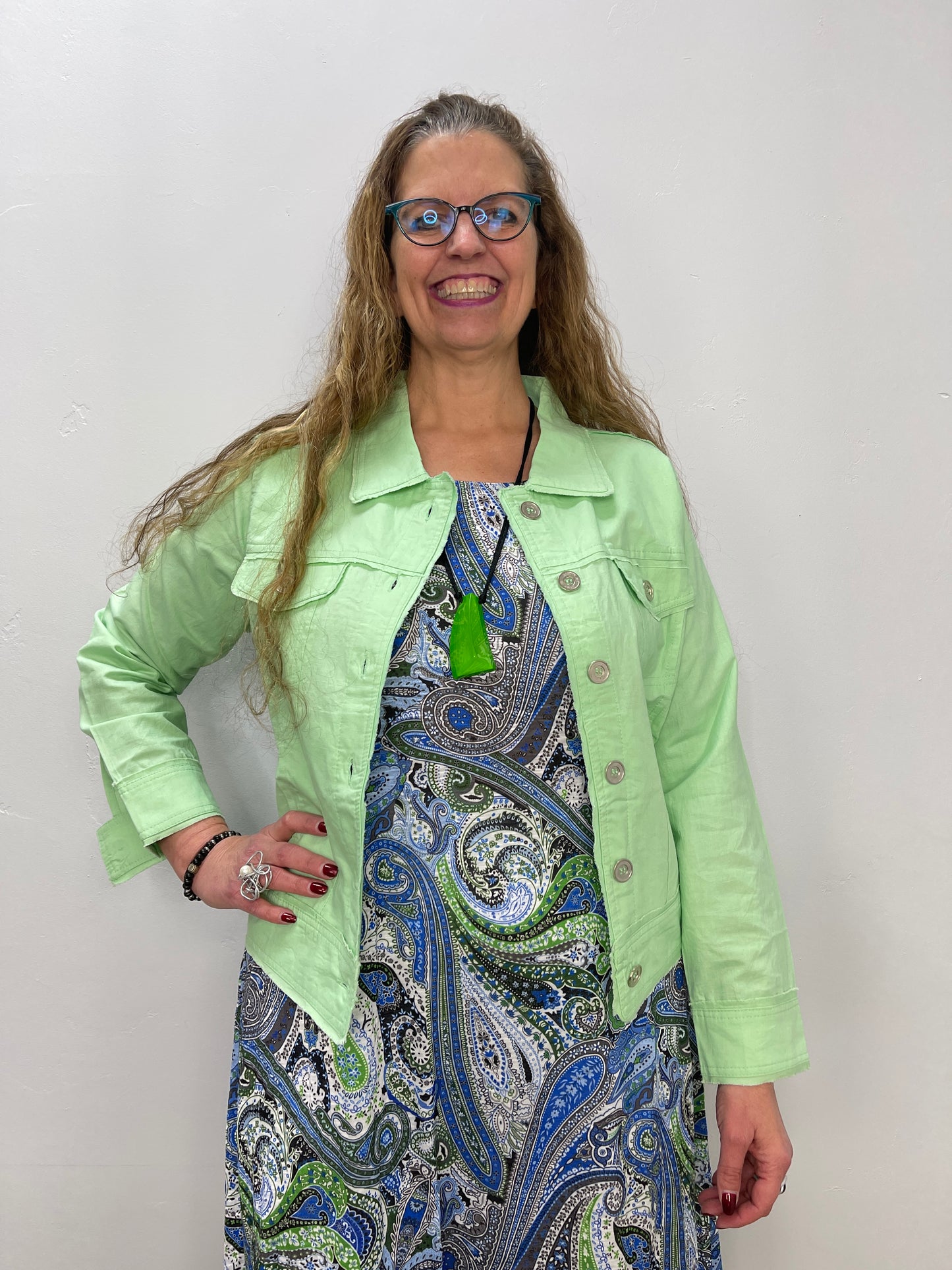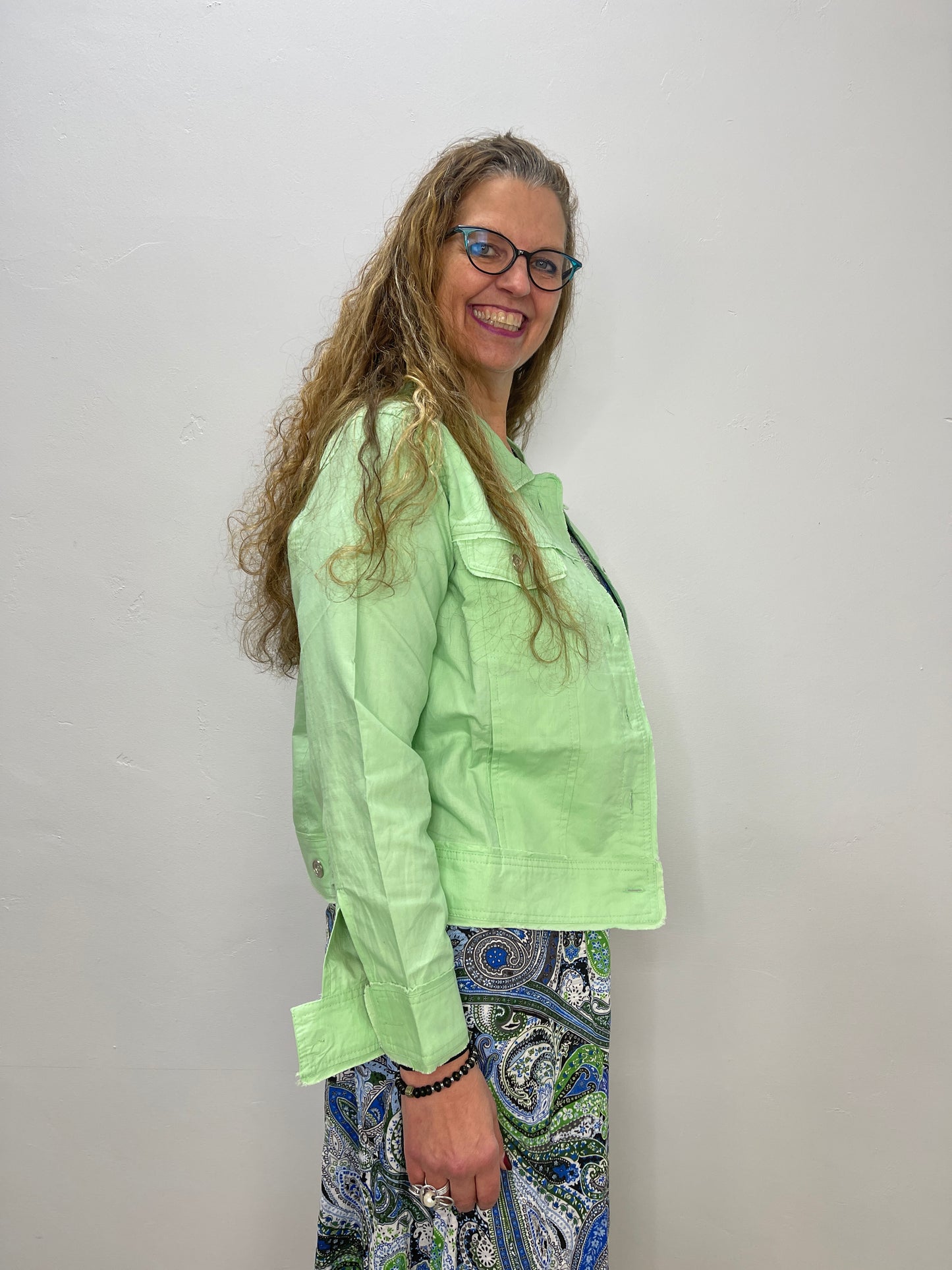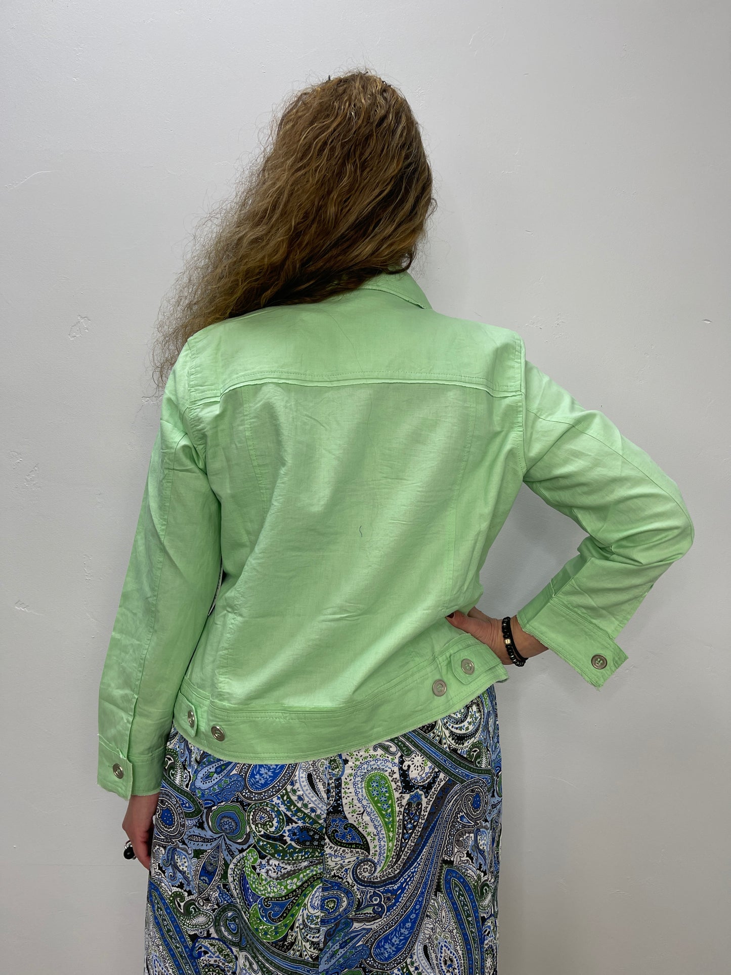 100% Linen Mint Green Collared Button Down Jacket