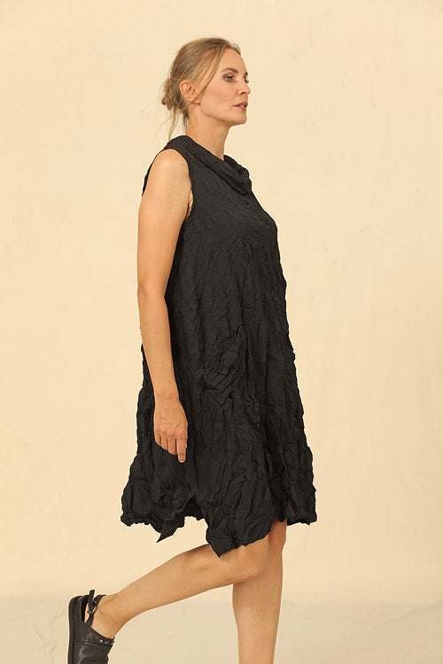 Leida Black Crinkle Tunic Dress