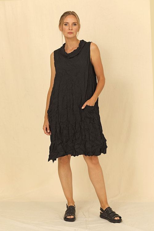 This Leida Black Crinkle Tunic Dress is the perfect way to turn heads and make a fashion statement. Its sleeveless design and round neck will keep you cool and comfortable while the one pocket gives you a place to tuck away your essentials. Style it with your favorite shoes and accessories and you'll be ready to stand out!