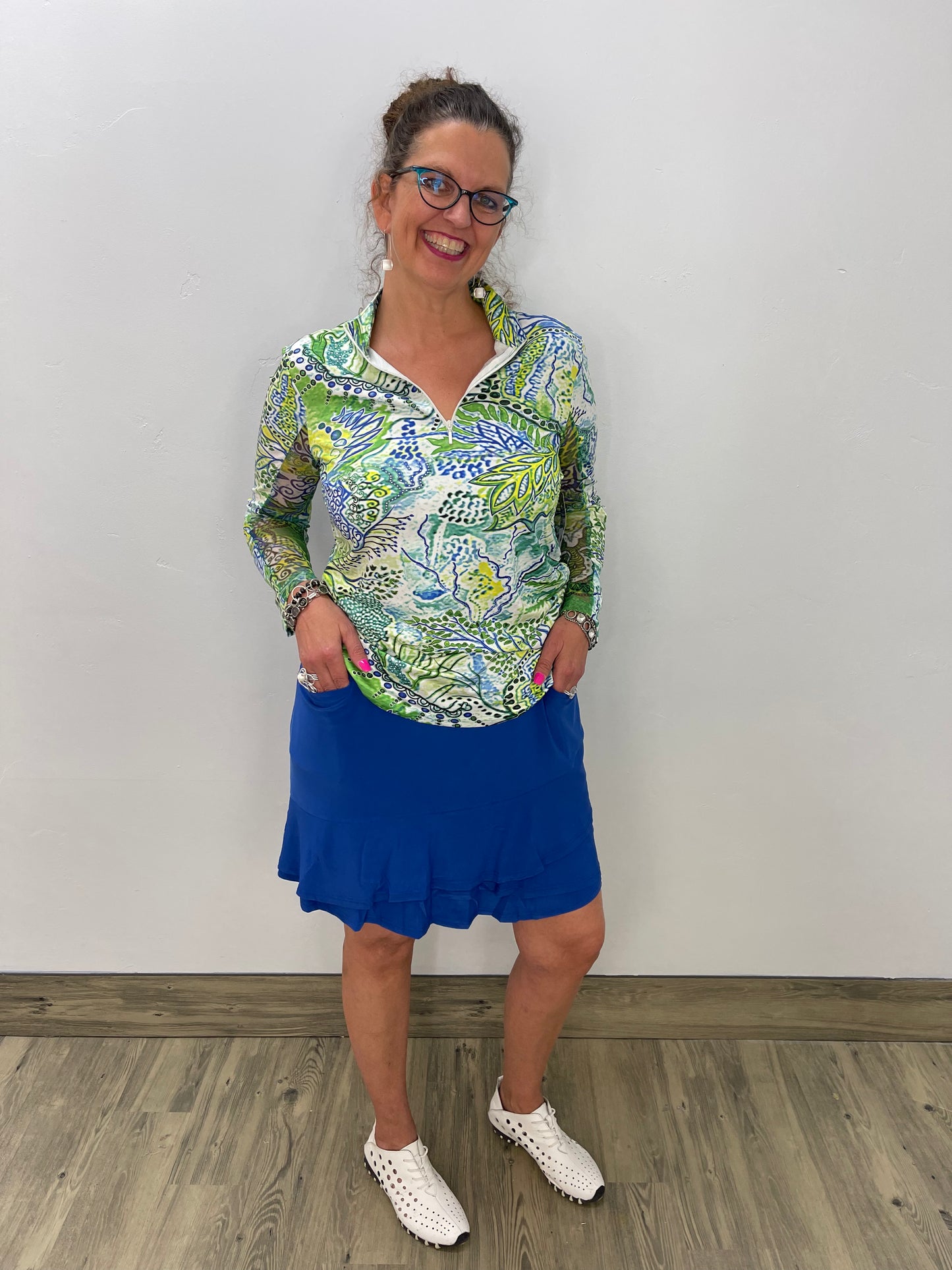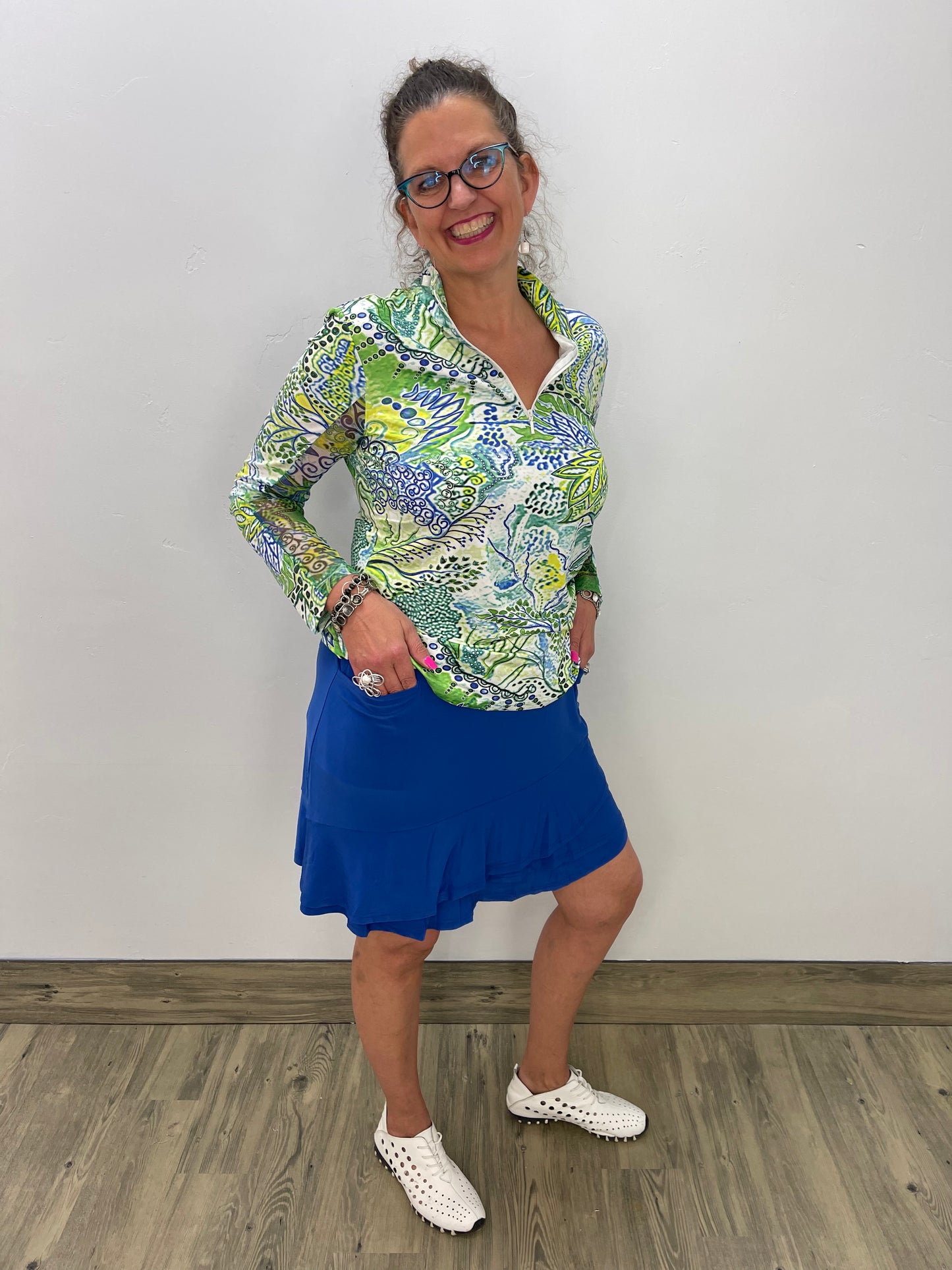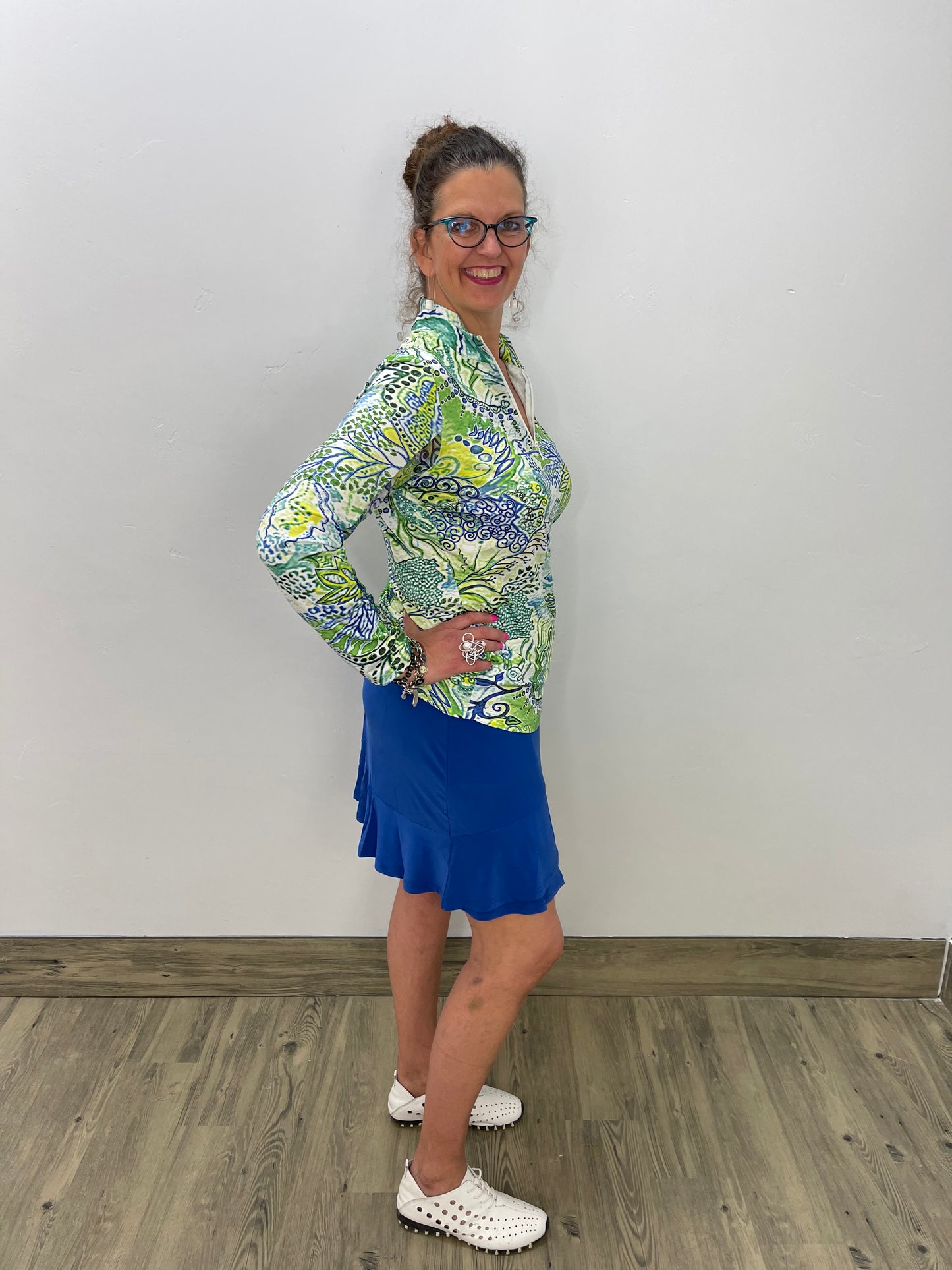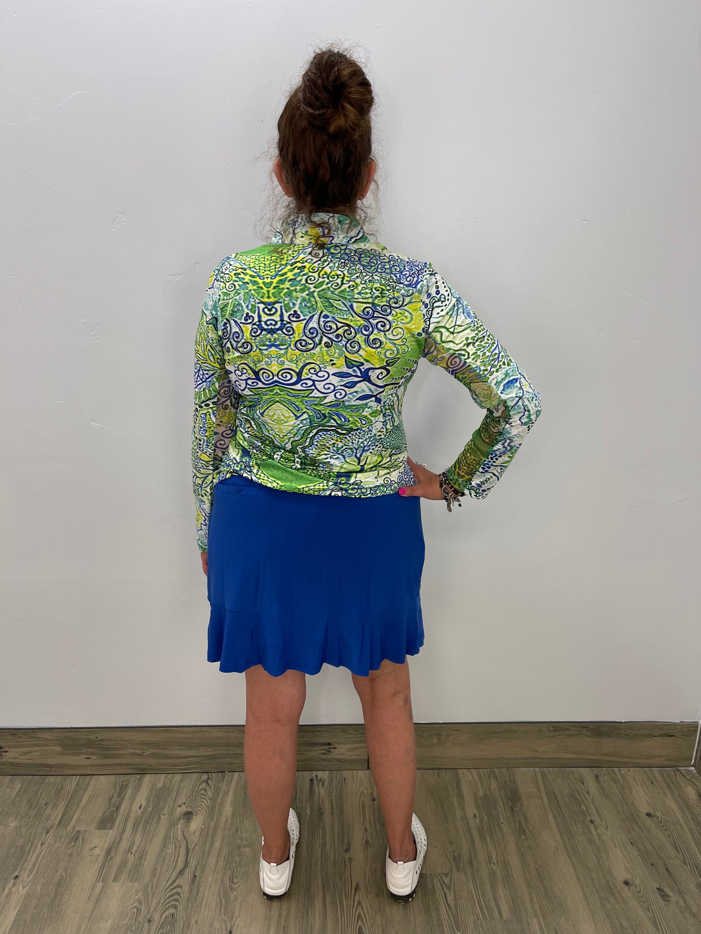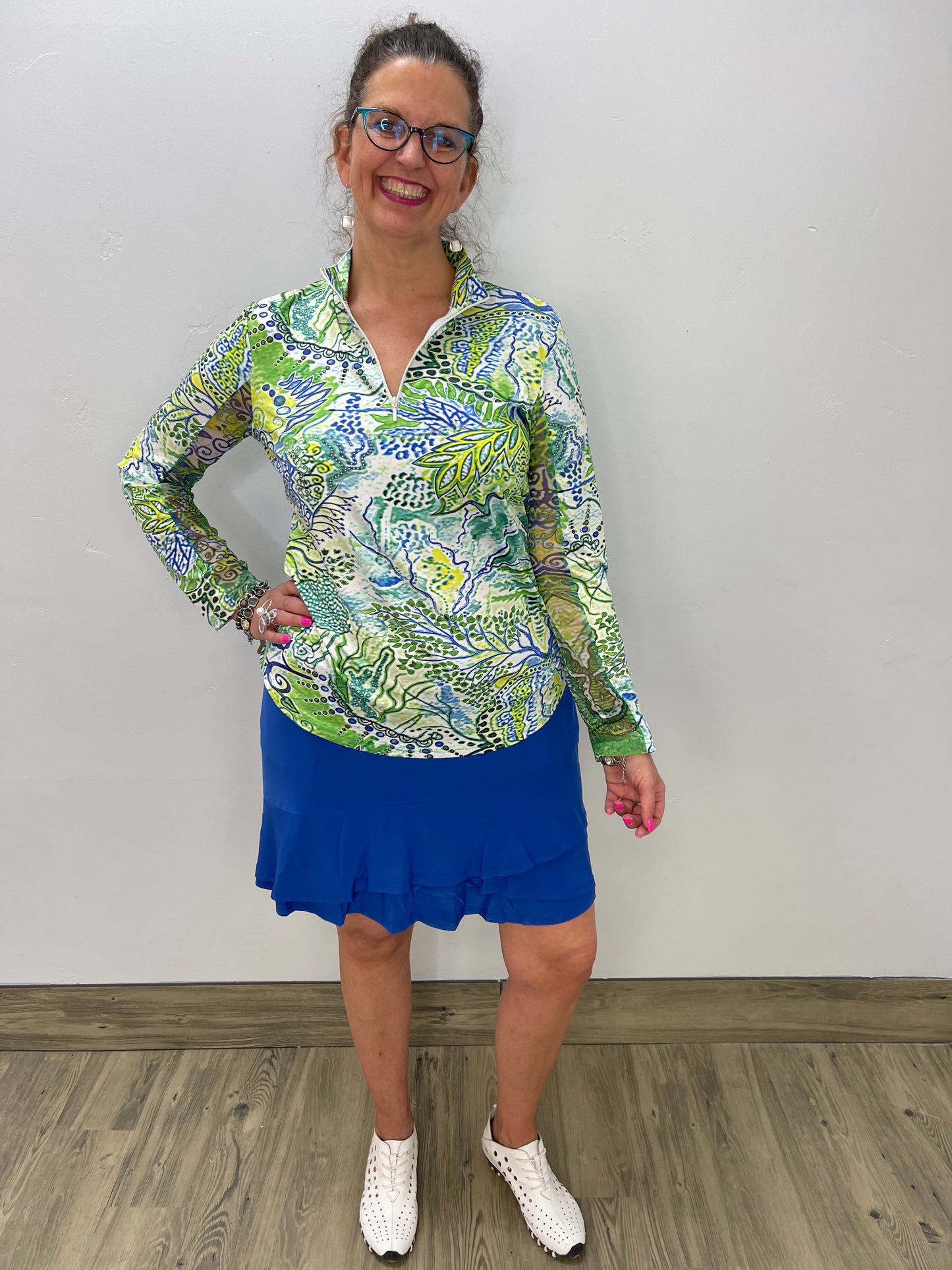Regular price $67.20This long sleeve Tango Mango top is designed with a zippered collar and long sleeves that are made with a mesh fabric underneath. A generous amount of stretch throughout.
