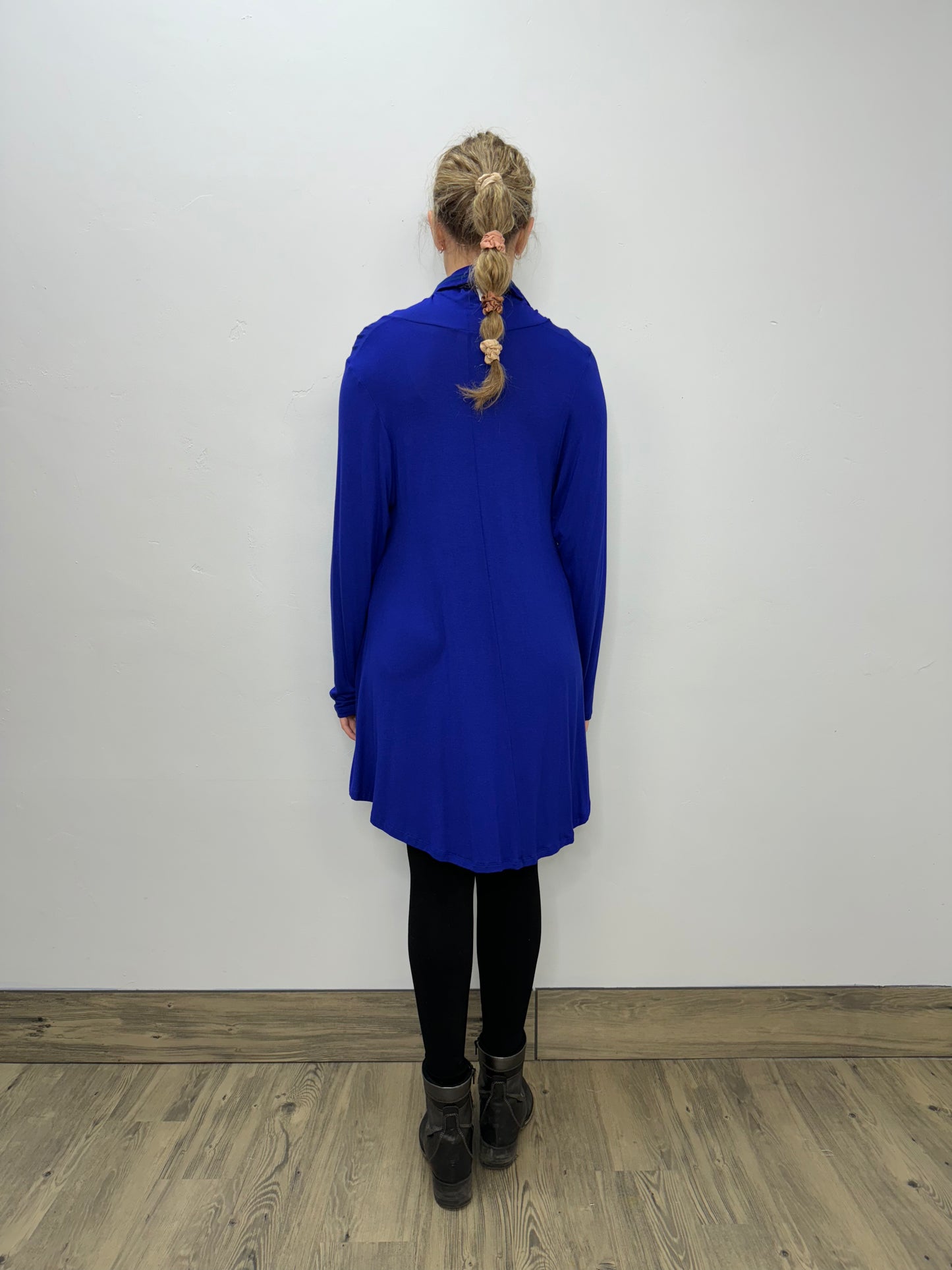 Designed by Twist Boutique owner Trish Bosman. This cowl neck tunic offers a slimming yet loose fit from the bust to waistline. It then falls to a skirt like bottom with a shirttail hemline.