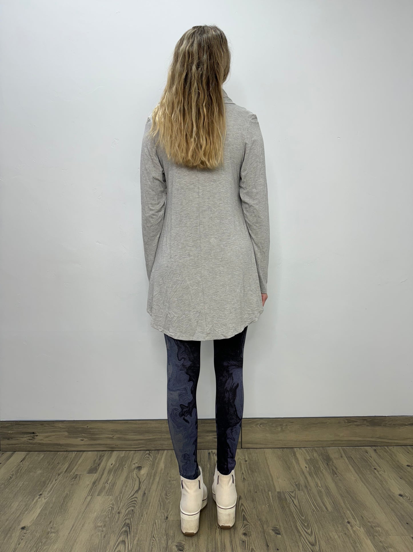 Designed by Twist Boutique owner Trish Bosman. This cowl neck tunic offers a slimming yet loose fit from the bust to waistline. It then falls to a skirt like bottom with a shirttail hemline.