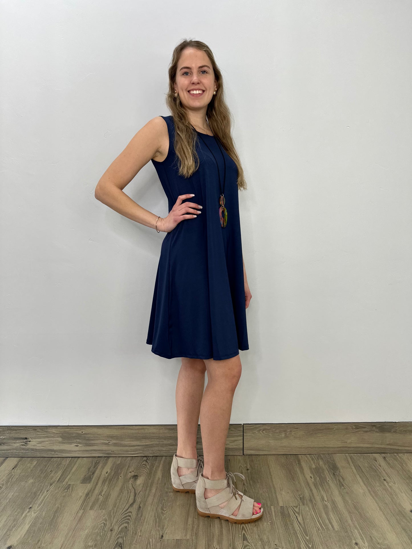 Introducing the Murol Dulce Dress, the perfect little dress for any occasion. With a full swing silhouette, bra-friendly straps and a knee length, it offers both style and comfort. Made with Kozan's Black Vogue fabric, it's a solid stretch jersey knit perfect for traveling. Elevate your wardrobe today!