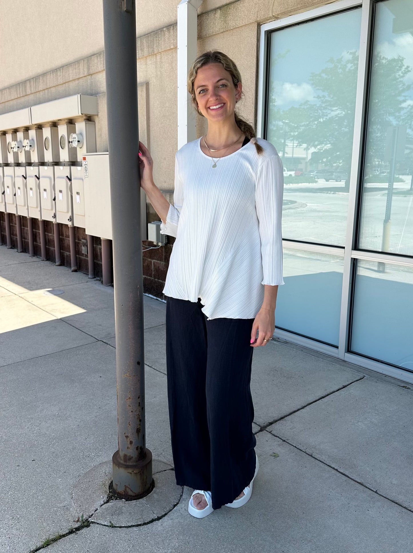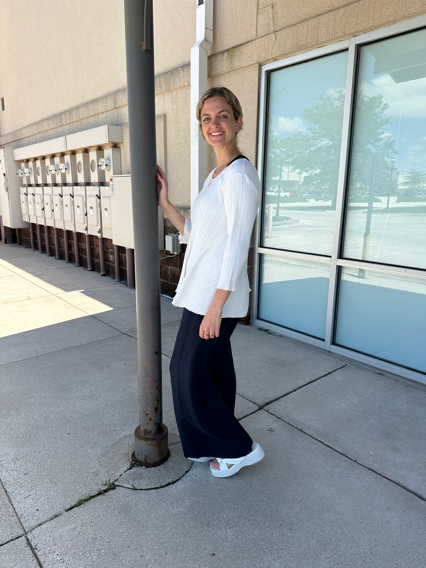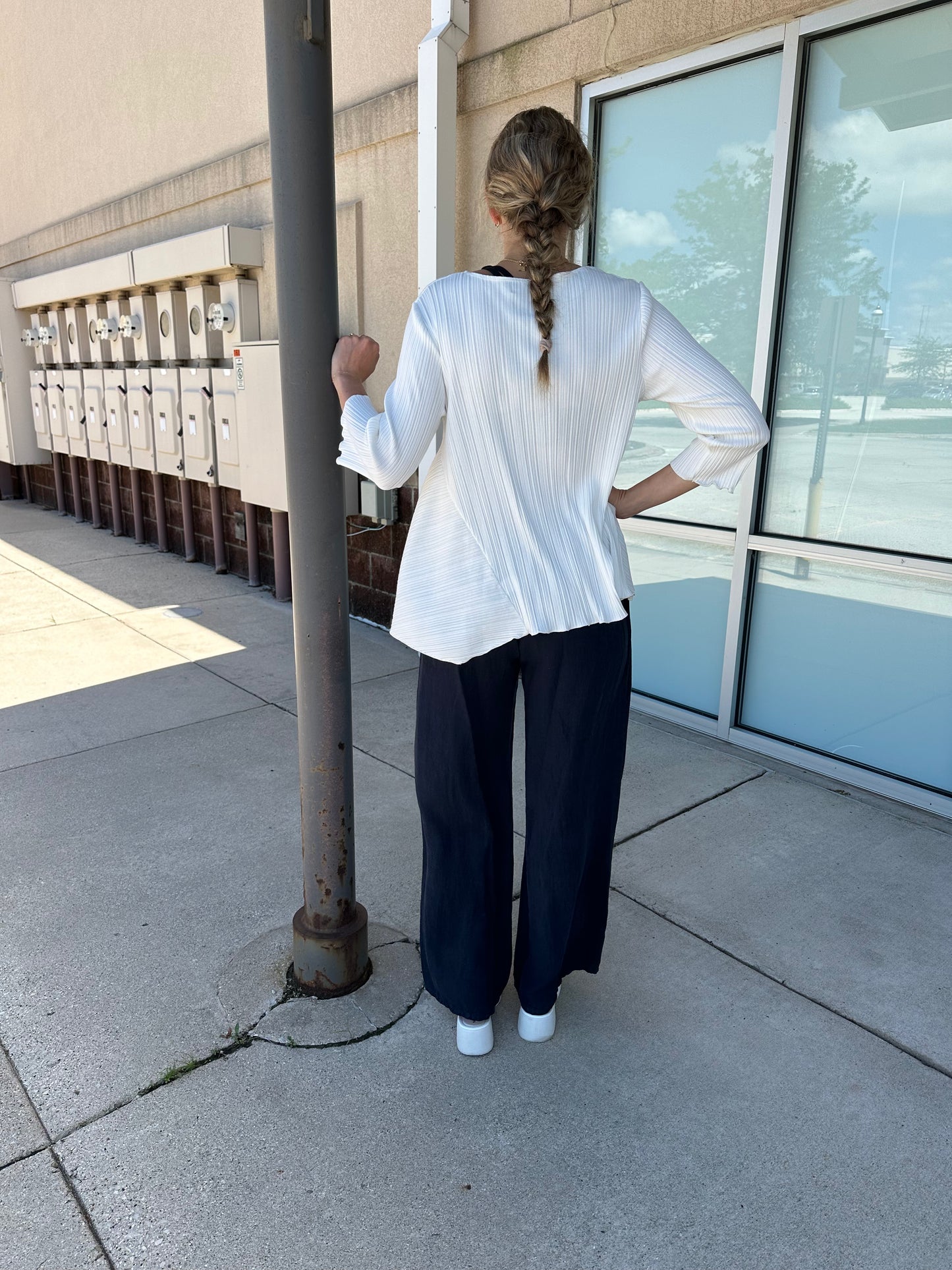 Off White Ribbed Asymmetric 3/4 Sleeve Tunic