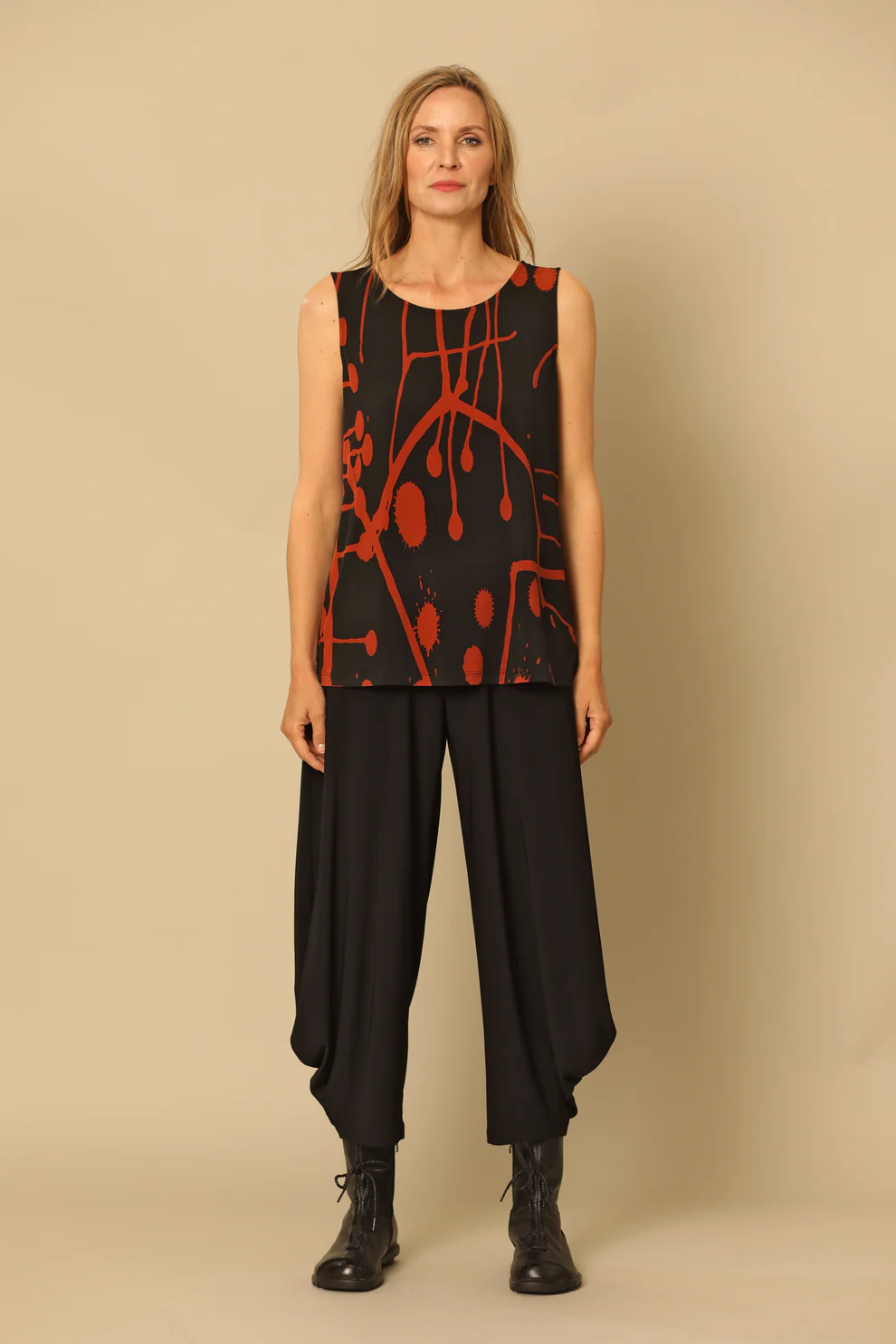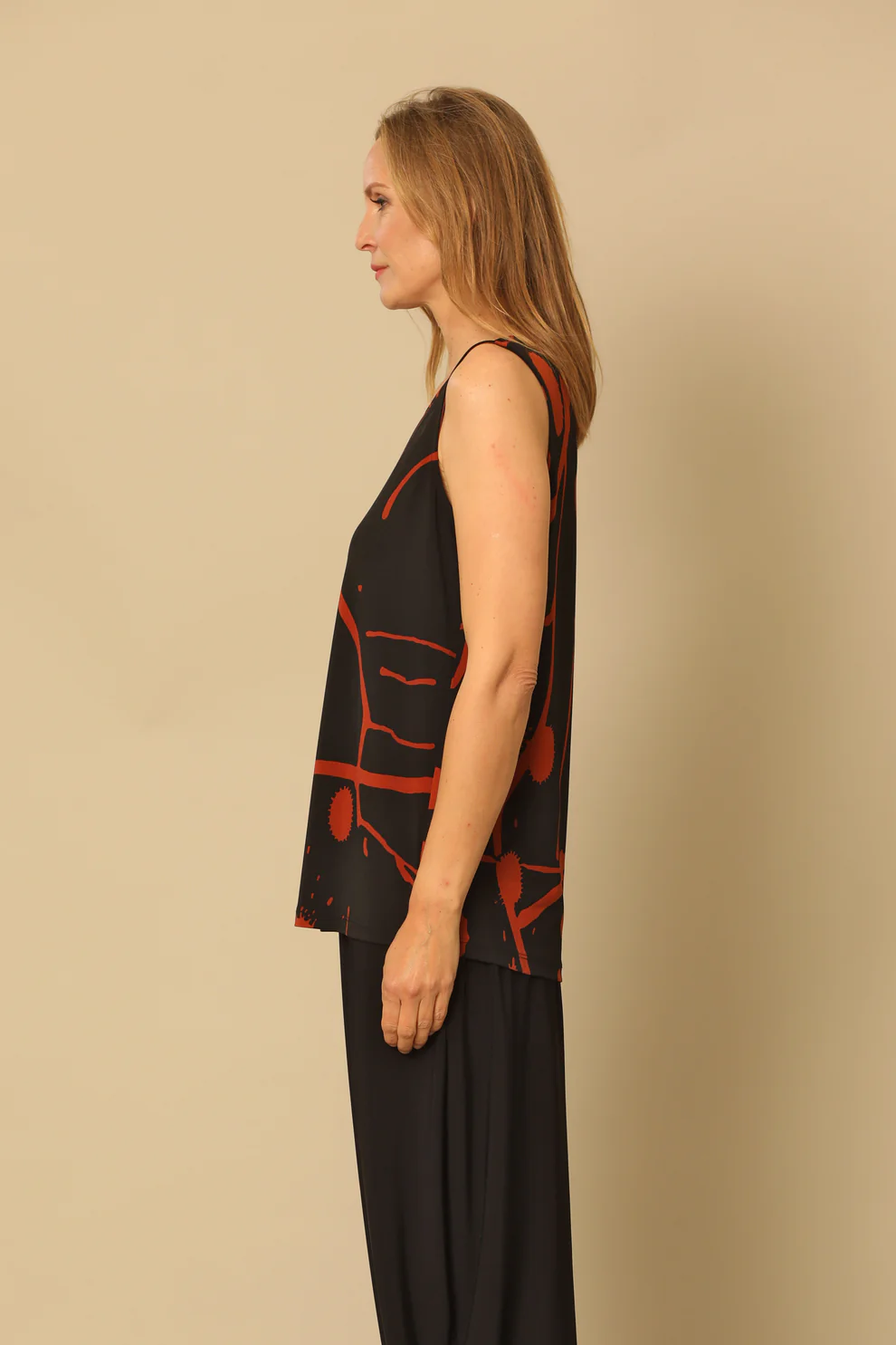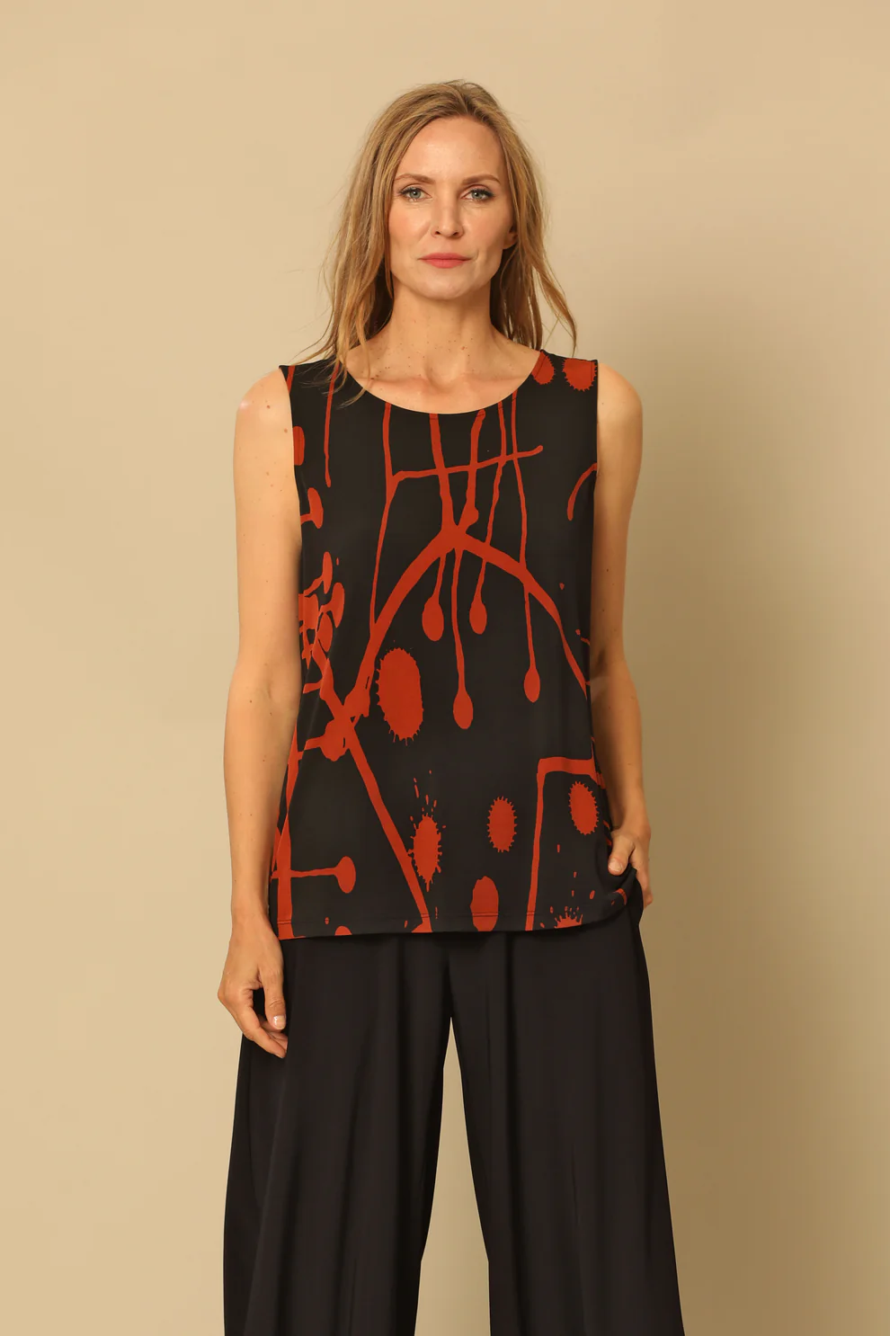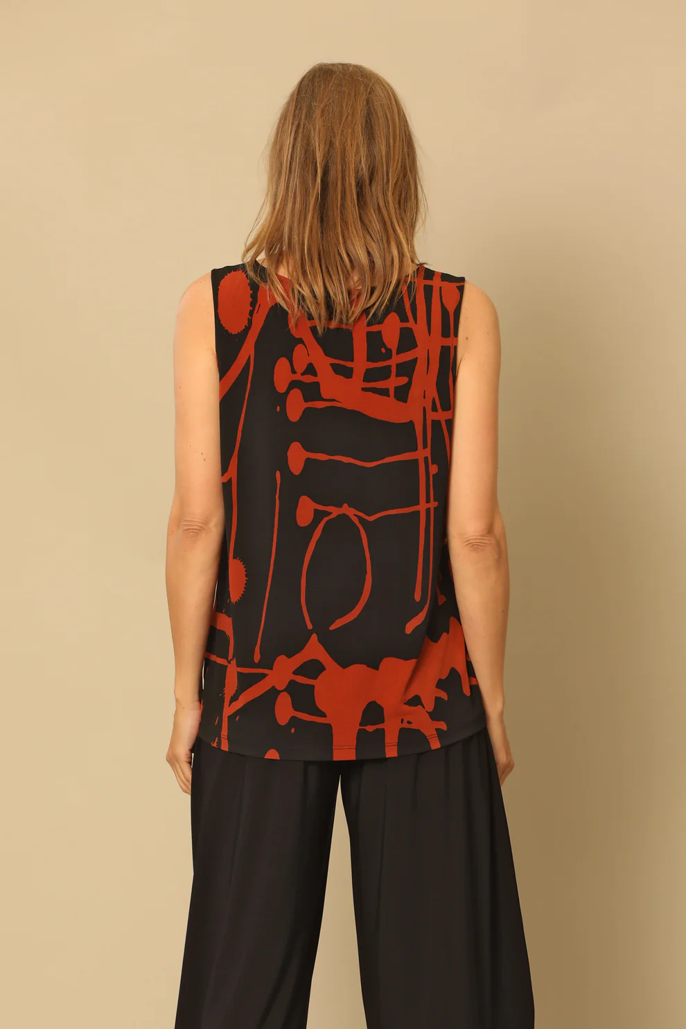 Regular price $67.90Make a statement in the Indiana sleeveless tank by Chalet. Crafted from luxuriously soft fabric, this top features a black background with a paprika orange pattern that stands out, letting you exude confidence and personality. Seamlessly layer it over a blouse or wear it on its own and you're sure to look fantastic!