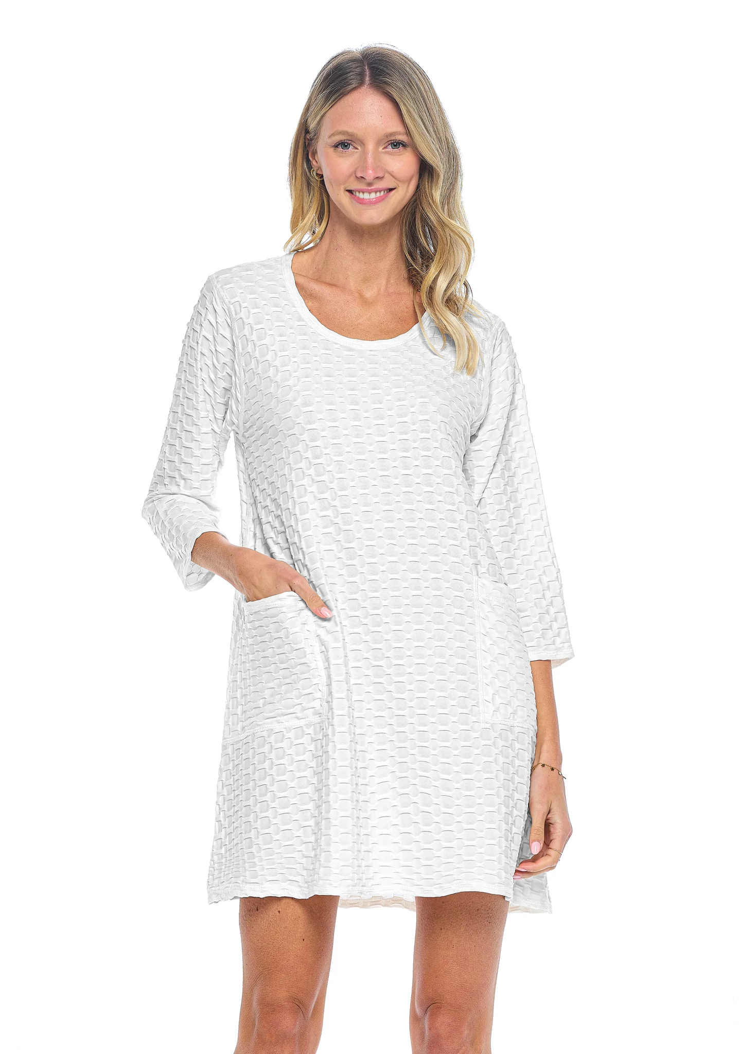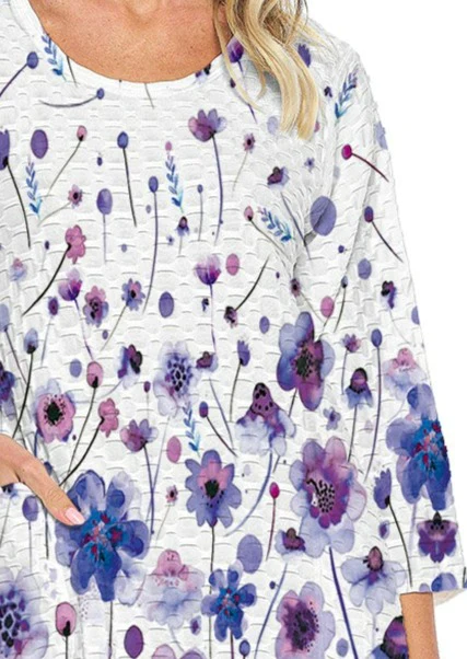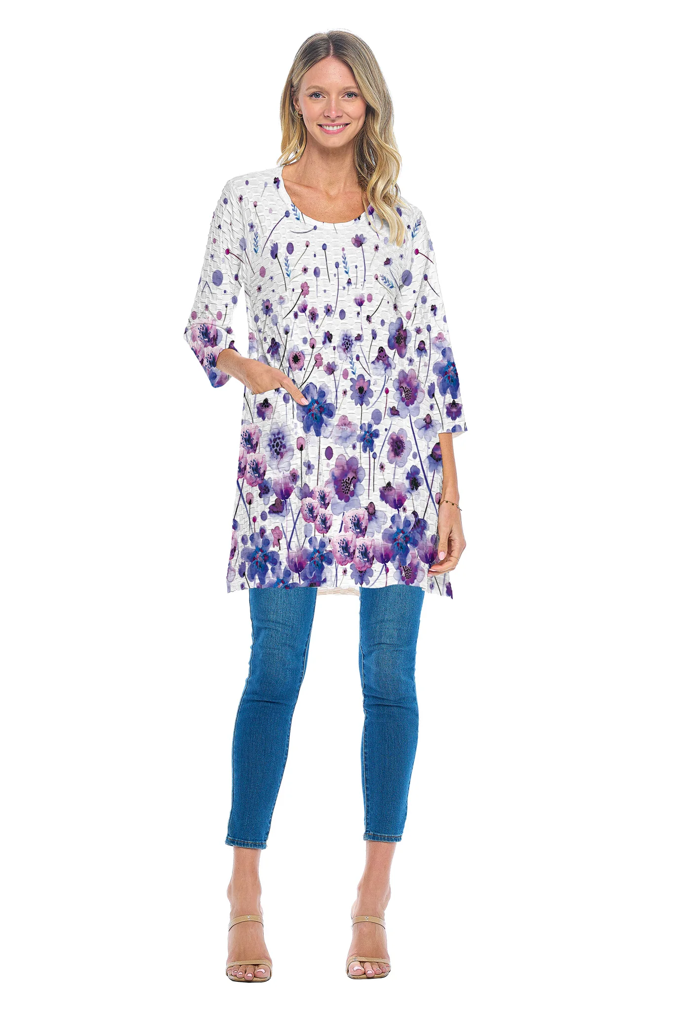 Regular price $65.80Elevate your wardrobe with the Riven Two Pocket Floral Airflow dress. Crafted from a soft and delicate fabric, this beautiful dress features a scoop neck and 3/4 sleeves, perfect for pairing with the Jess and Jane purple or denim pant. Enhance your style with this chic and timeless two pocket dress. This dress has a lovely texture to its fabric.