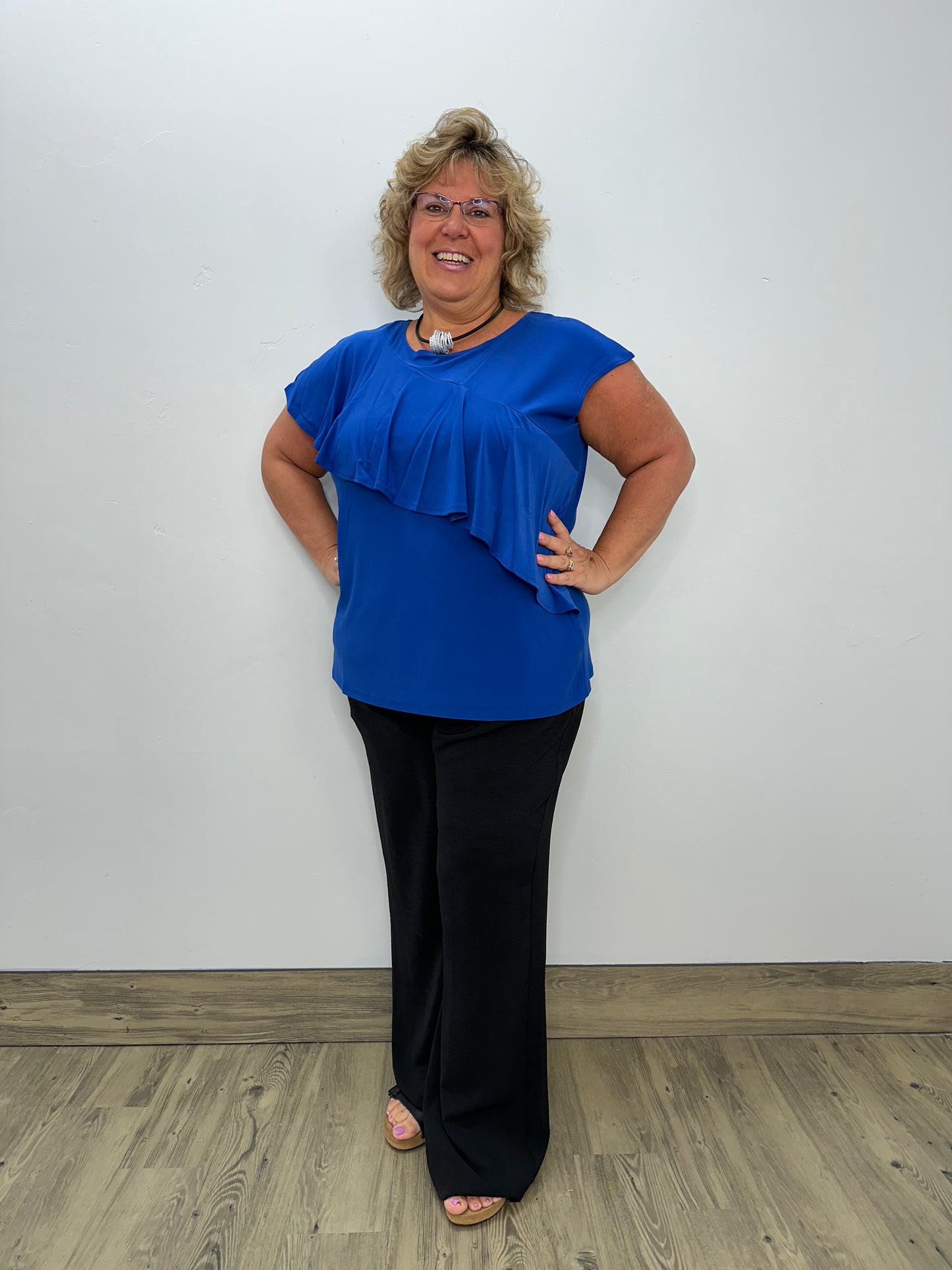 Royal Blue Sleeveless Ruffle Tank