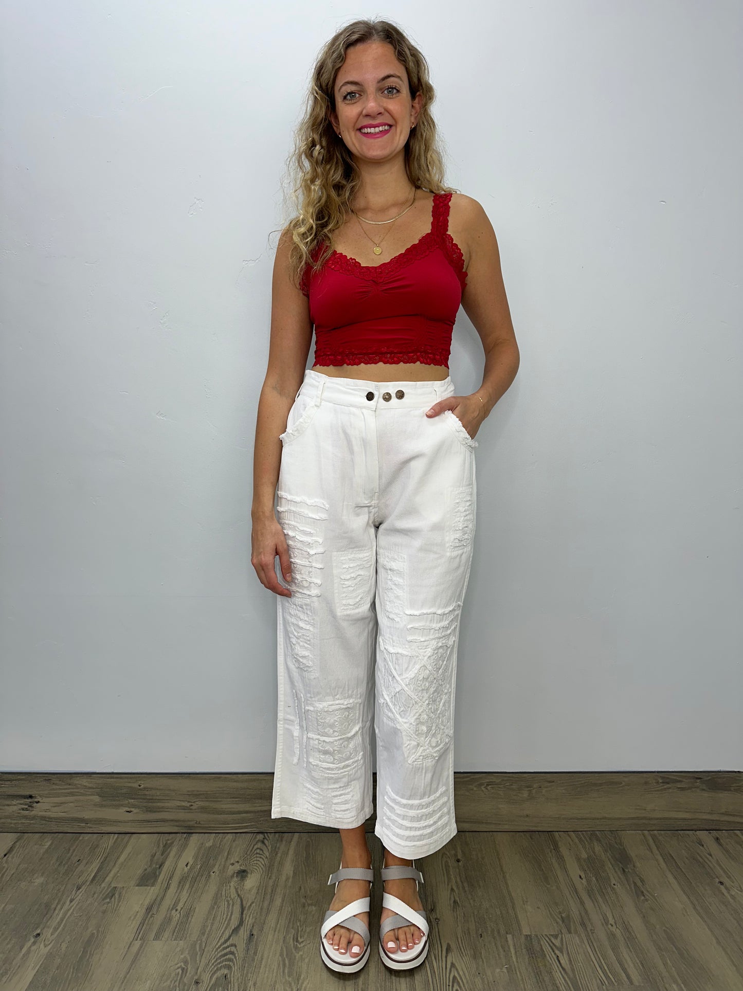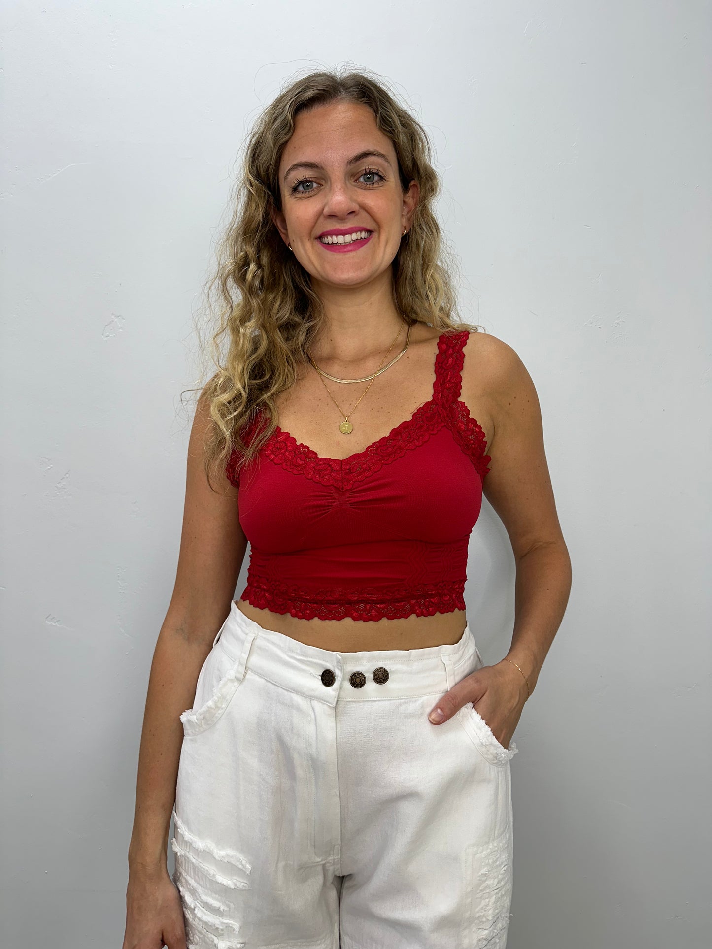 The M. Rena iconic corset Cami is now offered as a cropped bralette adored by all. Your lounge-wear alternative to a bra, perfect for layering under scoop neck or open back tops. This lace corset adds a pop of color under any sundress. It's designed with comfortable adjustable straps and a soft elastic band to provide just the right amount of support. Enjoy the added confidence and weightless comfort of this versatile bralette.
