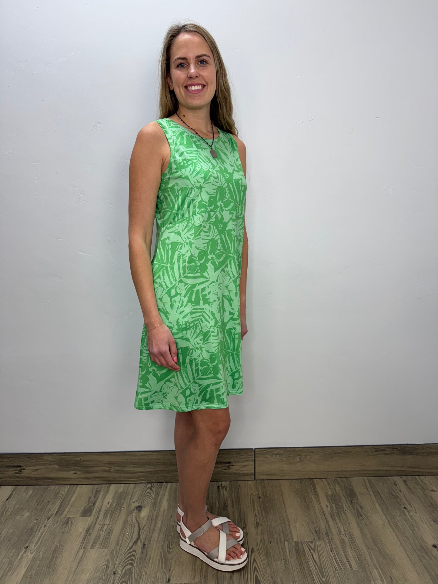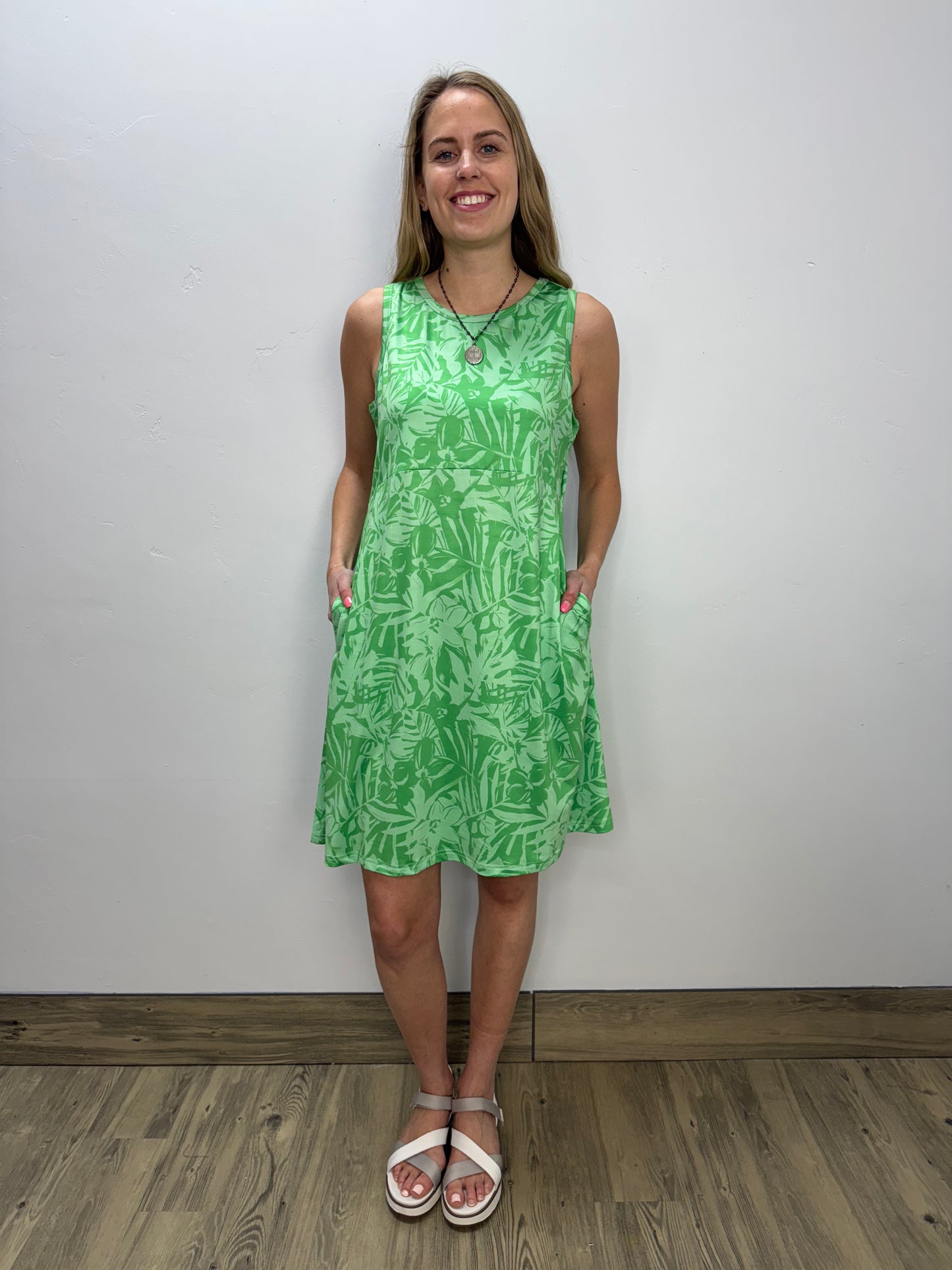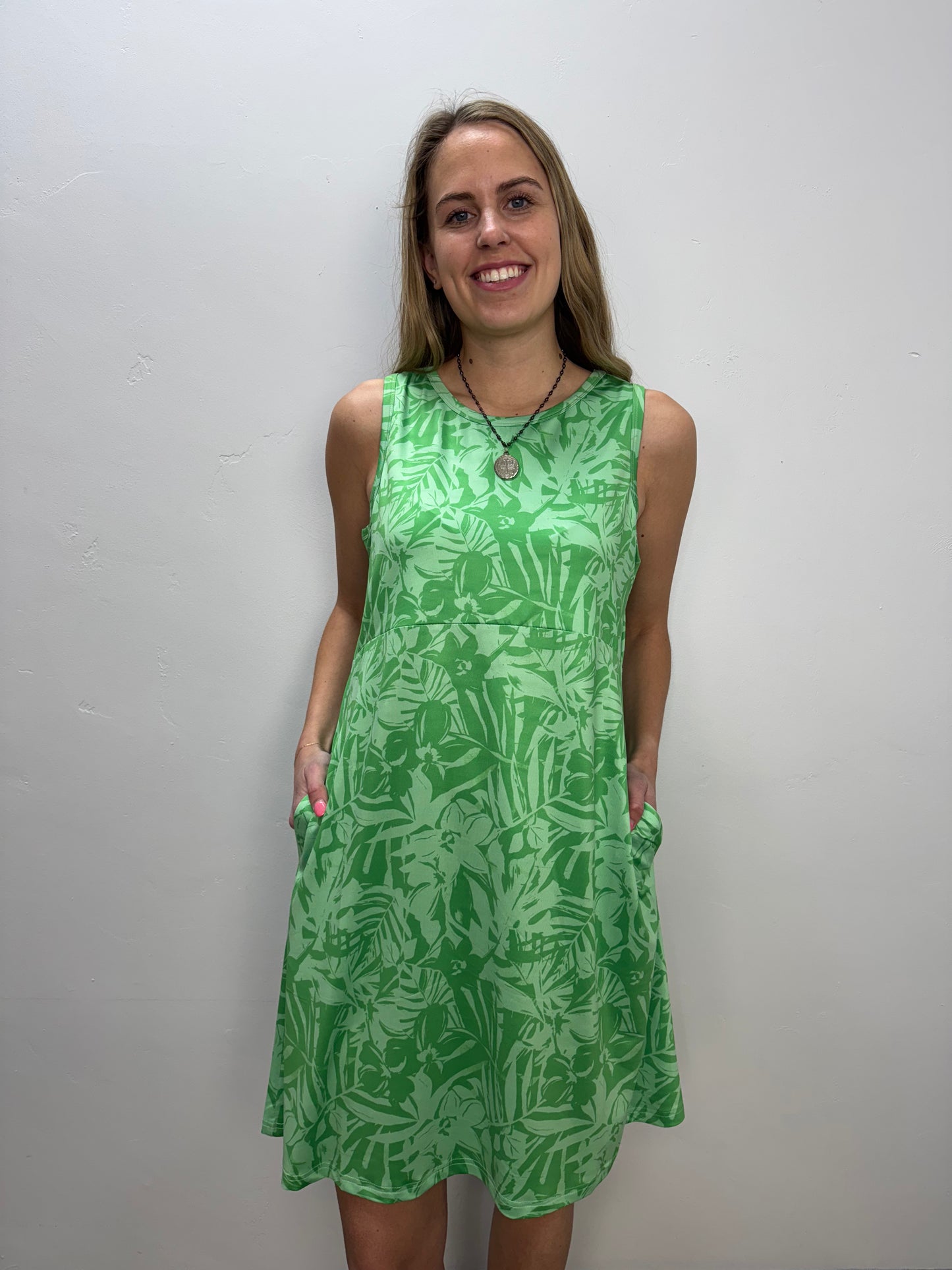 Shades of Green Leaves Sleeveless Empire Waist Dress