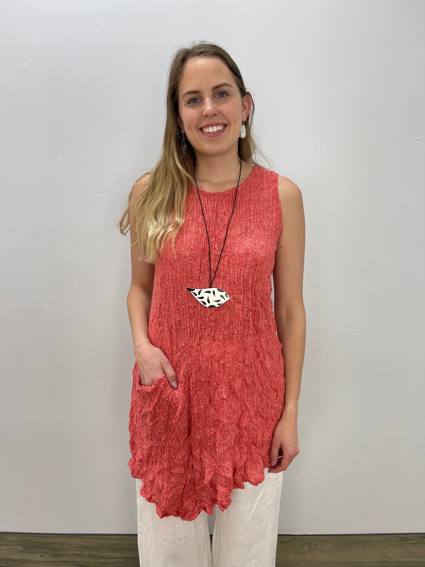 Look beautiful in the Sleeveless Geranium Luna Knit Tunic! Featuring an asymmetric hemline, one pocket, and silky-smooth fabric, this geranium pink tunic upgrades your wardrobe with effortless style. A scoop neckline adds a touch of whimsy while the sleeveless design ensures natural comfort. Get ready to shine!