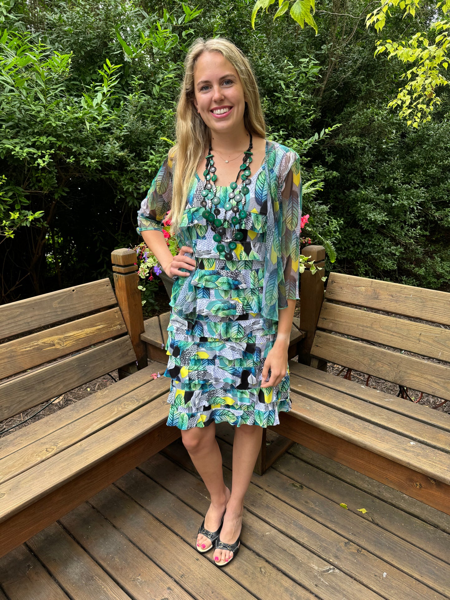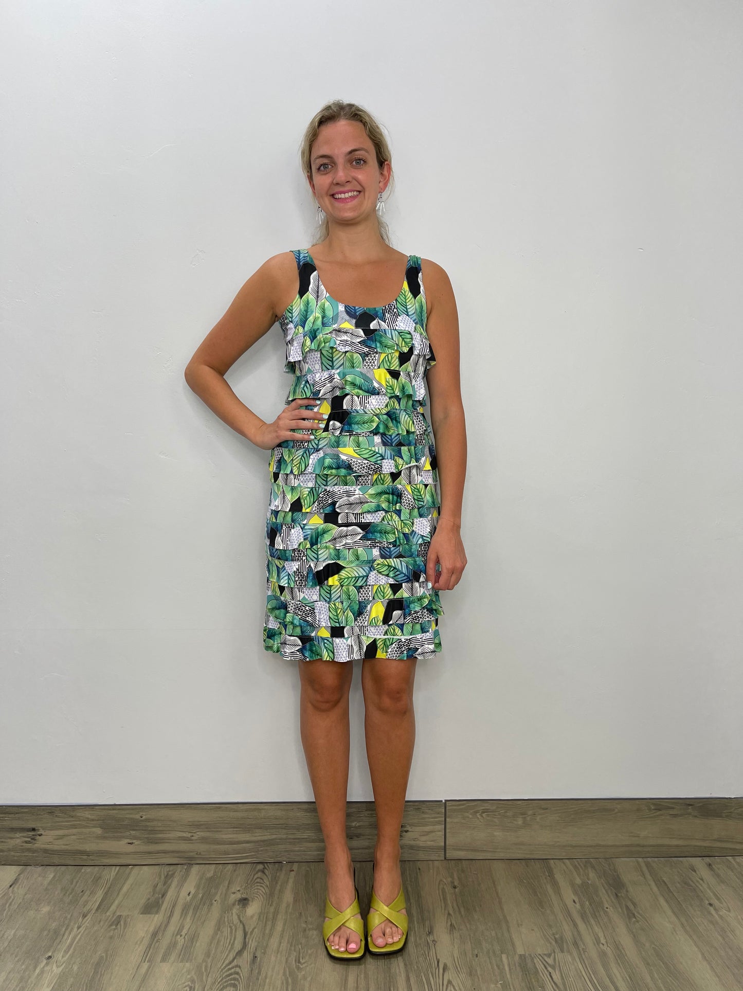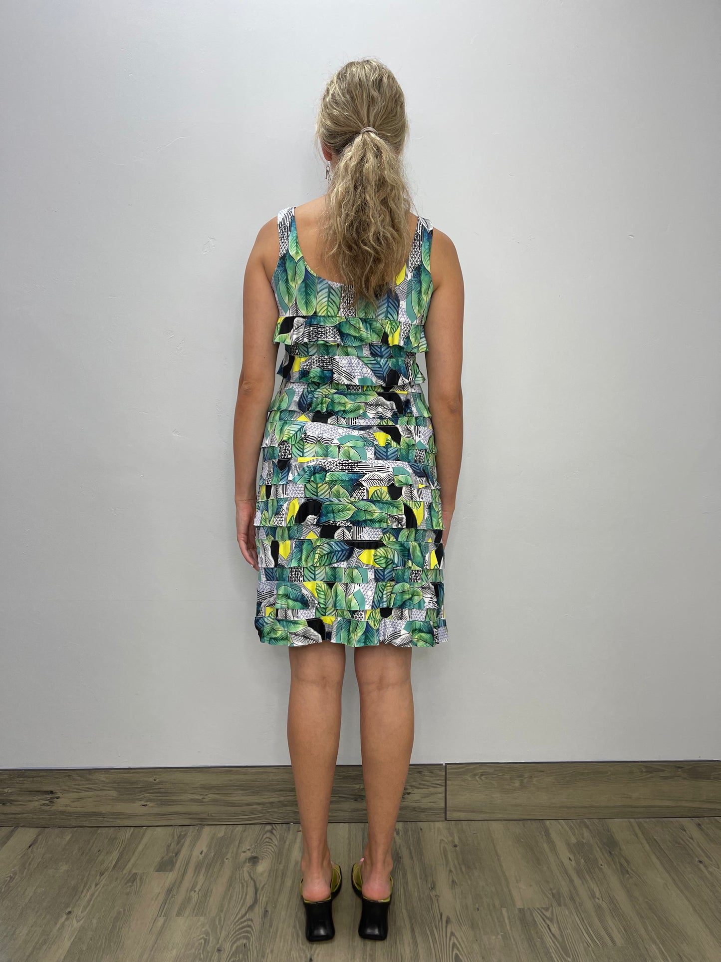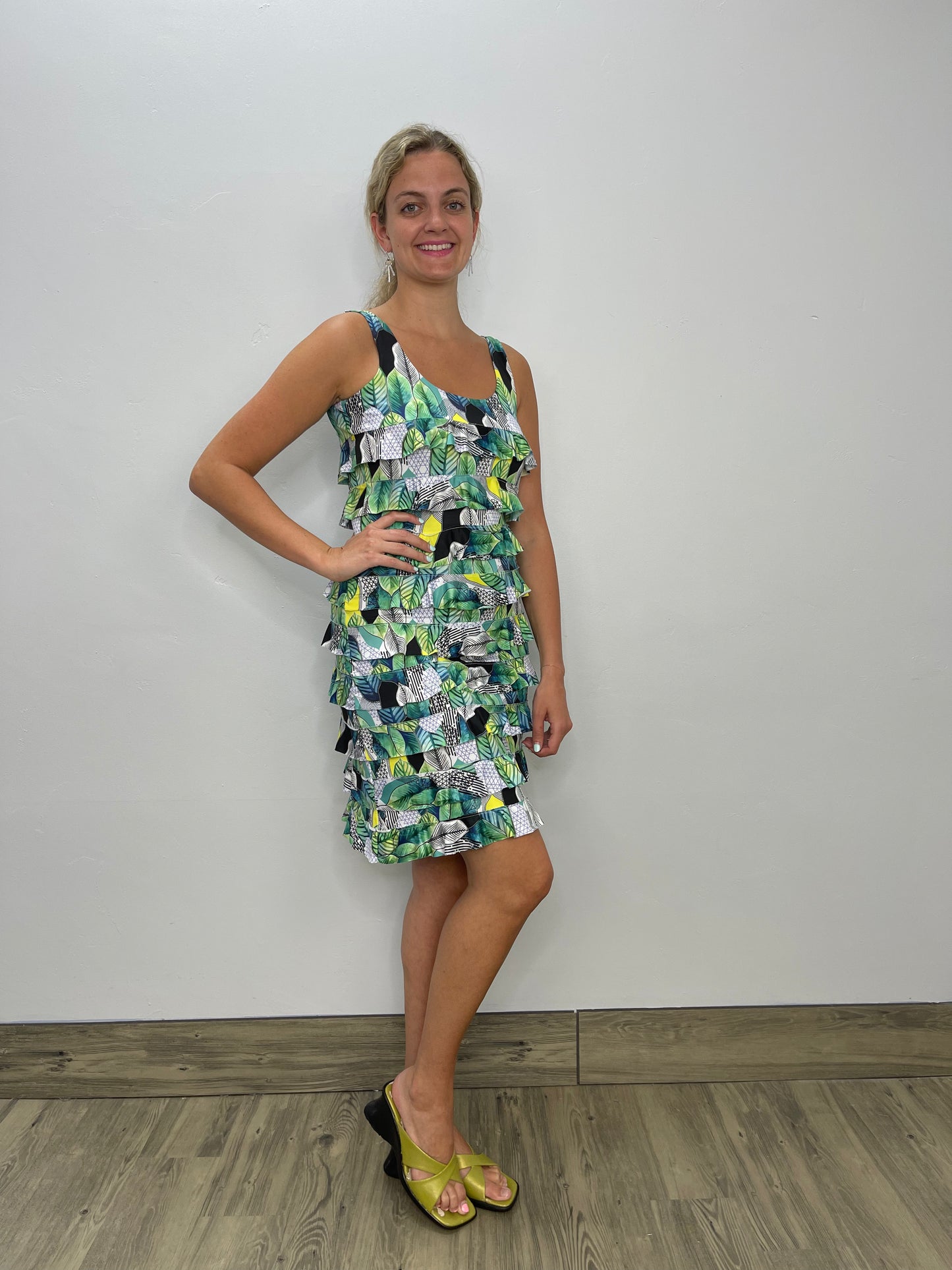 The fun Tango Mango ruffle dress is designed with a flattering close fitting silhouette and is true to size.