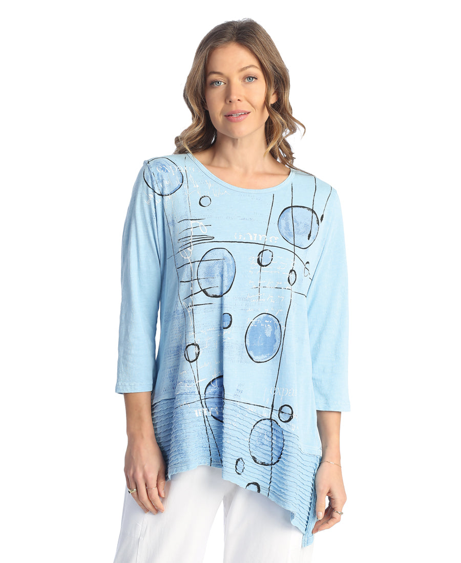 Tori Mineral Washed 100% Cotton Slub Asymmetric Tunic With Wavy Contrast