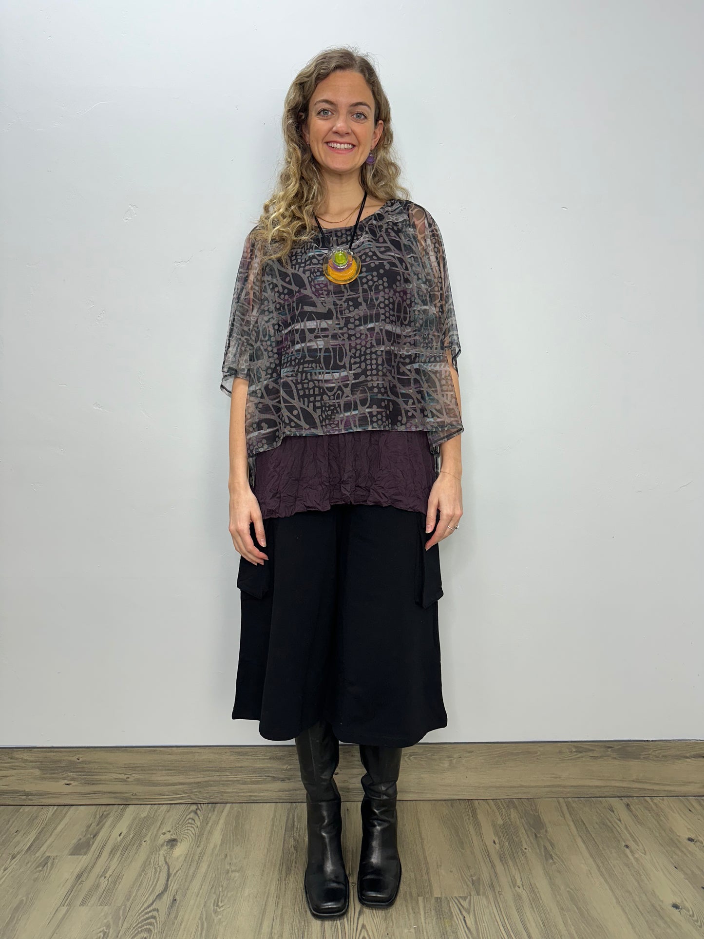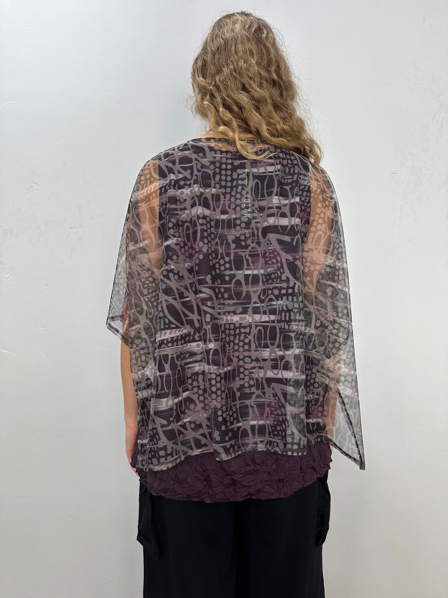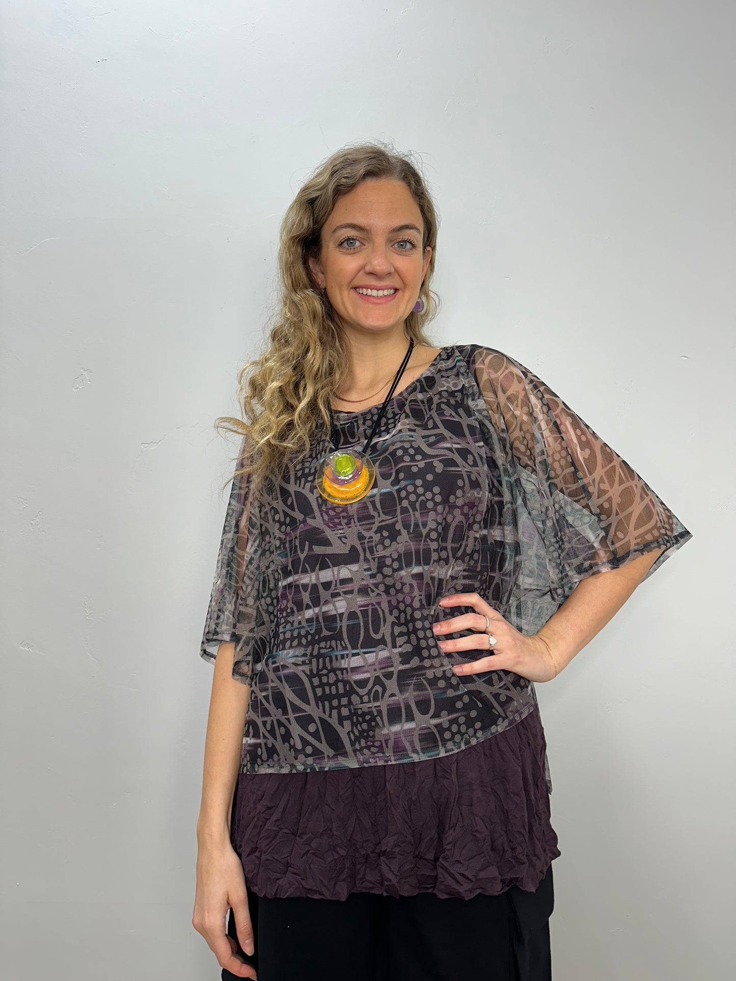 Transform any outfit into a statement with our Twilight Multicolor Print Mesh Top. Featuring a playful pattern and 3/4 sleeves, this topper adds a pop of fun to your wardrobe. The boxy fit is both comfortable and chic, making it a versatile piece for any occasion.