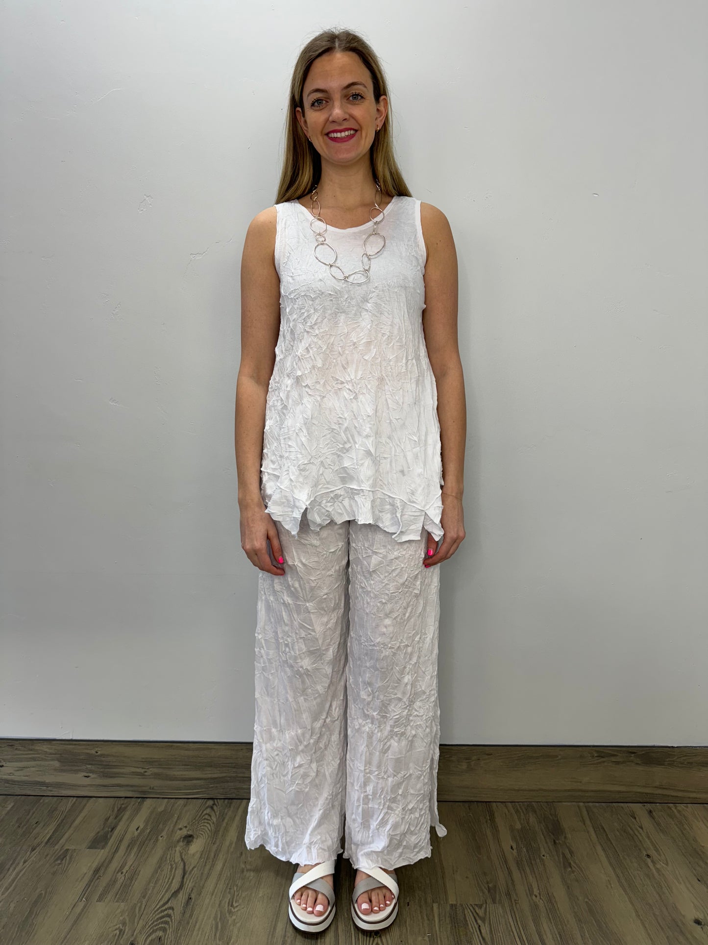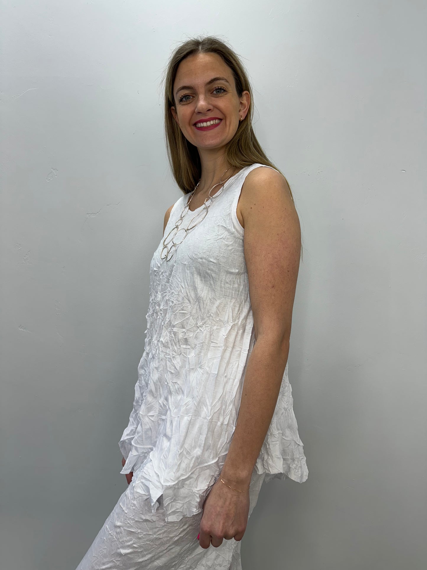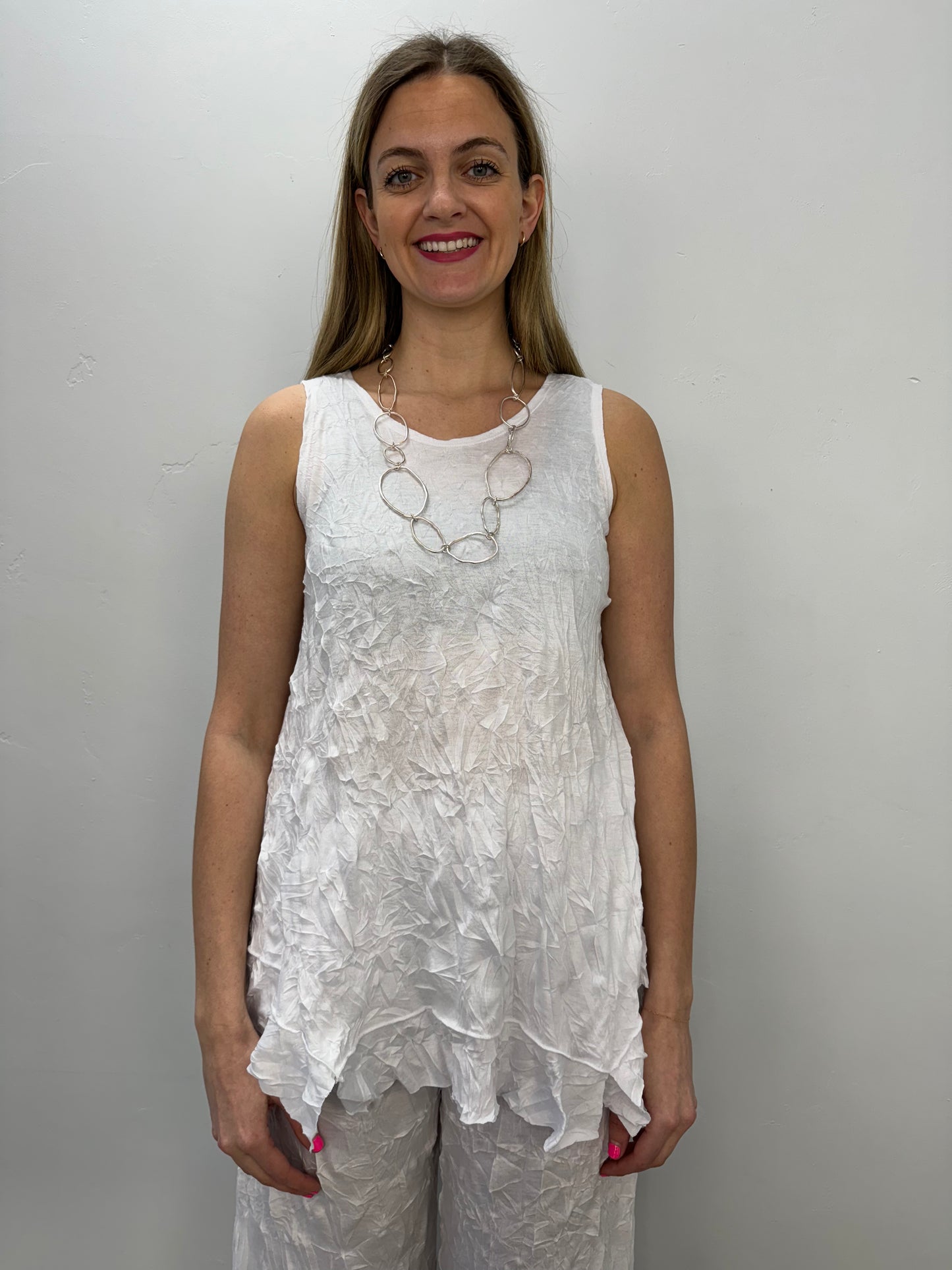 Introducing our White Crinkle Tank! This lightweight, sleeveless tank is perfect for any occasion. The crinkle texture adds a unique touch and the indigo blue color is sure to brighten up any outfit. Complete with a scoop neck, this tank is a must-have for your wardrobe.