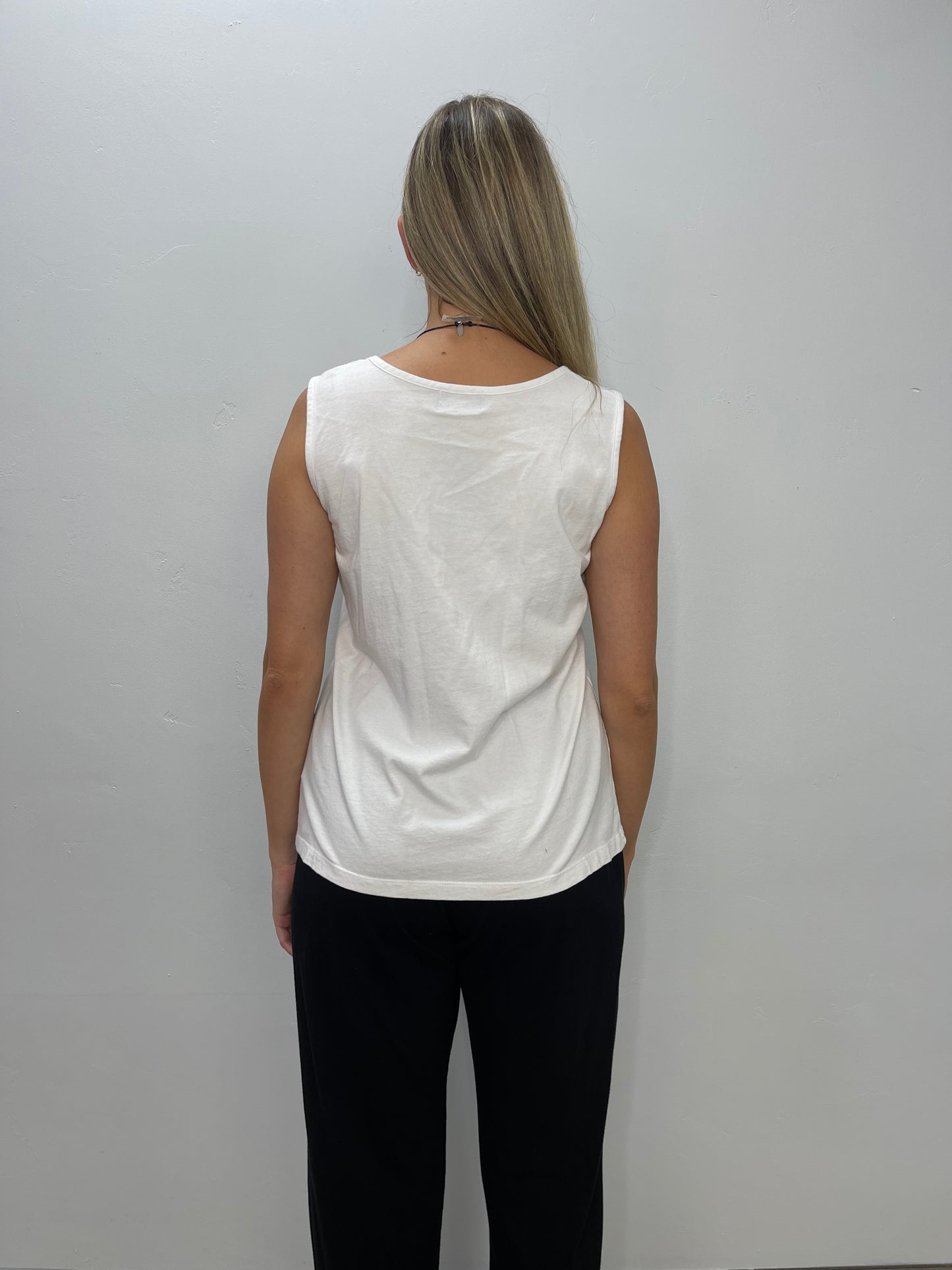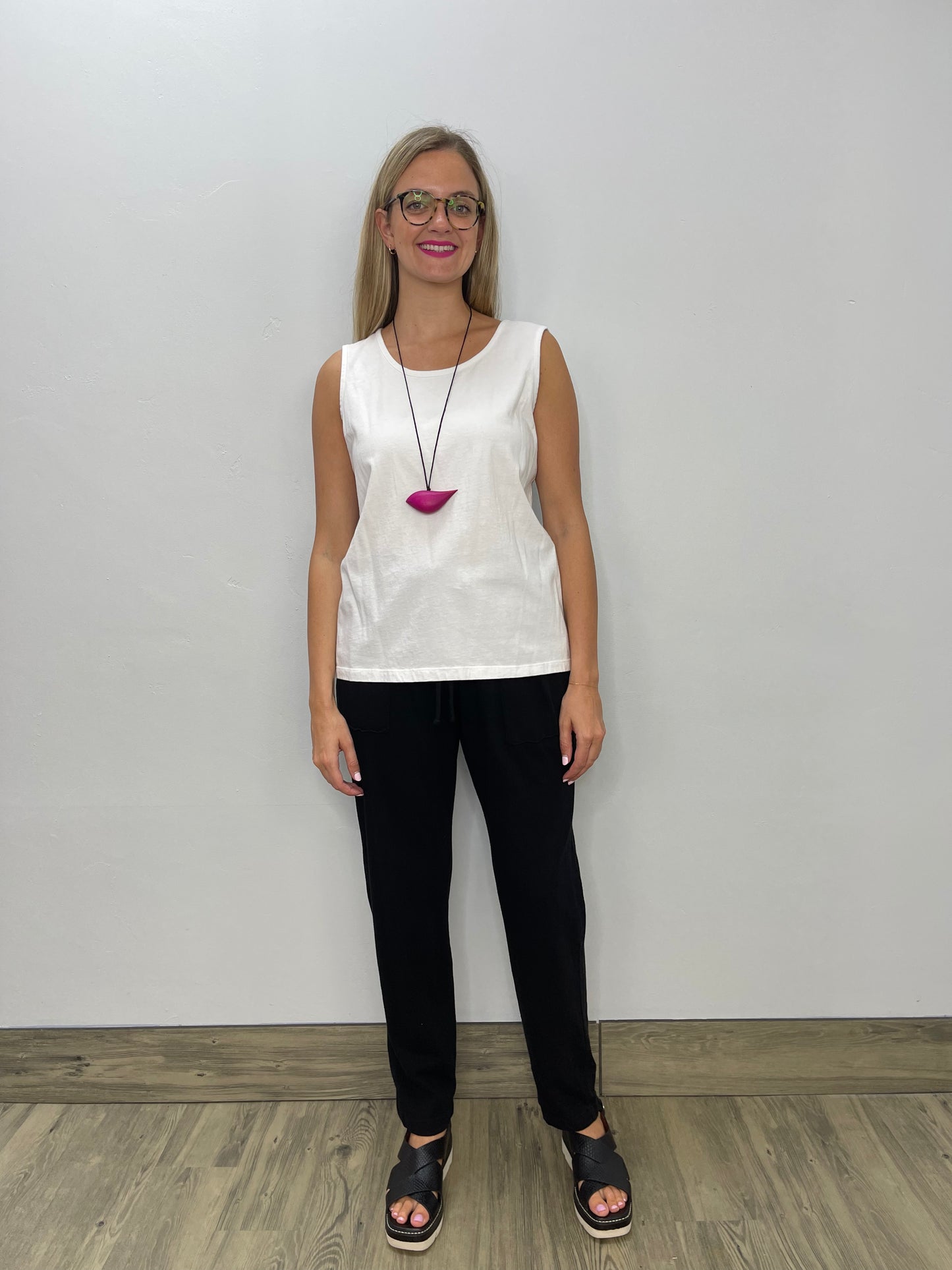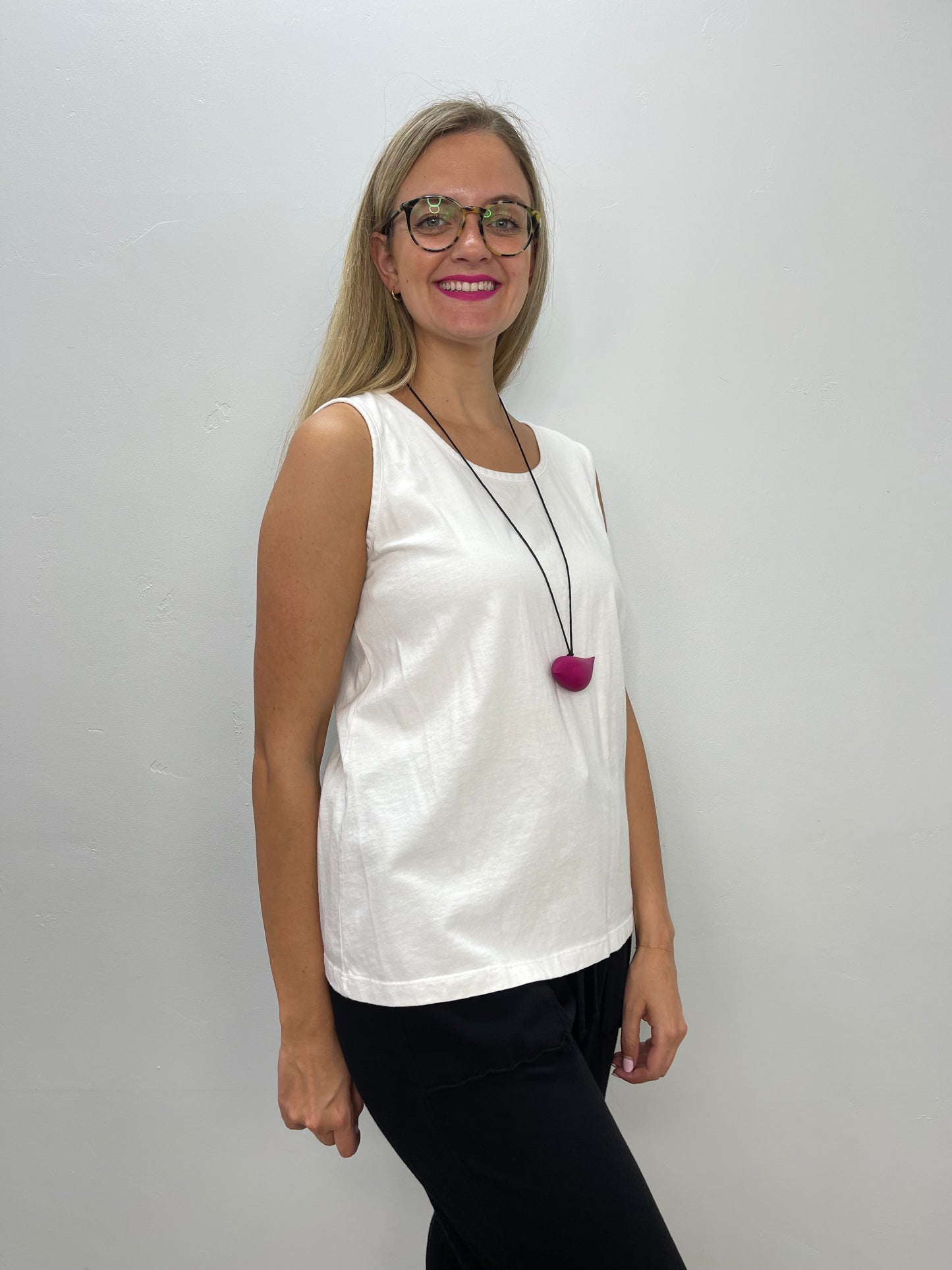 This wonderful white Sleeveless Cotton Tank from Fenini is an absolute delight to wear. Its light-weight cotton is soft and comfortable, while the round neck and easy wearing design ensures a perfect fit. Make a statement with this cotton tank that pairs perfectly with the any blazer – confidence looks great on you!