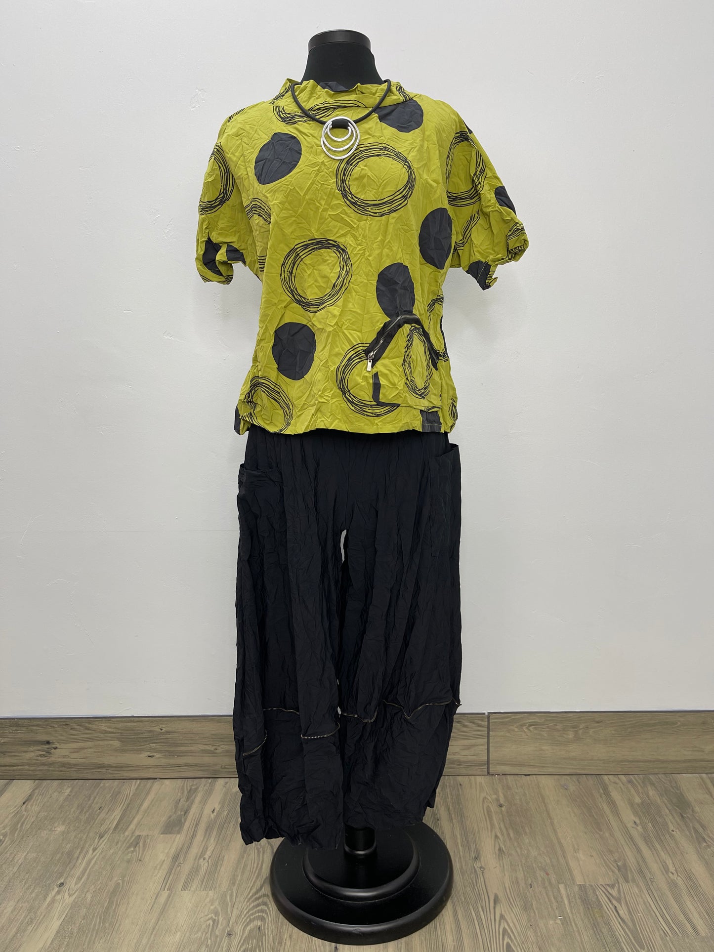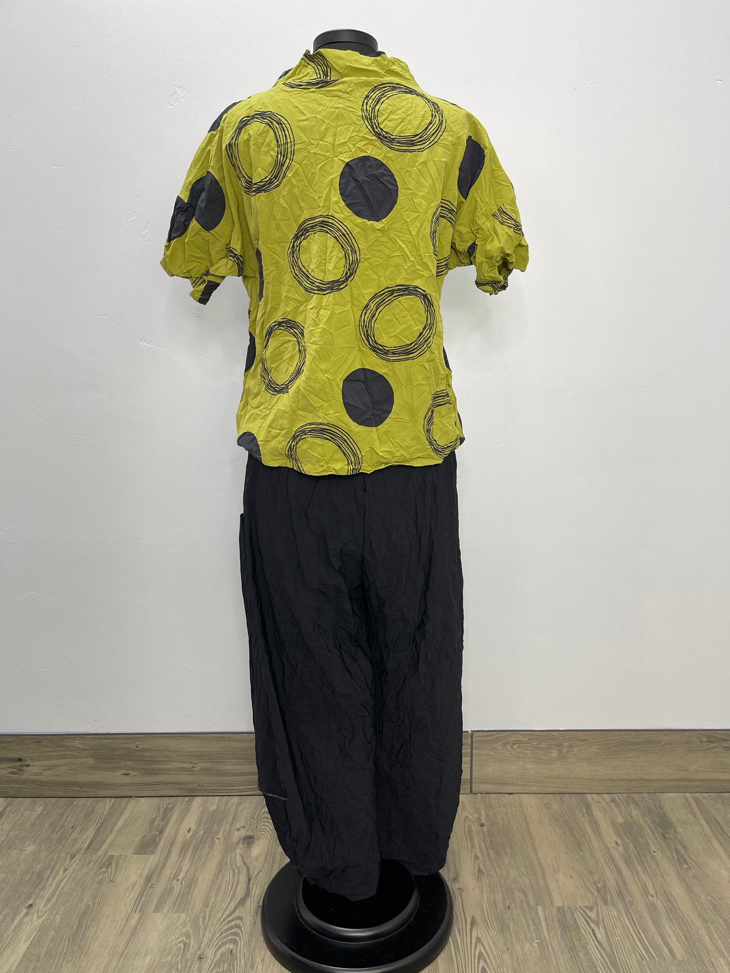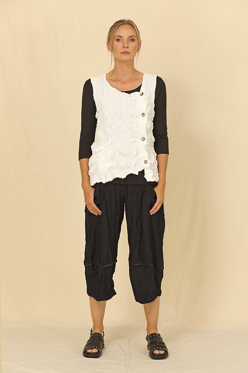 Discover effortless style and sustainability with Jessie Short Crinkle Pants with Pockets. Crafted with a blend of 50% bamboo and 50% recycled polyester, these colorful pants are comfortable, durable, and perfect for any occasion. With a chic yellow daisy design and two calf front pockets, you can create a look that speaks to your passion for sustainable fashion. Stand out with the short Jessie Pant.