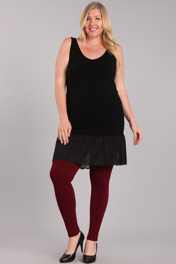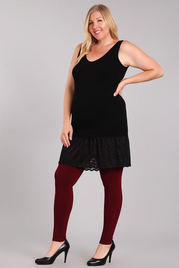 The plus size reversible V-neck and scoop neck top with lace trim. Co-designed by Twist designer and owner Trish and M. Rena, this is a wardrobe must in every leggings closet.