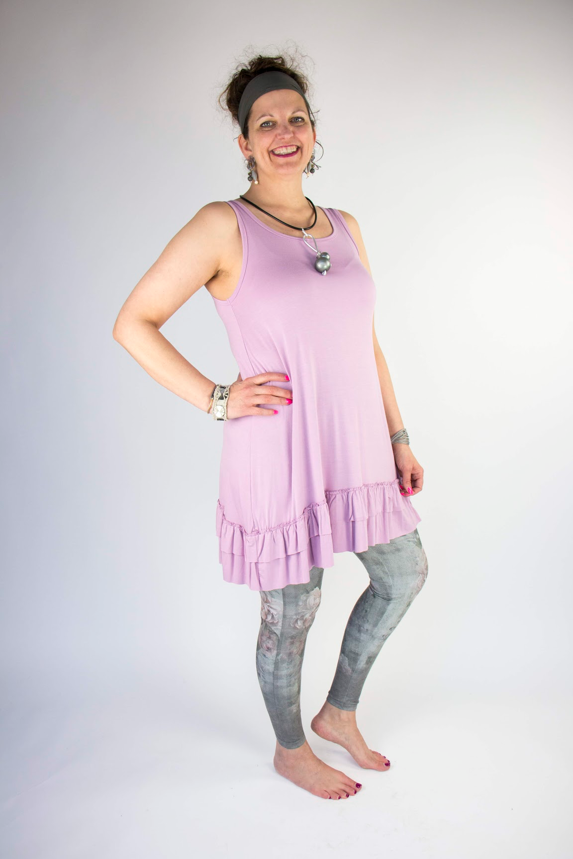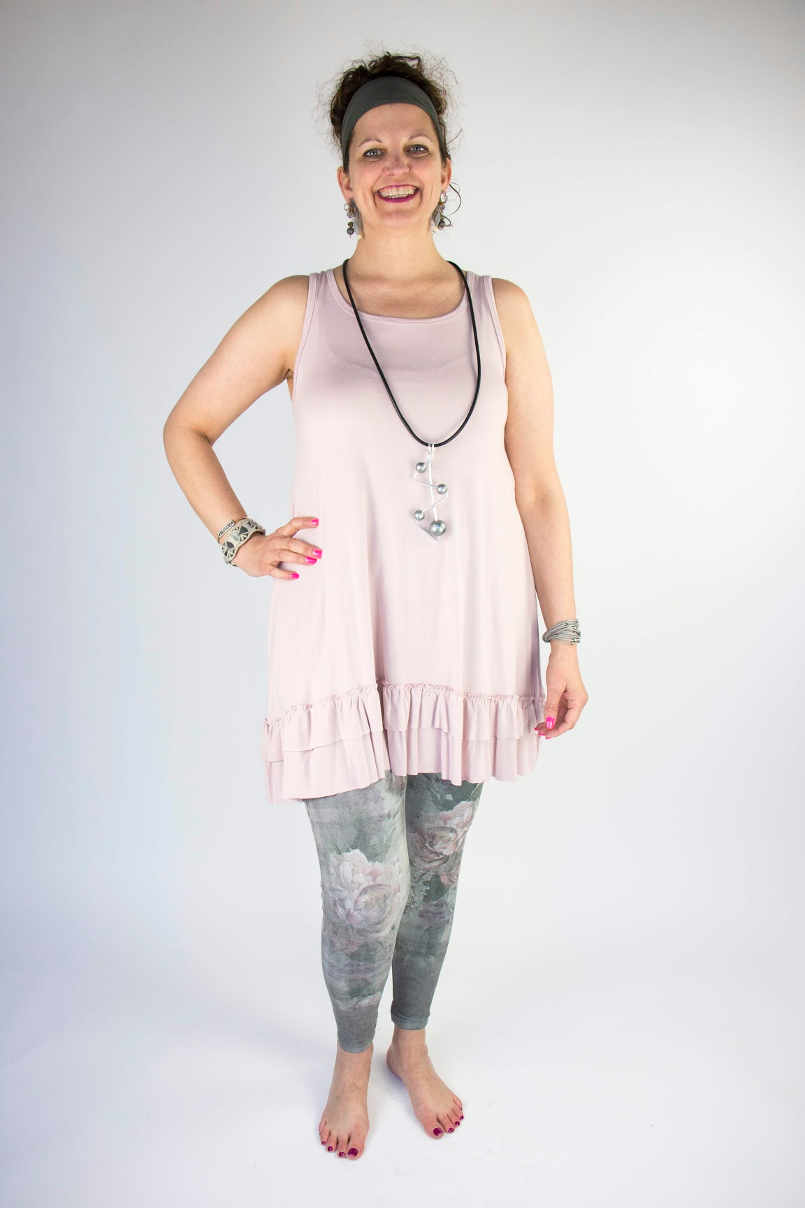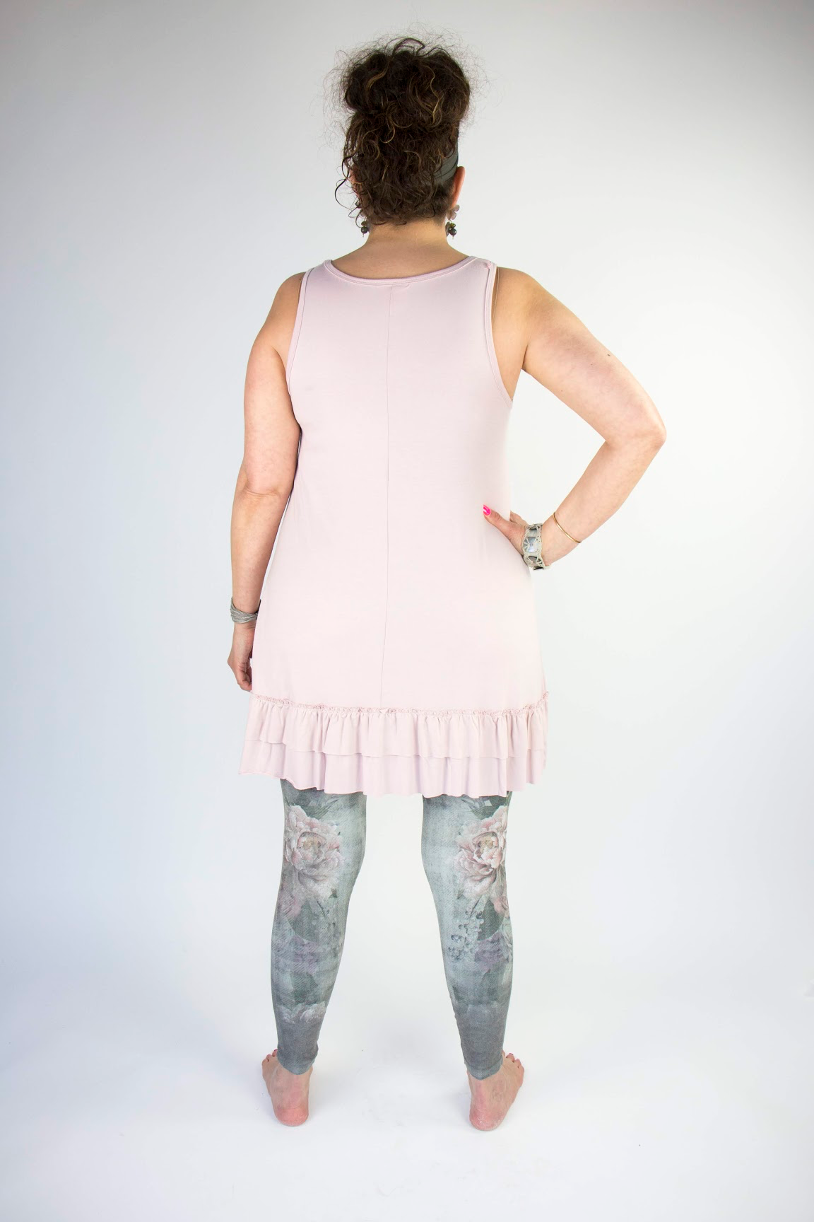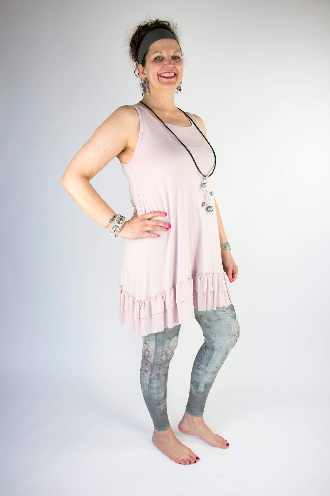 This Twist designed double ruffle hem adds dimension and distinction to your outfit. The soft modal fabric wraps you comfortably regardless of your activity. Add some length to your shorter tops and pair perfectly with our wide selection of printed M. Rena leggings.
