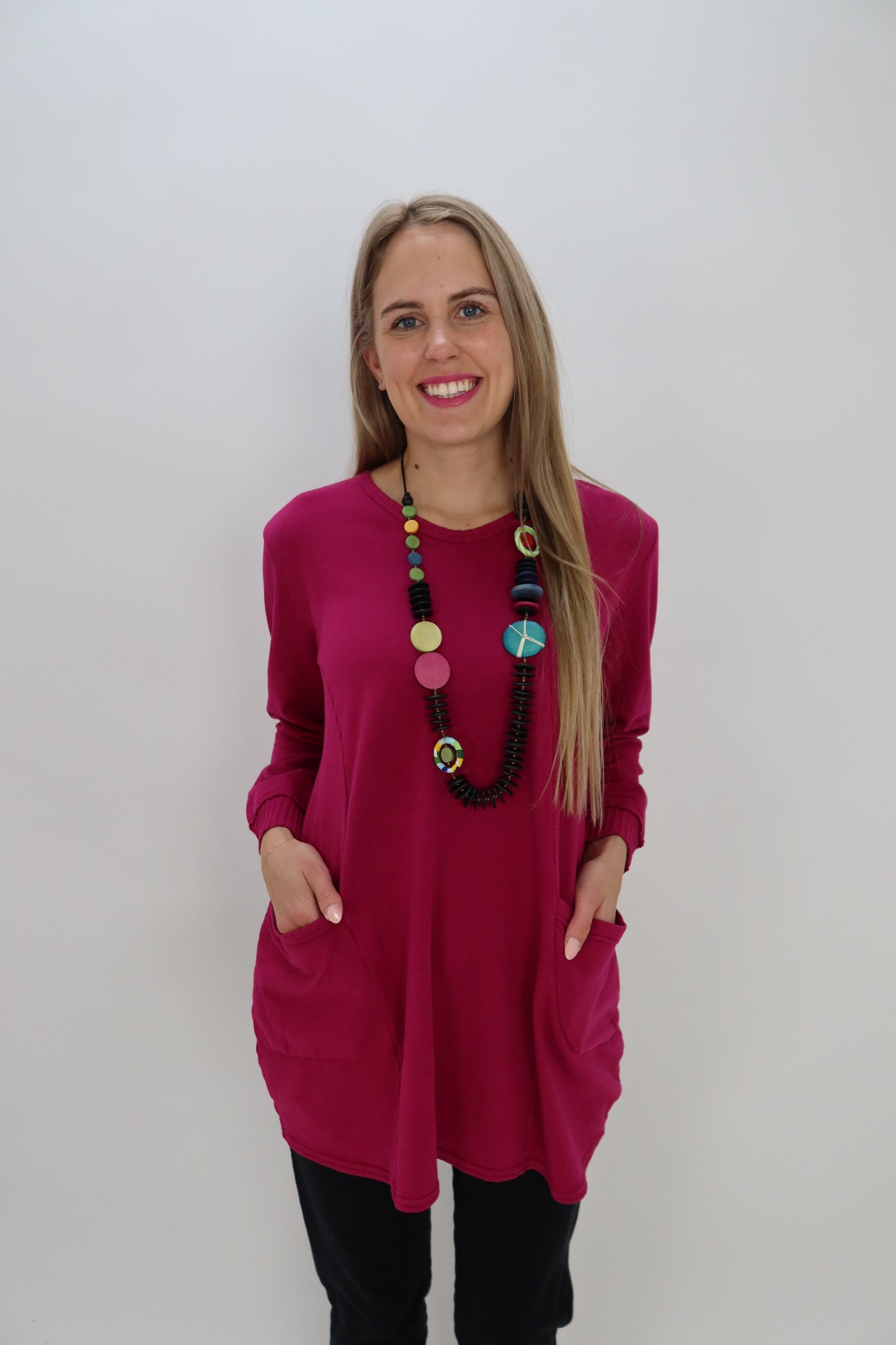FENINI is about style and comfort. The silhouette of FENINI style is simple and clean, yet it incorporates design details to make FENINI tops, bottoms, and dresses unique and interesting, suitable for work and play. It is for the modern woman who enjoys life, fun, art, beauty, and comfort, all key to the Fenini lifestyle.