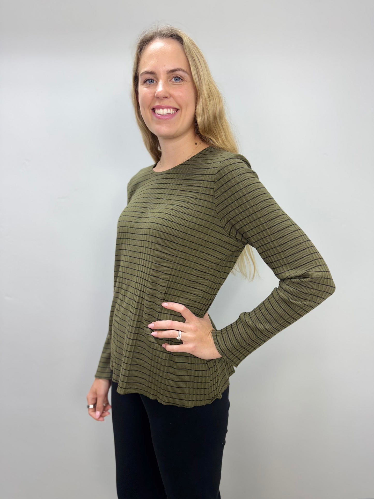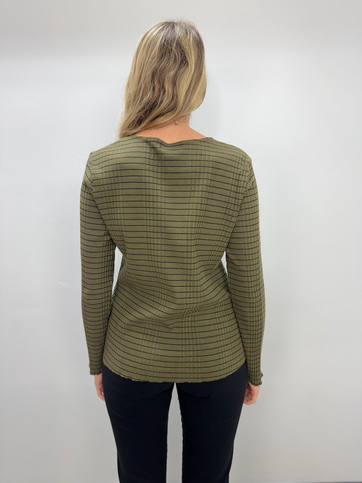 Olive Green Stripe Textured Top