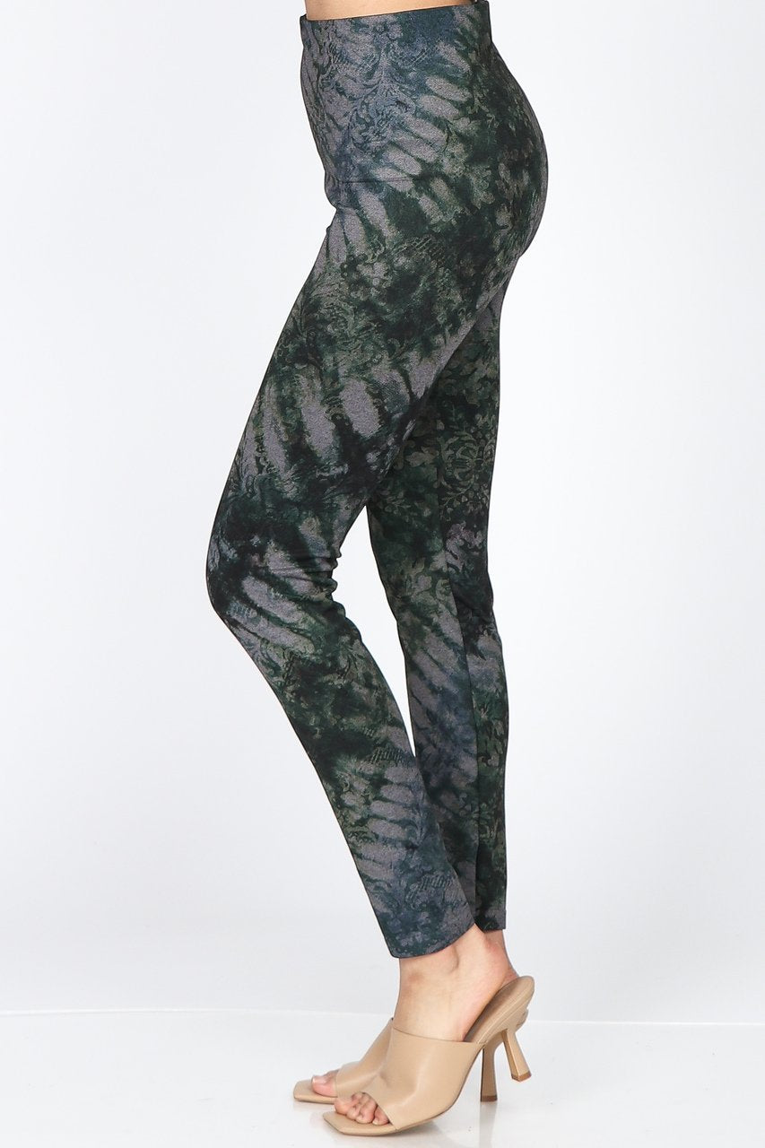 B4292CN High Waist Leggings with Rothchild Damask Print