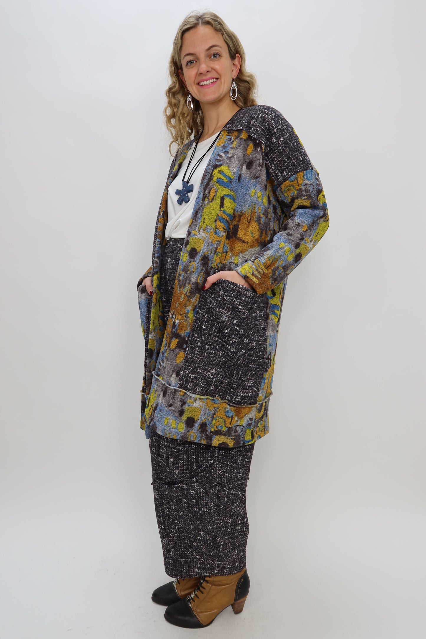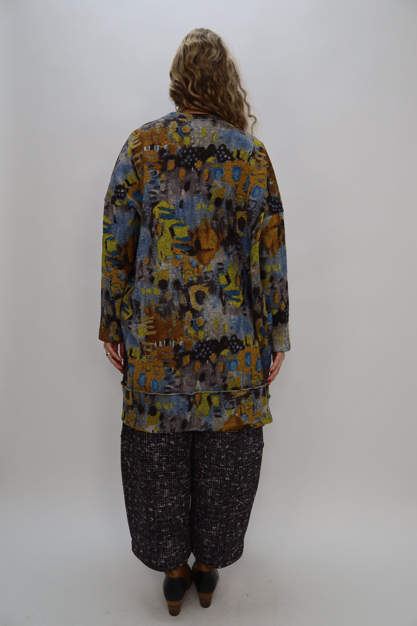 Our Chalet Blue Orange and Yellow fleece patterned jacket offers a relaxed, vintage-inspired look perfect for everyday wear. Its warm, earthy tone pairs effortlessly with casual outfits, making it a versatile addition to your wardrobe. Designed for comfort and style, this top brings a cozy yet chic vibe to your casual days, or dress up for your fun events!