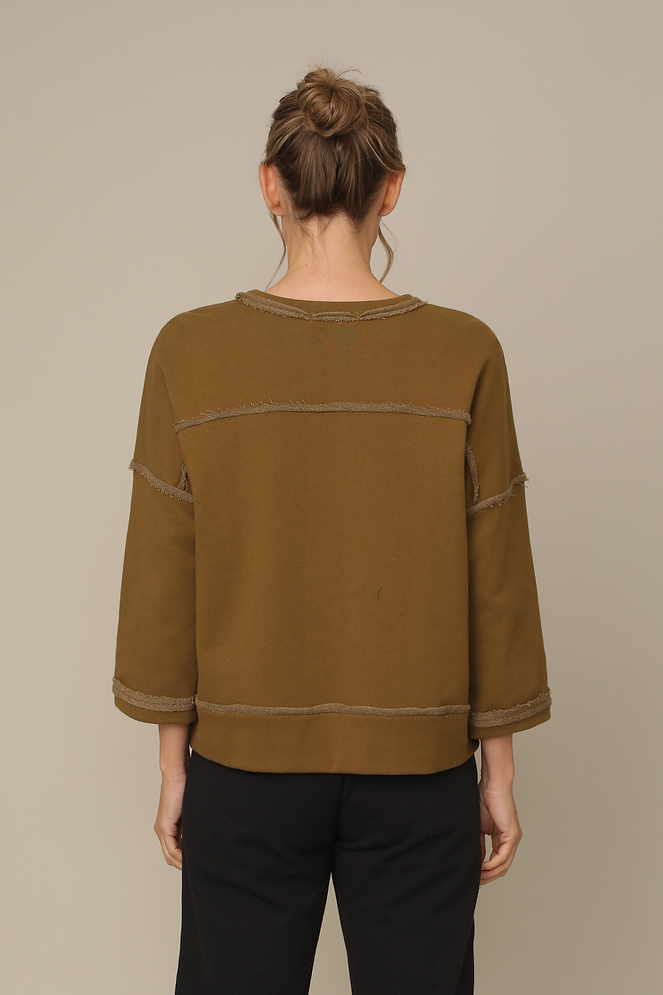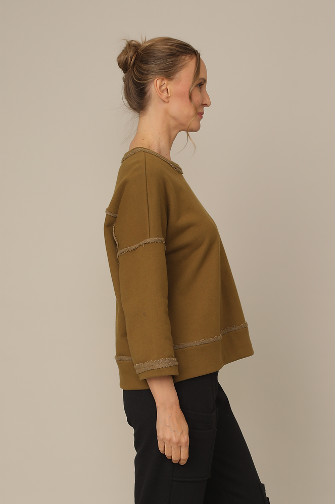 Elevate your everyday style with this sophisticated Dark Mustard French Terry Jacquard Top. The classic crew neck offers timeless appeal, while intricate jacquard detailing at the hemline and cuffs adds an unexpected touch of elegance. Crafted from soft French terry, it's the perfect piece for dressing up casual moments or layering over your favorite basics. Versatile enough for brunch or date night, this top brings understated luxury to your wardrobe.