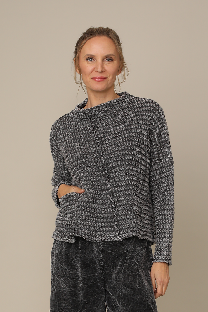 Charcoal Black Distressed Bubble Knit Long Sleeve Top