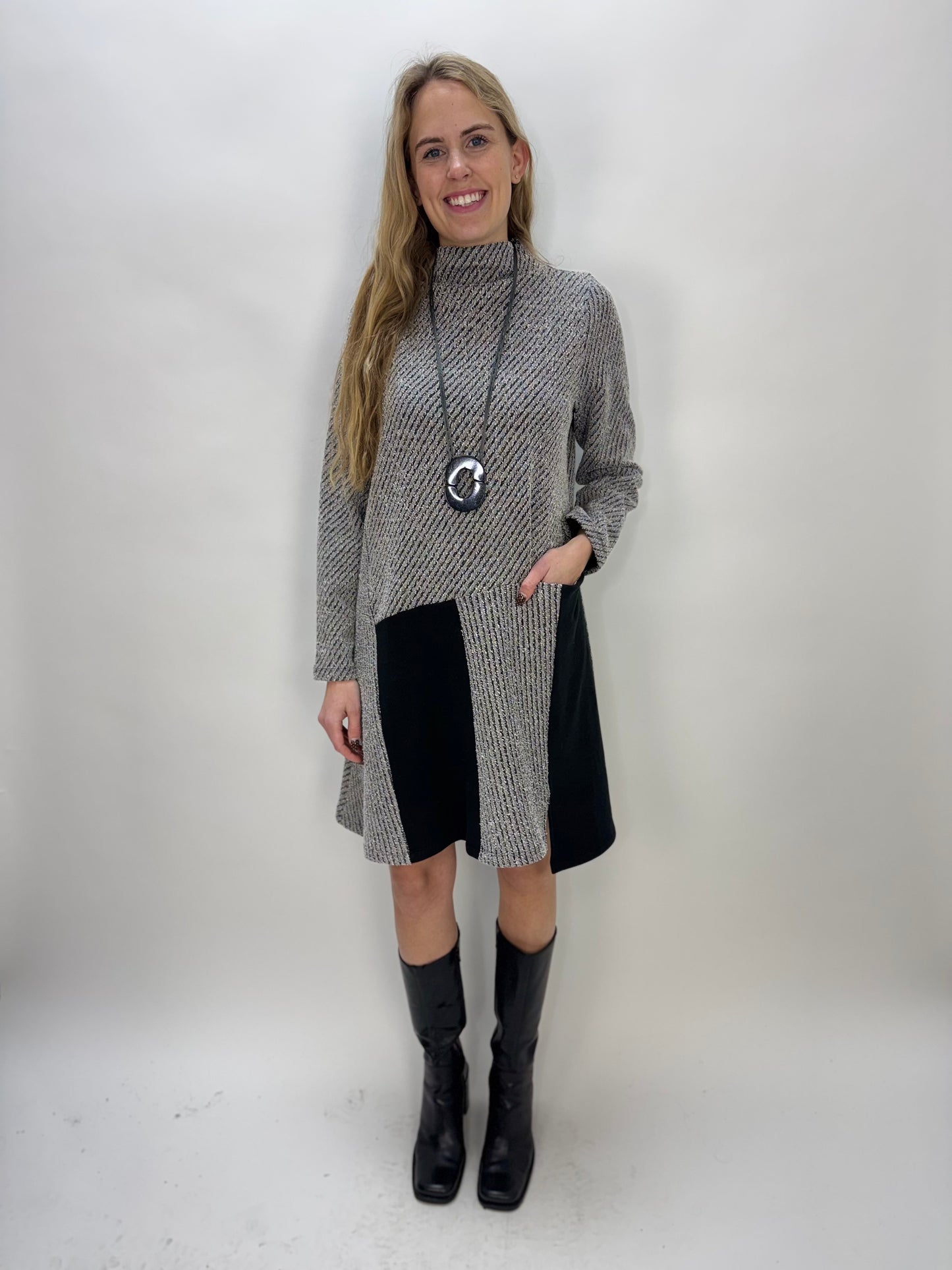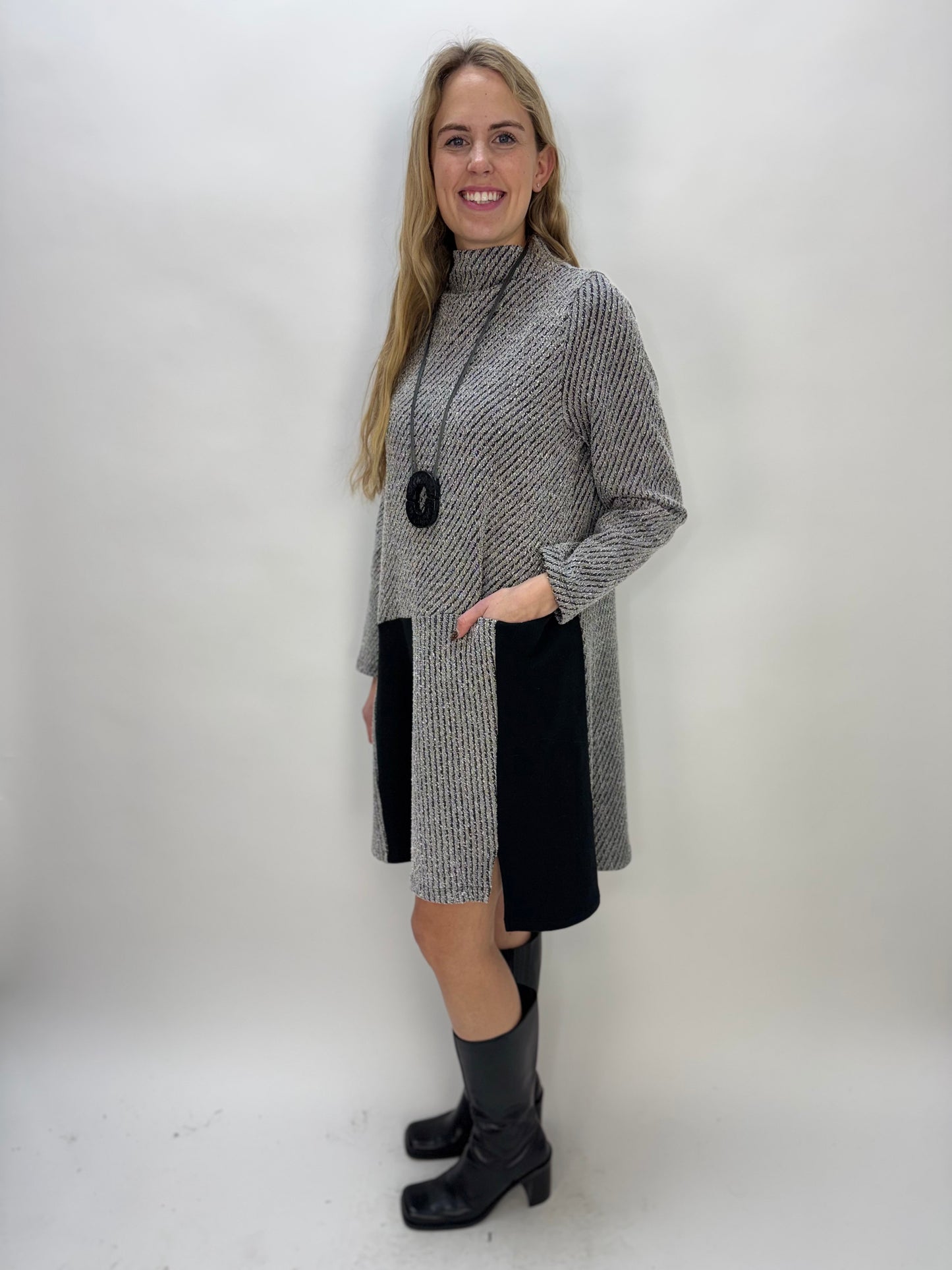 Black and Gray French Brushed Knit Cowl Neck Tunic
